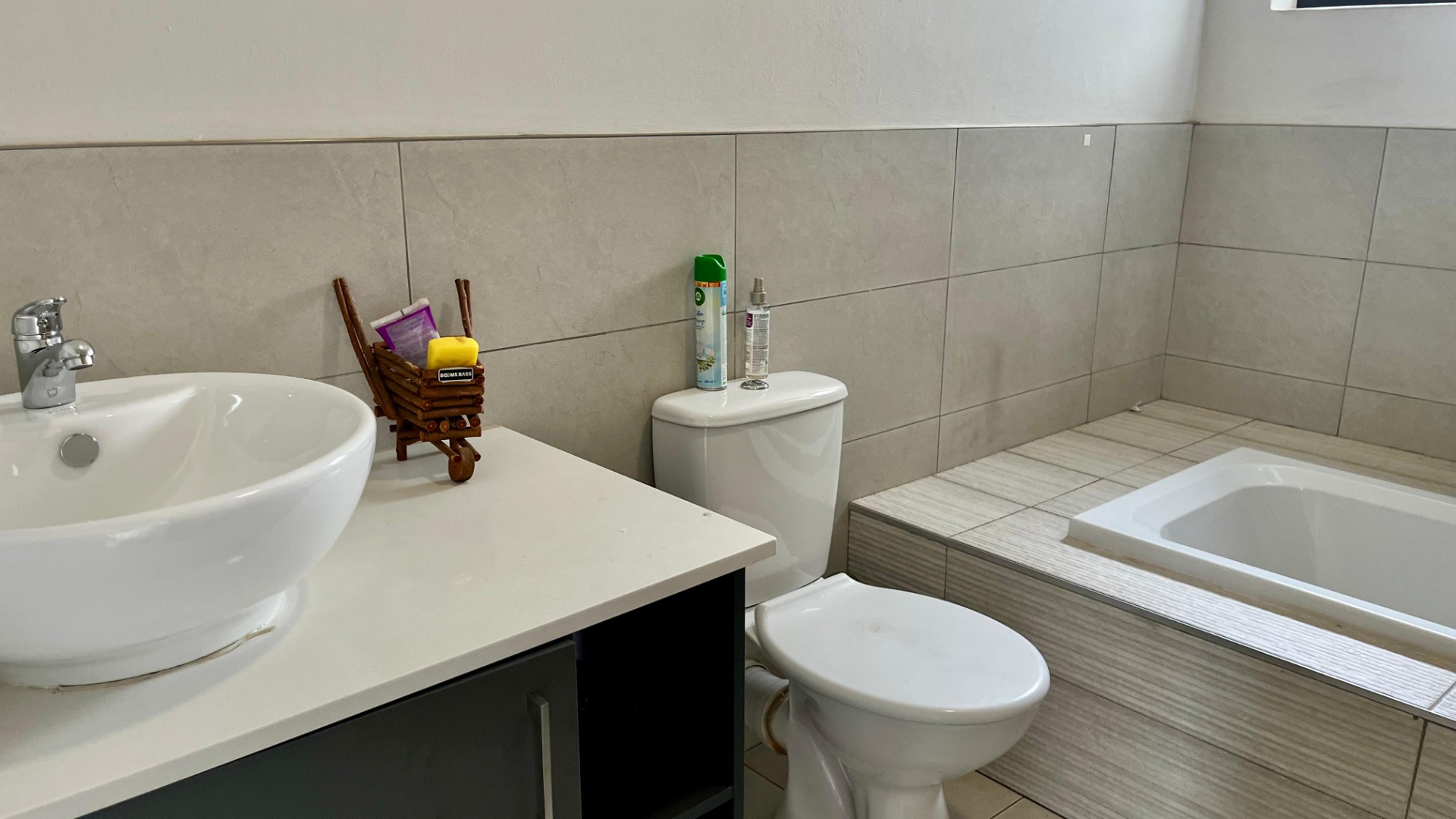 - Bathroom 1 Tiled Floors, Bath, Toilet and Basin