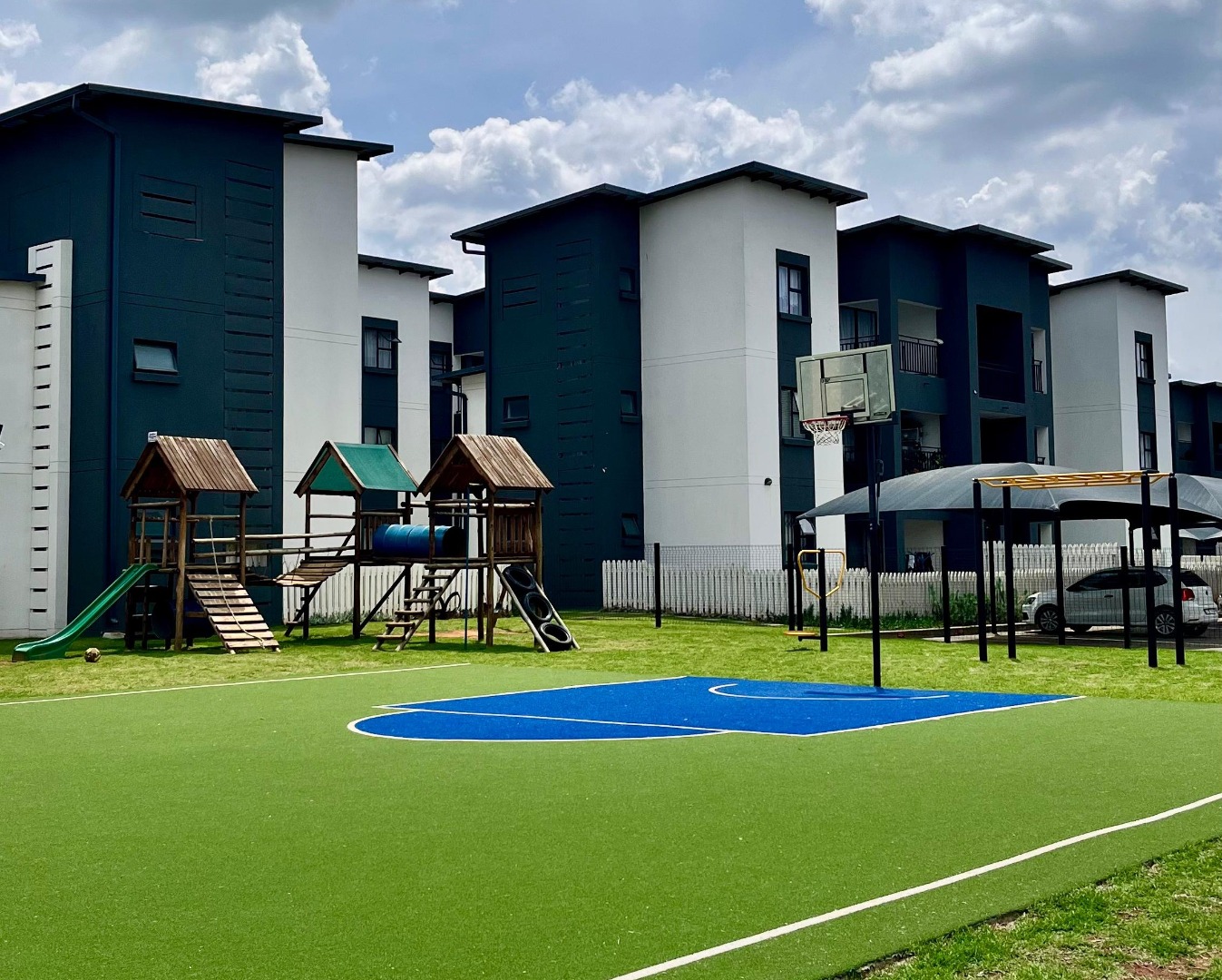 Residents enjoy access to a range of lifestyle amenities, including a kiddies play area, basketball court, and open-air exercise equipment, making it ideal for active families and individuals. The complex offers 24-hour manned security, ensuring peace of mind in a fully secure environment.