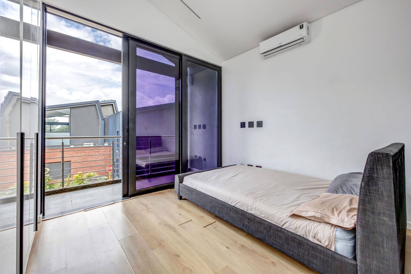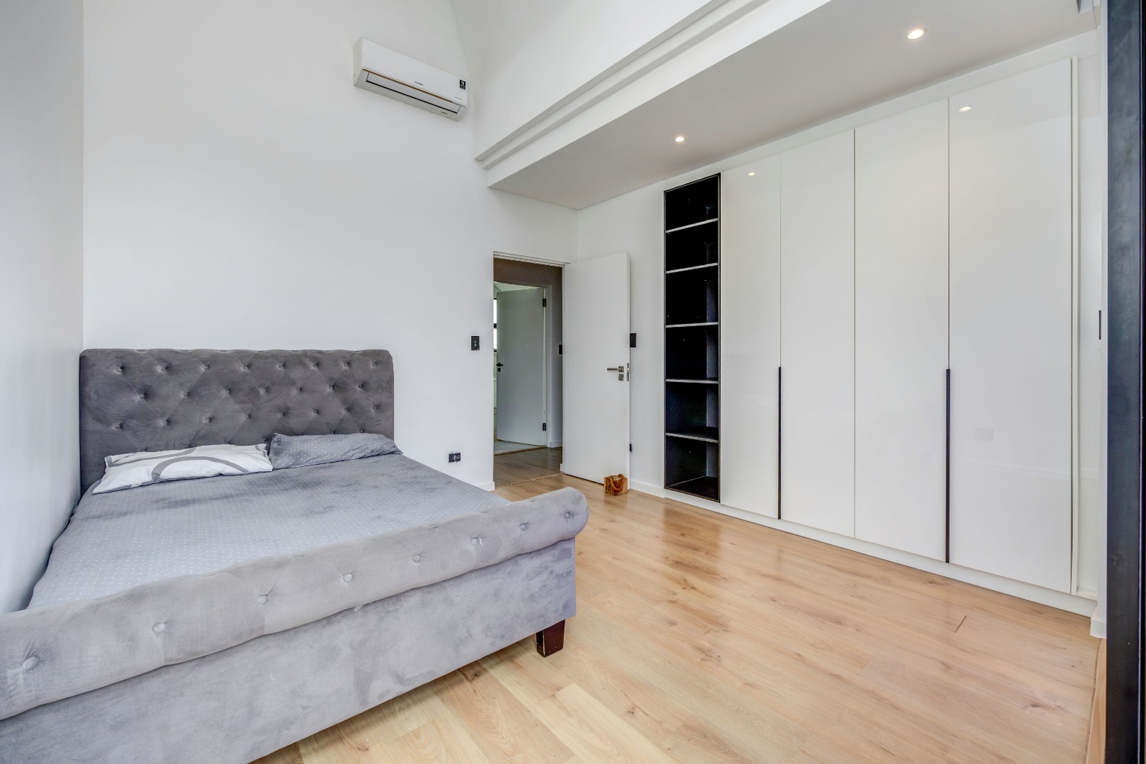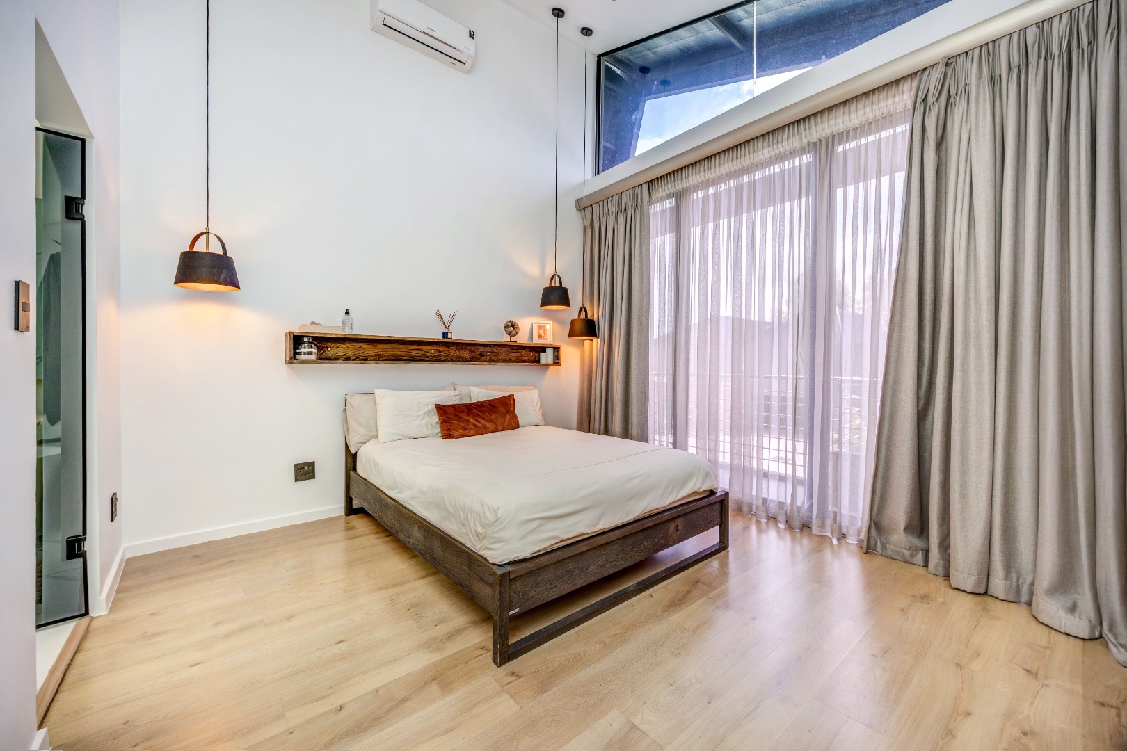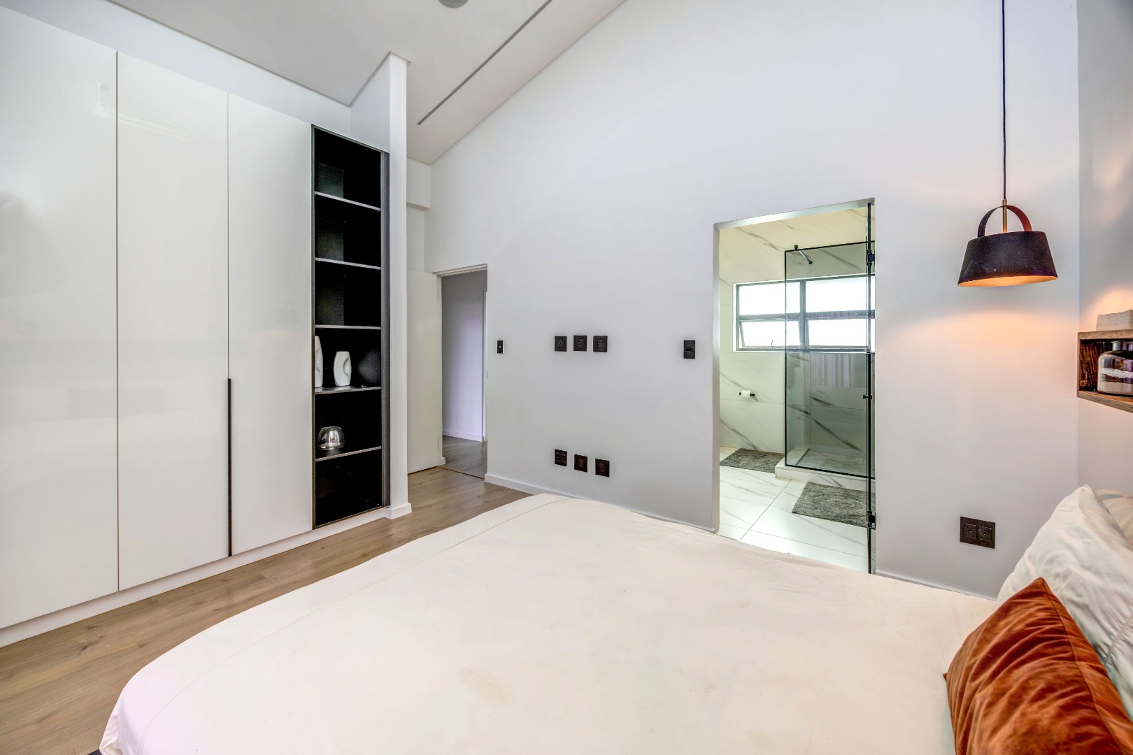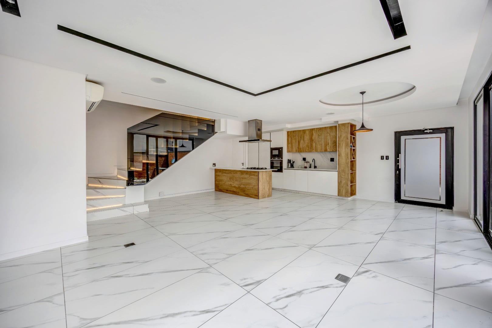 As you enter the house, you will be greeted by a spacious living area with ample natural light and a sleek design. The open plan kitchen is fully equipped with SMEG appliances ( dishwasher, washing machine, dryer, microwave and an integrated fridge), making it perfect for cooking and entertaining guests. The outdoor terrace provides a relaxing space to enjoy a braai and pool area.
