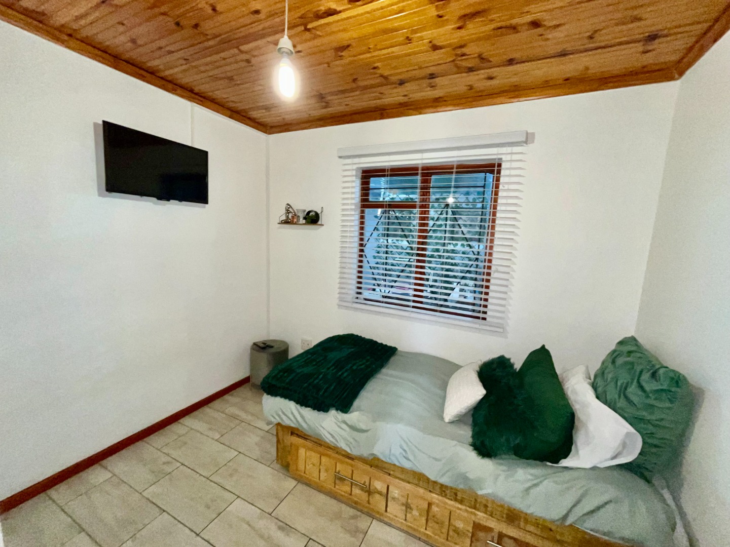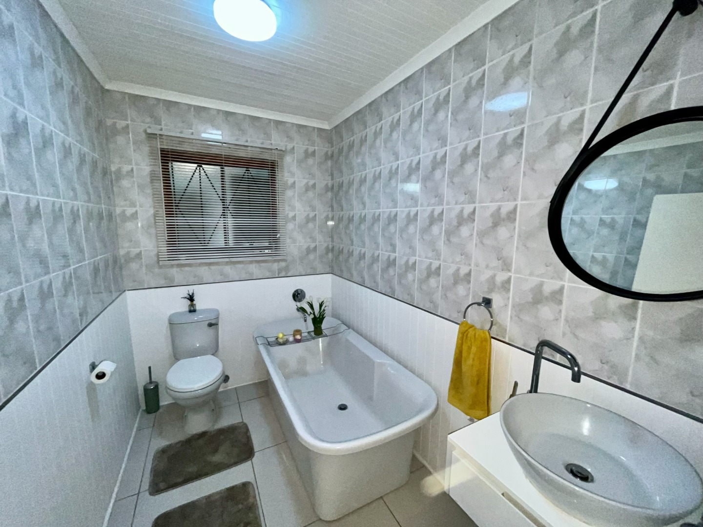 Inside, you’ll find a spacious open-plan family living area flowing into a walk-in kitchen fitted with a built-in oven and hob. Down the passage are three cozy, well-sized bedrooms with an ensuite in the main-bedroom which includes a shower, toilet, basin and a stylish main bathroom with a freestanding bath, countertop handbasin and toilet.