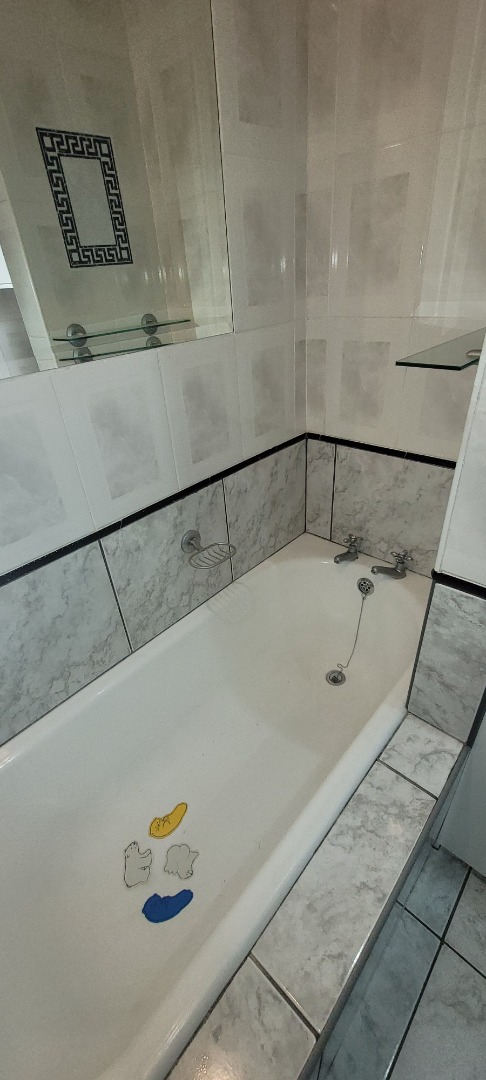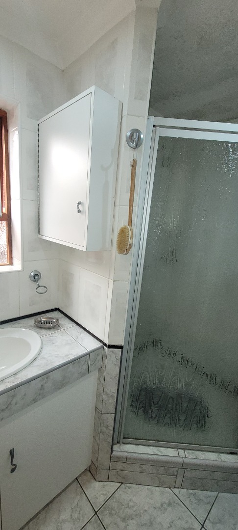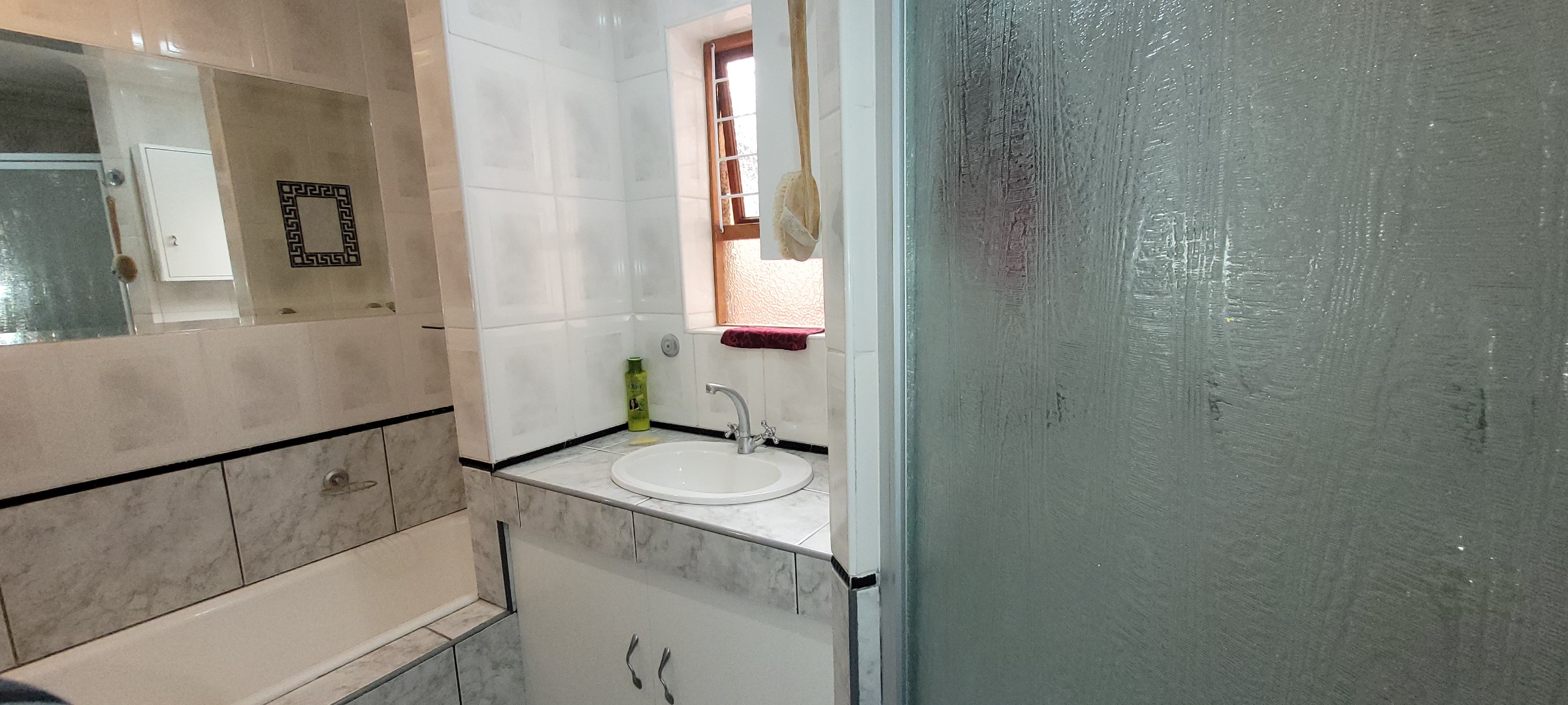 The bathroom have been changed for comfort with the tiles, shower build in basin and bath. The toilet is separate with burglar bars that is offered right around the house.