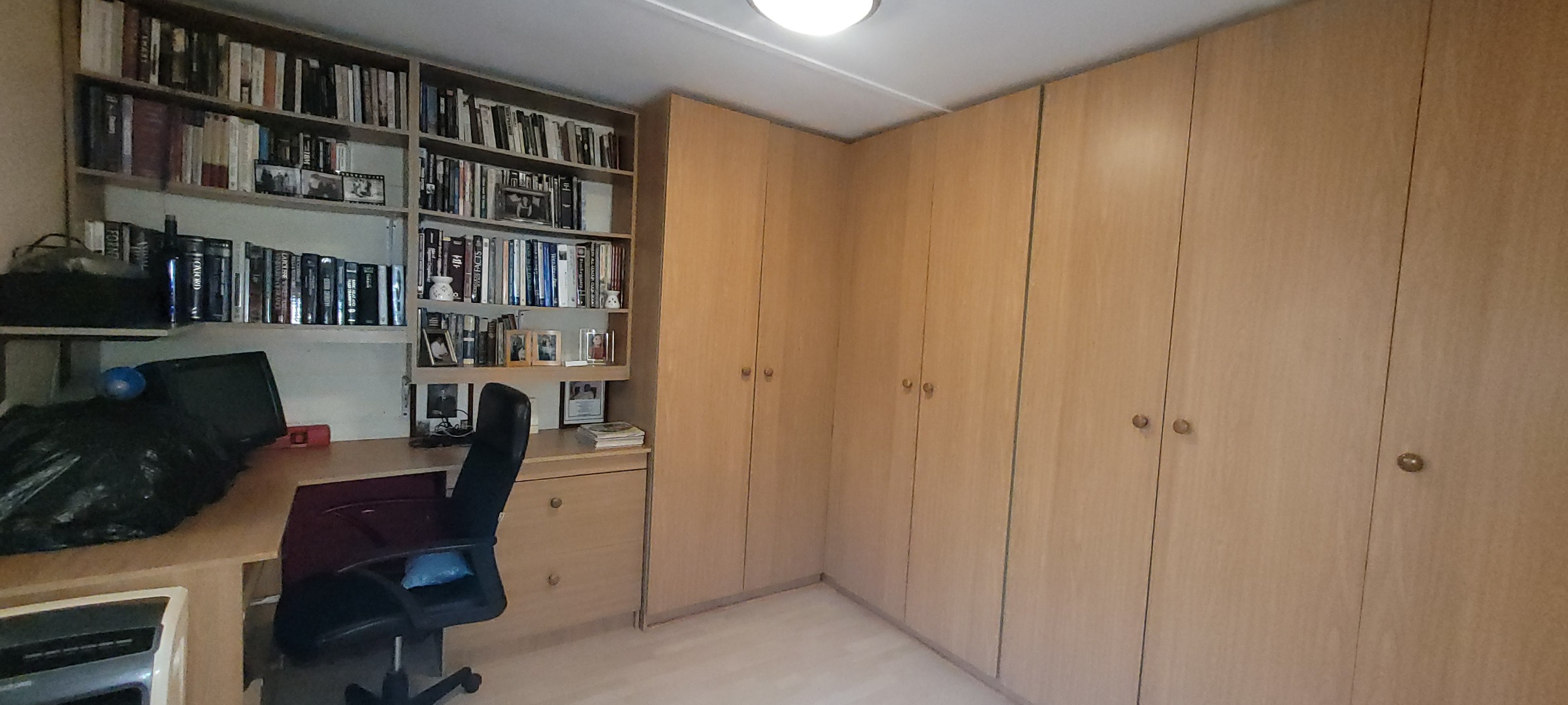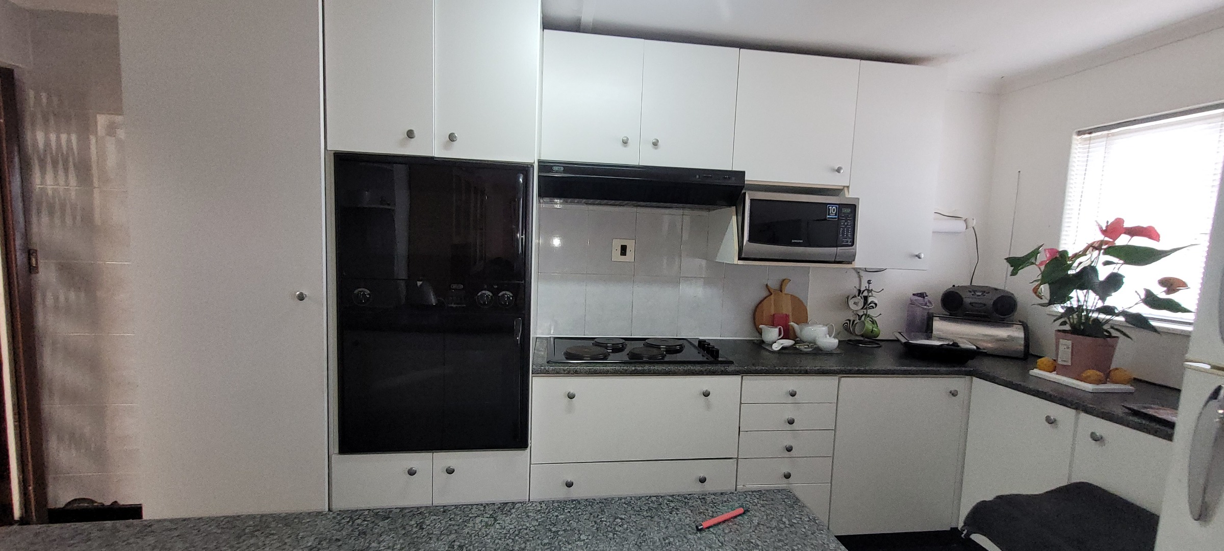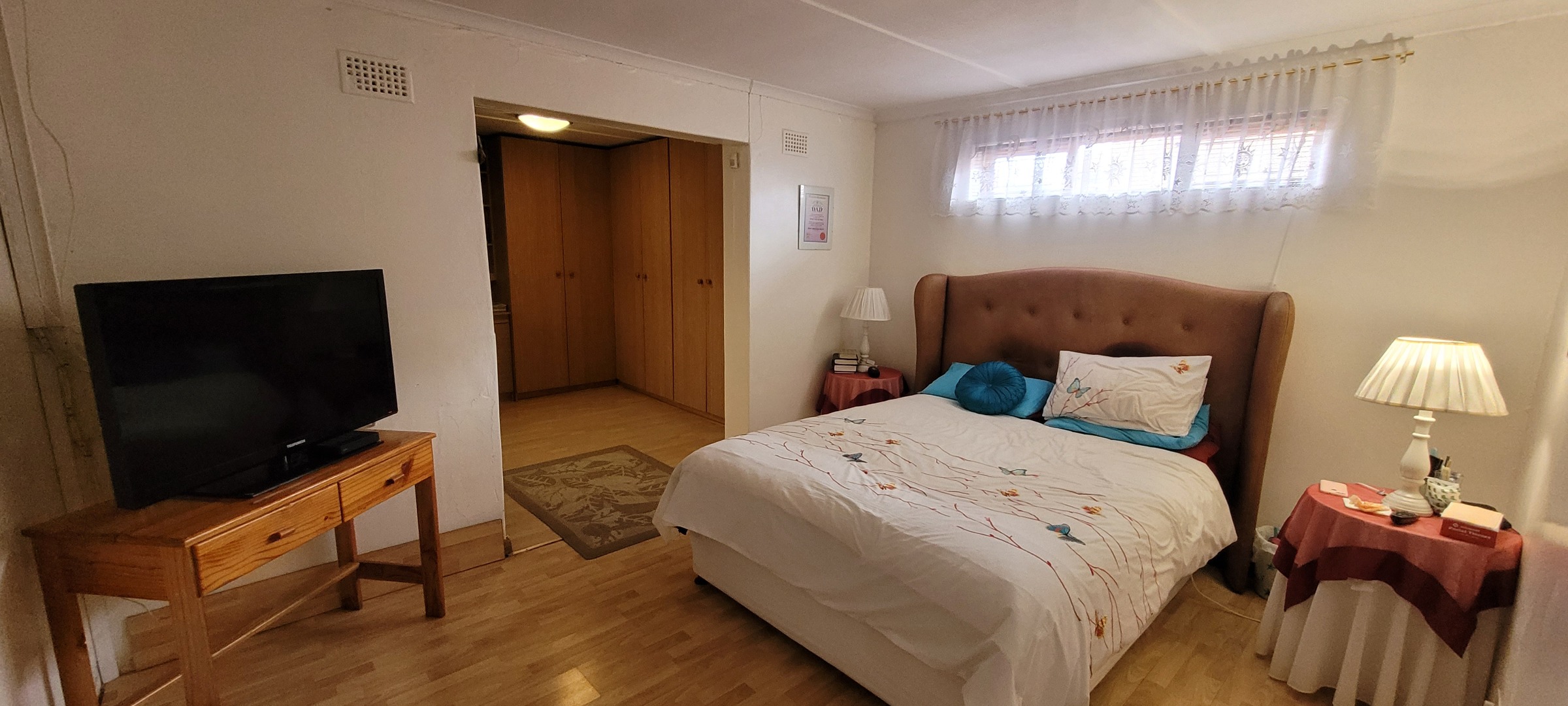 Kitchen area is complete with a breakfast nook, build in cupboards, oven and hob with the dishwasher connections as well. The first bed room have a built-in cupboard windows open to the under roof area. The main bedroom has laminated flooring up to the walk in closet / office space. This room offers build-in cupboards with a desk space.