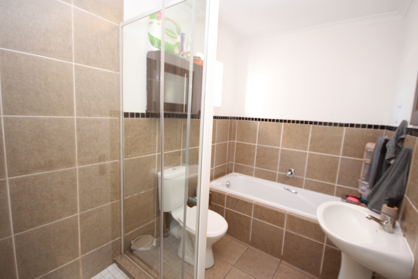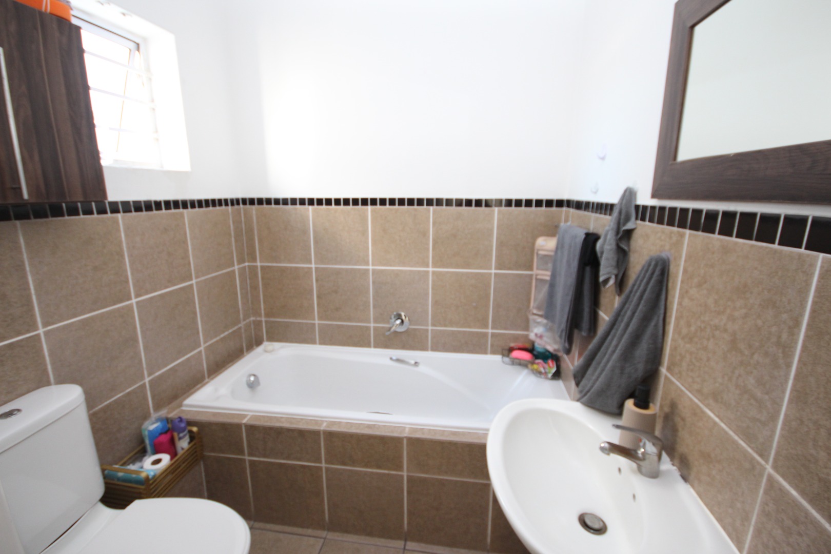 • A neat, modern bathroom