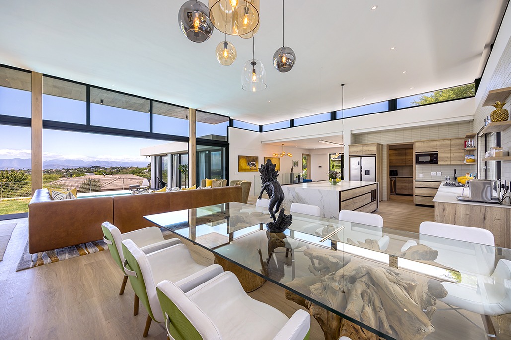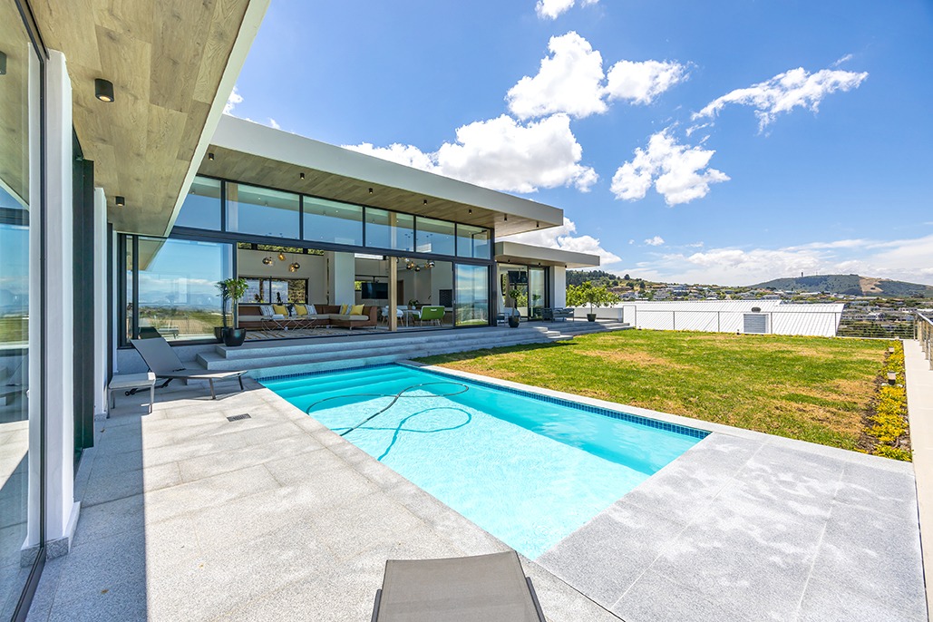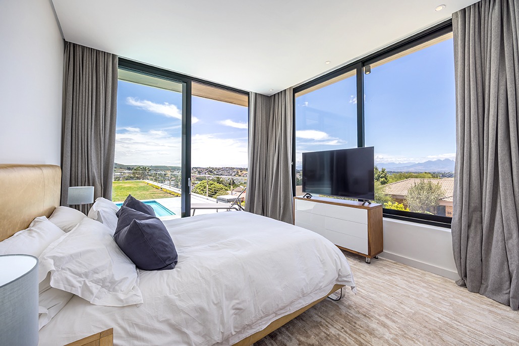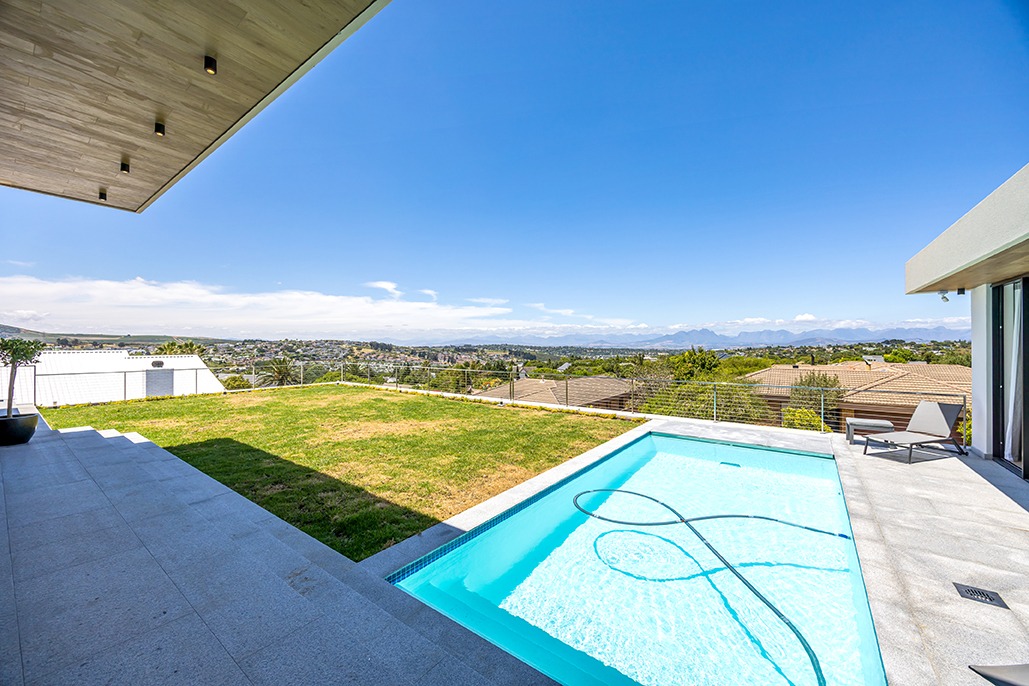 Welcome to this extraordinary, newly-developed villa perched on one of the highest and most sought-after roads in the prestigious Welgedacht Security Estate. Unmatched in its design and position, this residence offers breathtaking north- and east-facing panoramic views of rolling hills and distant mountains—transforming every sunrise into a spectacle and every evening into serene elegance.