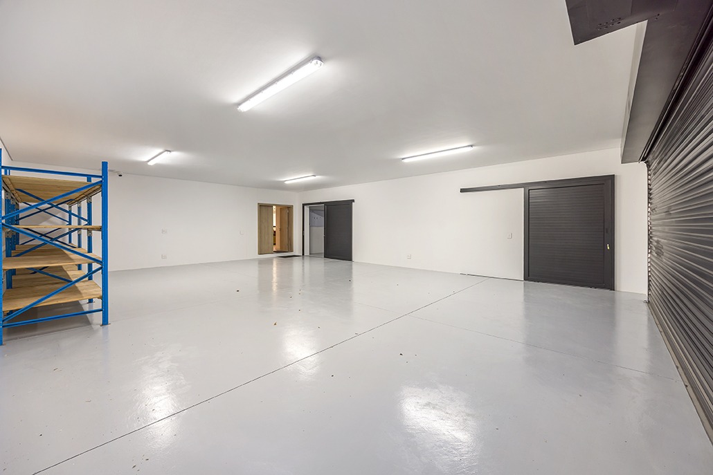 A standout, and truly rare feature of this property is its immense garaging space. A four car garage is directly linked to the property. Adjacent to this garage, is the main garaging space, with triple-volume ceilings and space for up to 25 vehicles (once car-lifts are installed). This is a dream come true for car collectors or those requiring versatile storage for boats, RVs, and a workshop – the garage door is extra high which provides easy access. Above the garage, a mezzanine level includes office space, a full bathroom, and a professional-grade kitchen, creating the perfect environment for a private showroom, creative studio, or luxury man cave.