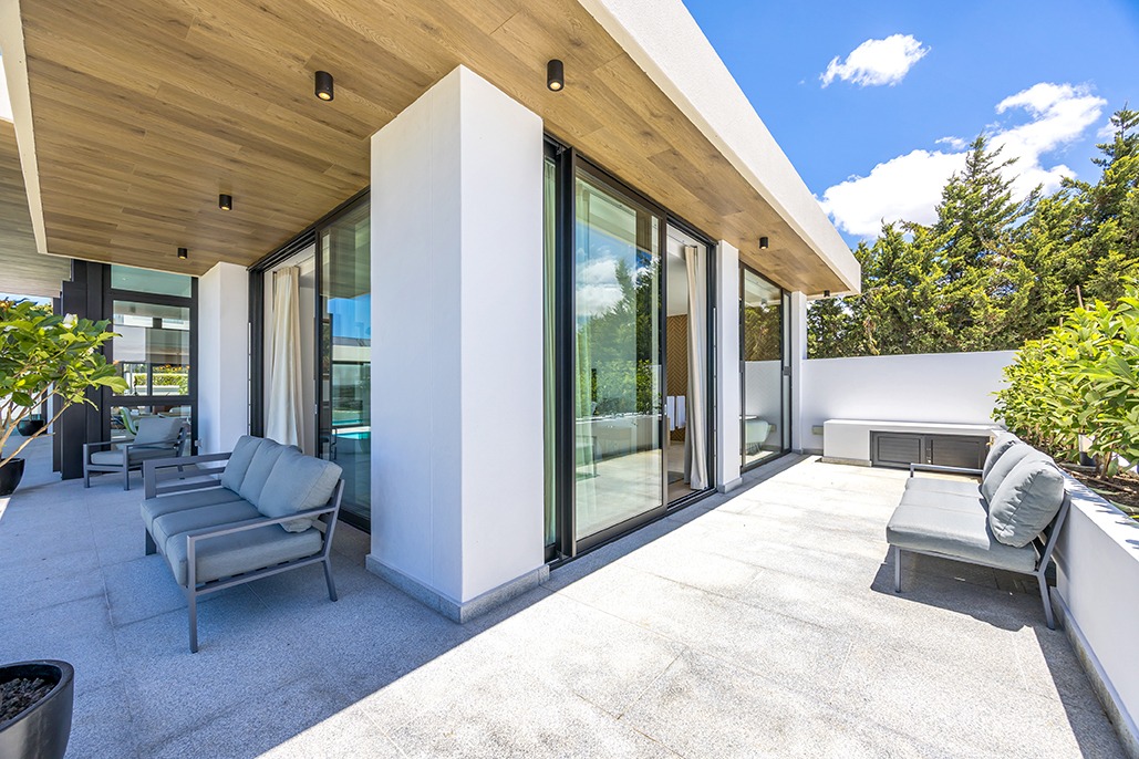 The living areas open out to the secluded terraced garden and sparkling pool that feel like a private oasis – perched high above the street line with complete privacy. Framed by sweeping views of the mountain range and distant hilltops, this space offers all the tranquillity and privacy one could desire for outdoor relaxation or hosting unforgettable gatherings.