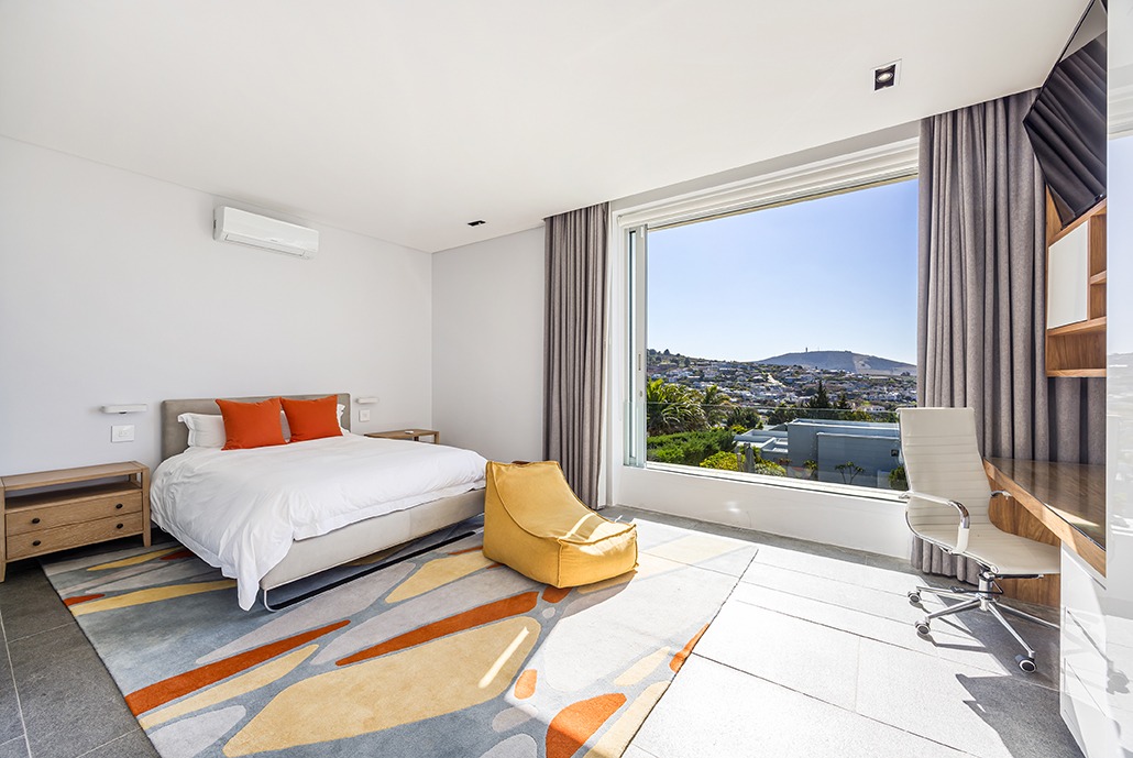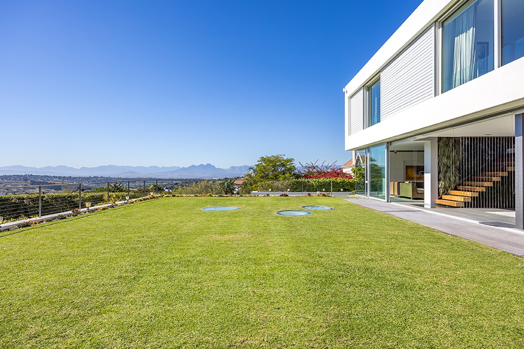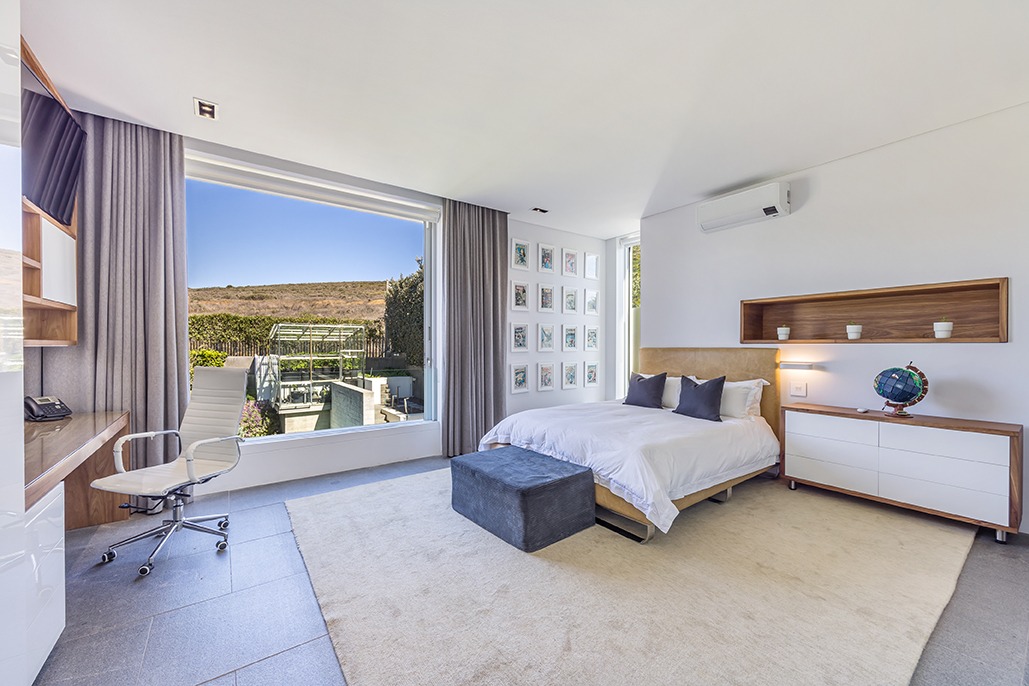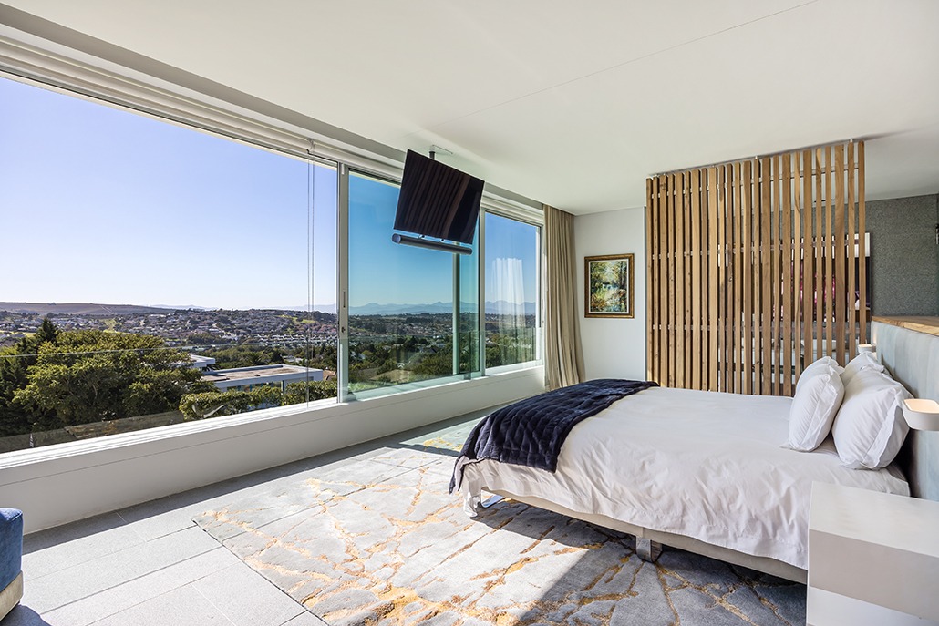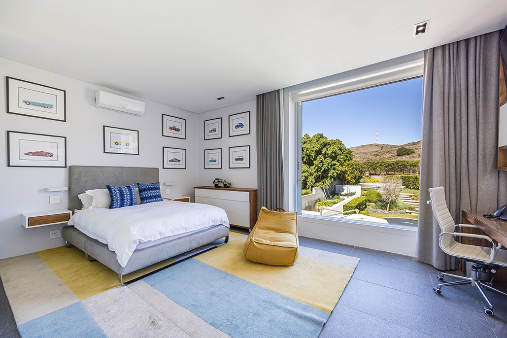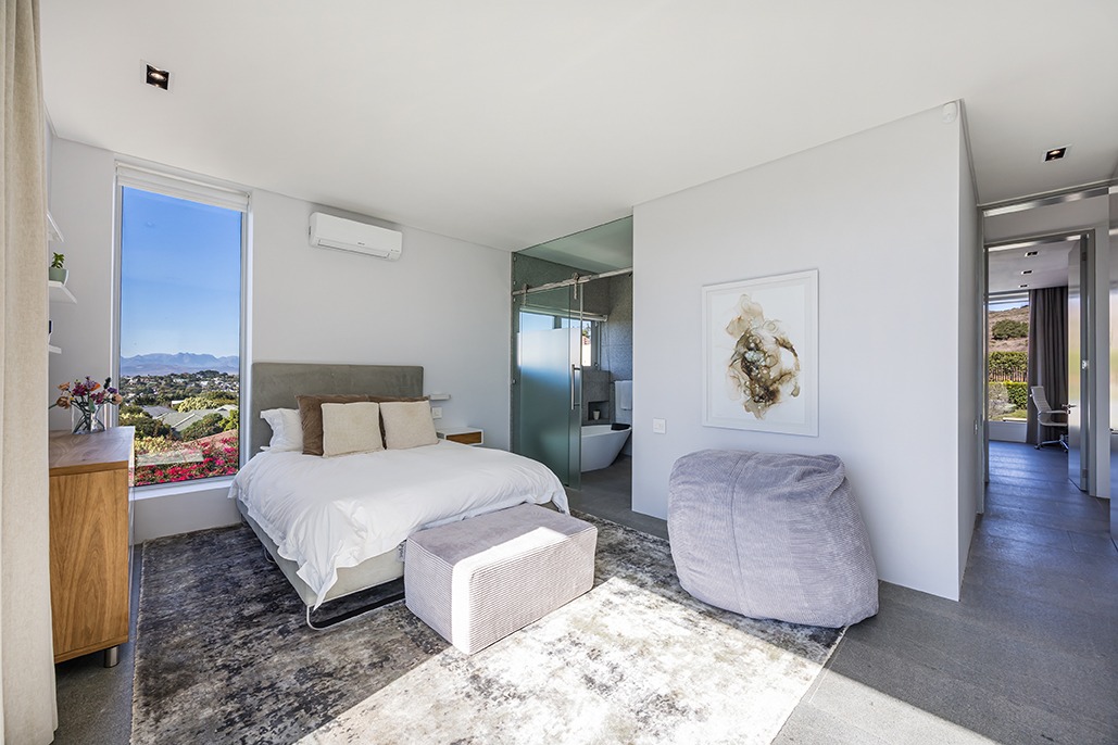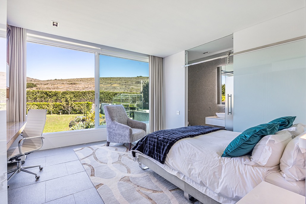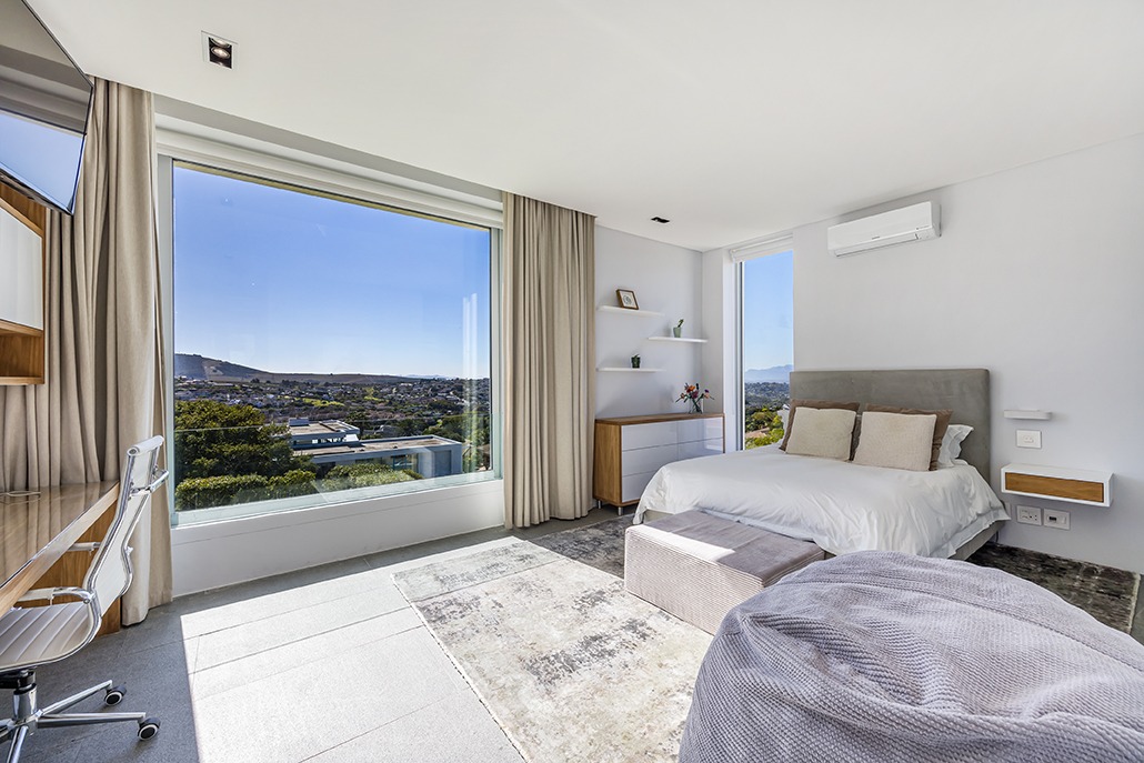 The third floor is dedicated to rest and relaxation, with six meticulously designed bedrooms, each offering a private en-suite bathroom. Four of the rooms feature a bath and shower combination, while two offer spacious walk-in showers. Three of the bedrooms, including the grand master suite, boast breathtaking views of the mountains and hills, while the other three offer views of the Tygerberg Nature Reserve.