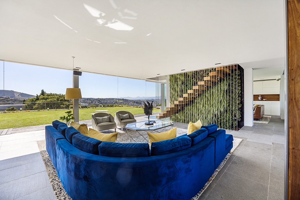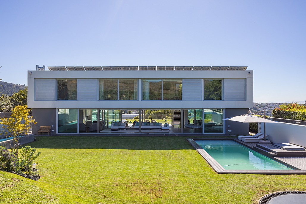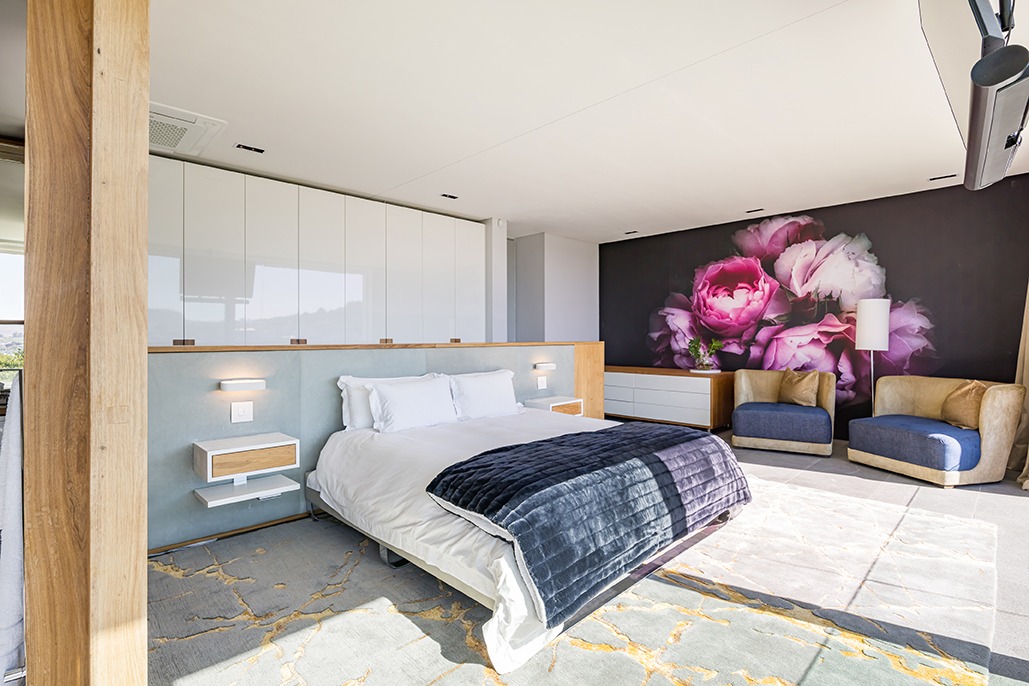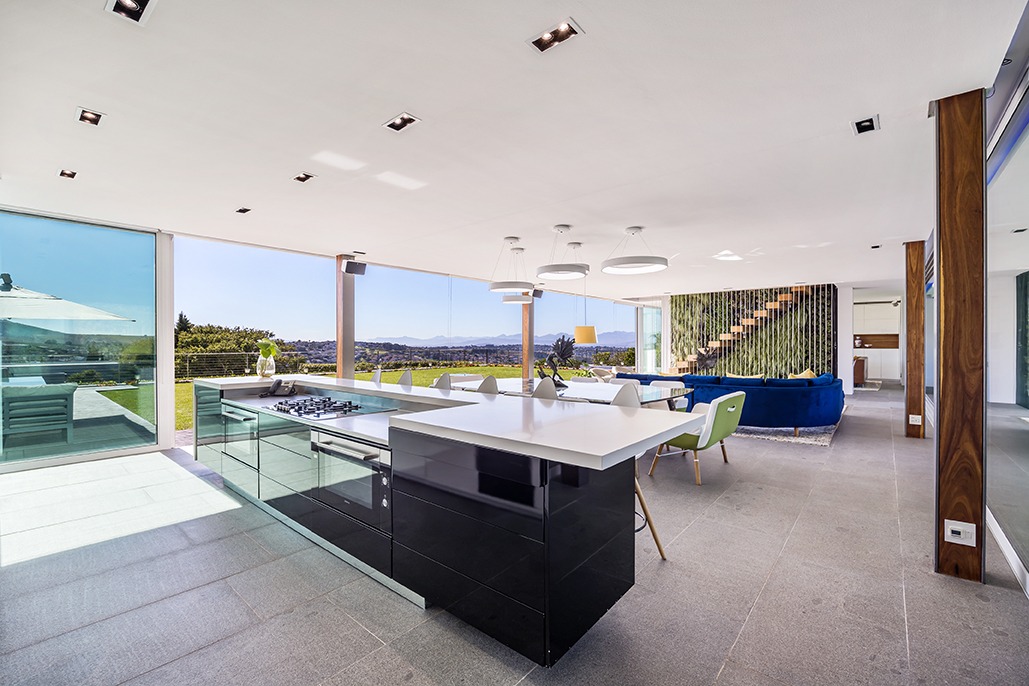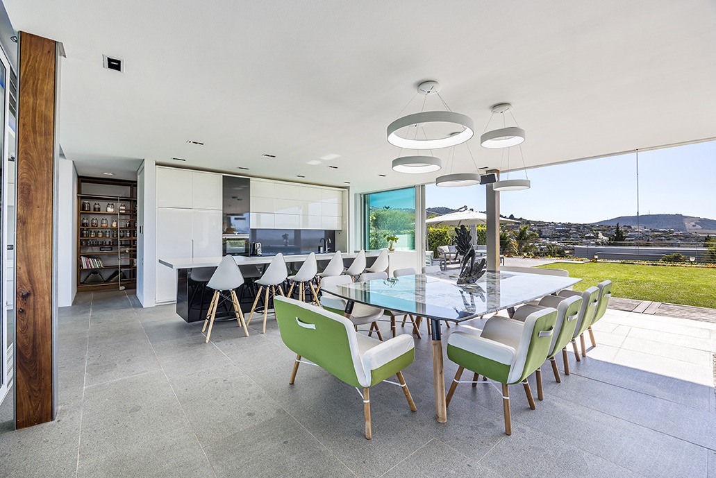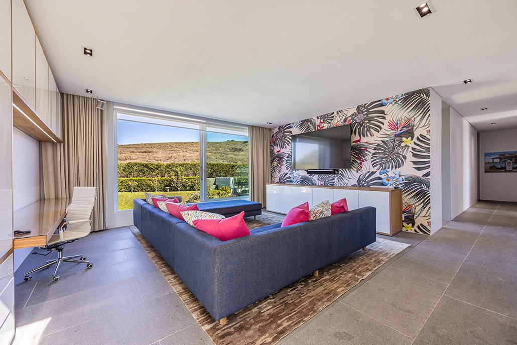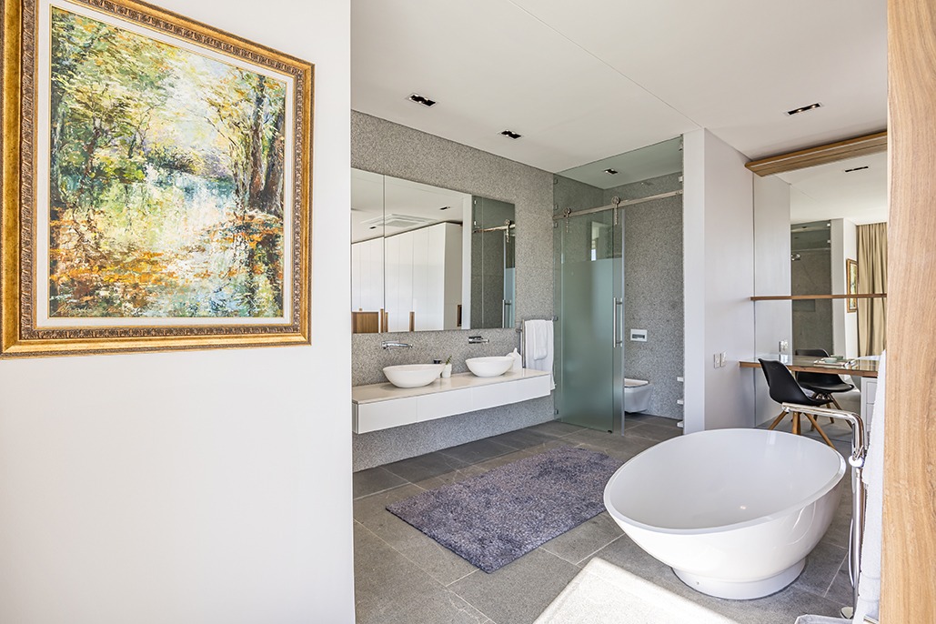 The third floor is dedicated to rest and relaxation, with six meticulously designed bedrooms, each offering a private en-suite bathroom. Four of the rooms feature a bath and shower combination, while two offer spacious walk-in showers. Three of the bedrooms, including the grand master suite, boast breathtaking views of the mountains and hills, while the other three offer views of the Tygerberg Nature Reserve.