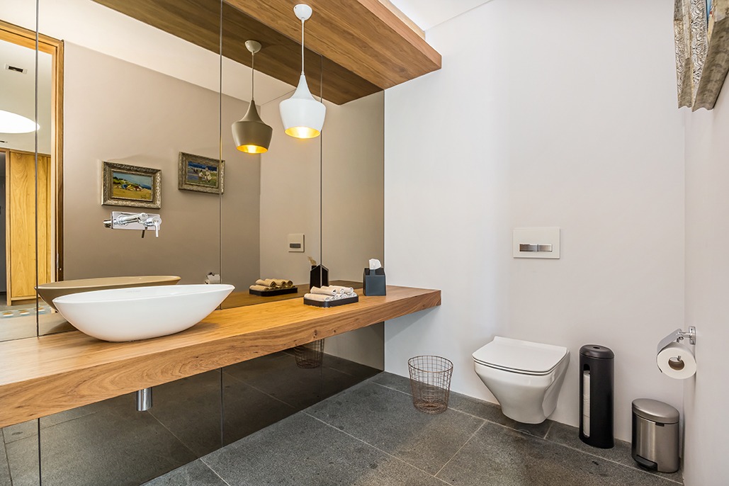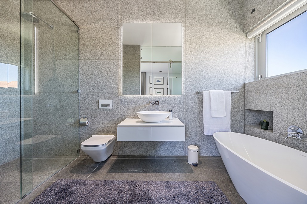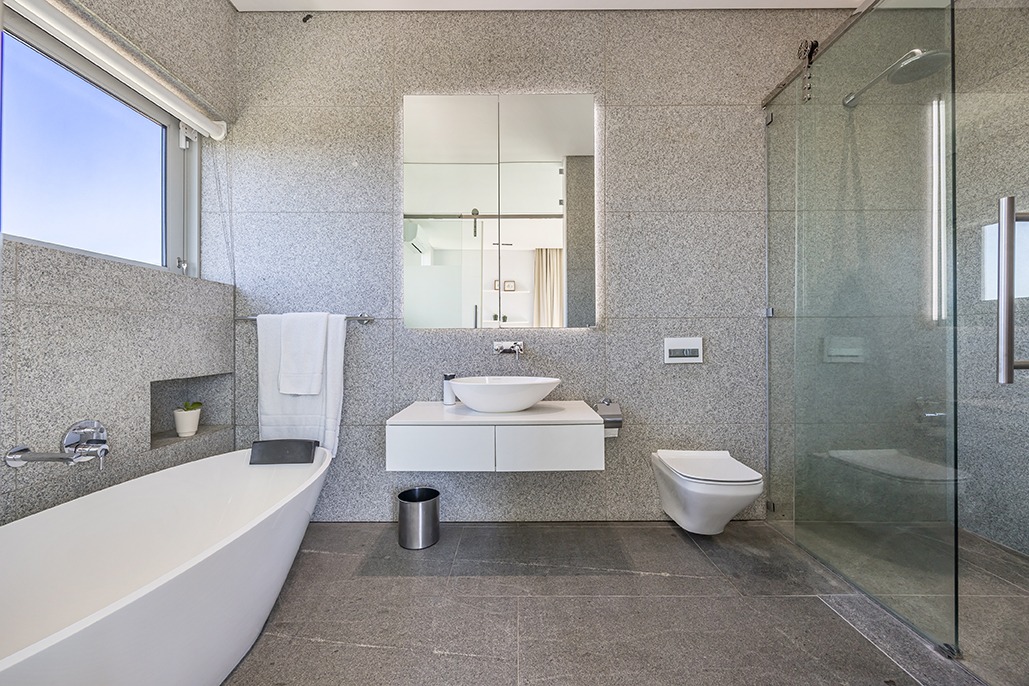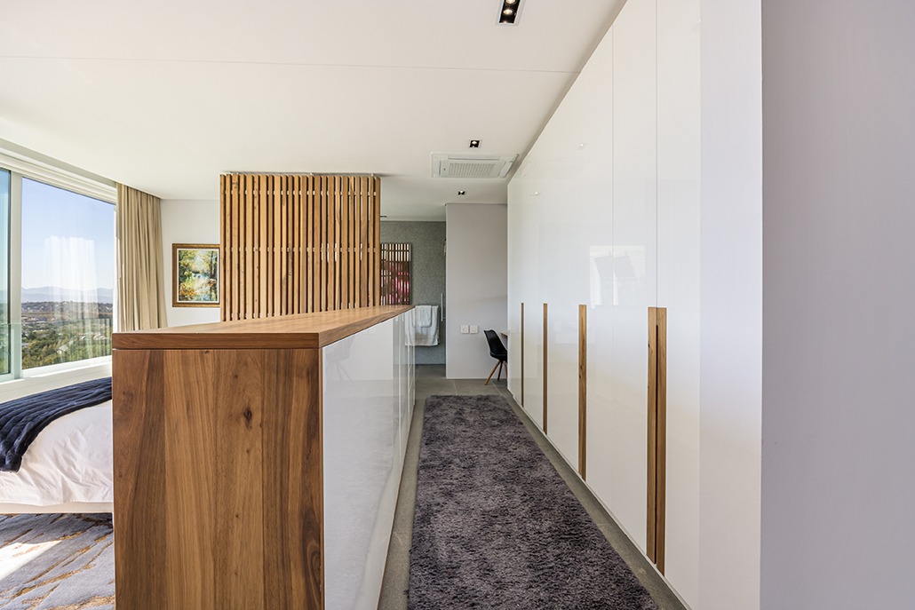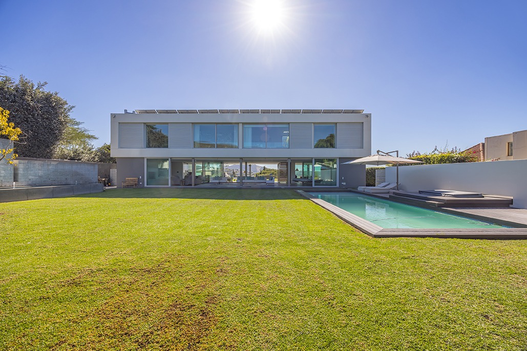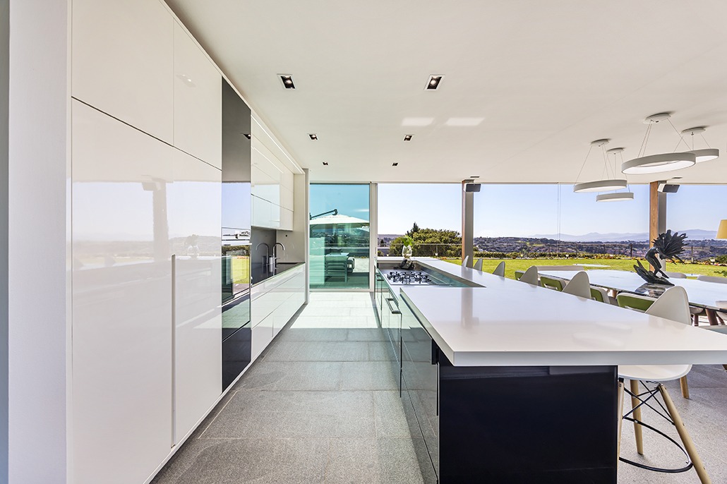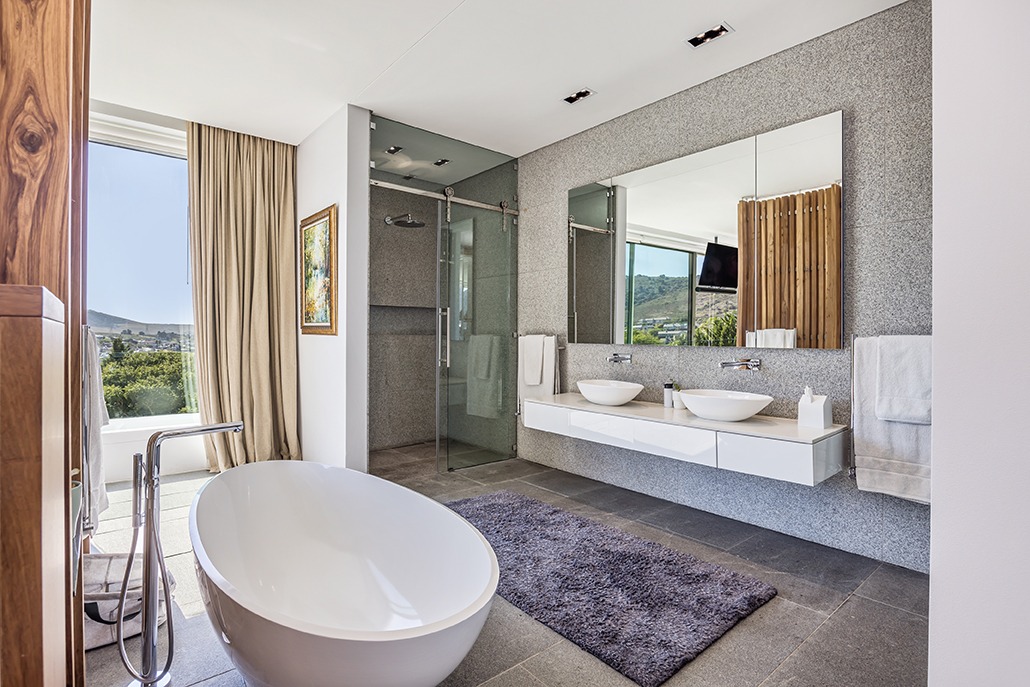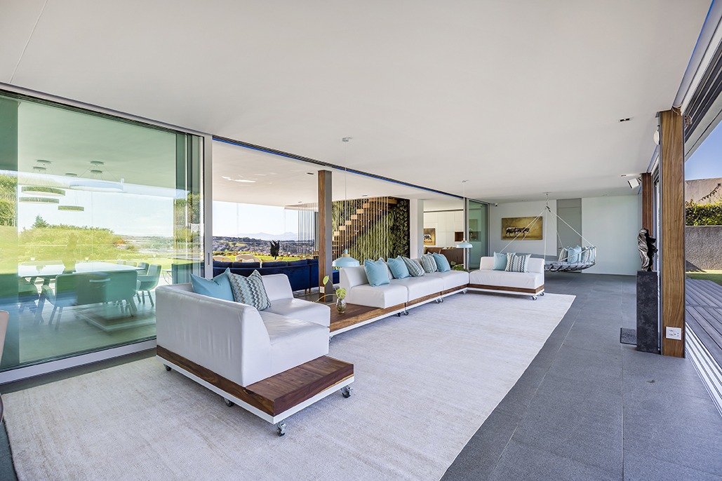 The third floor is dedicated to rest and relaxation, with six meticulously designed bedrooms, each offering a private en-suite bathroom. Four of the rooms feature a bath and shower combination, while two offer spacious walk-in showers. Three of the bedrooms, including the grand master suite, boast breathtaking views of the mountains and hills, while the other three offer views of the Tygerberg Nature Reserve.