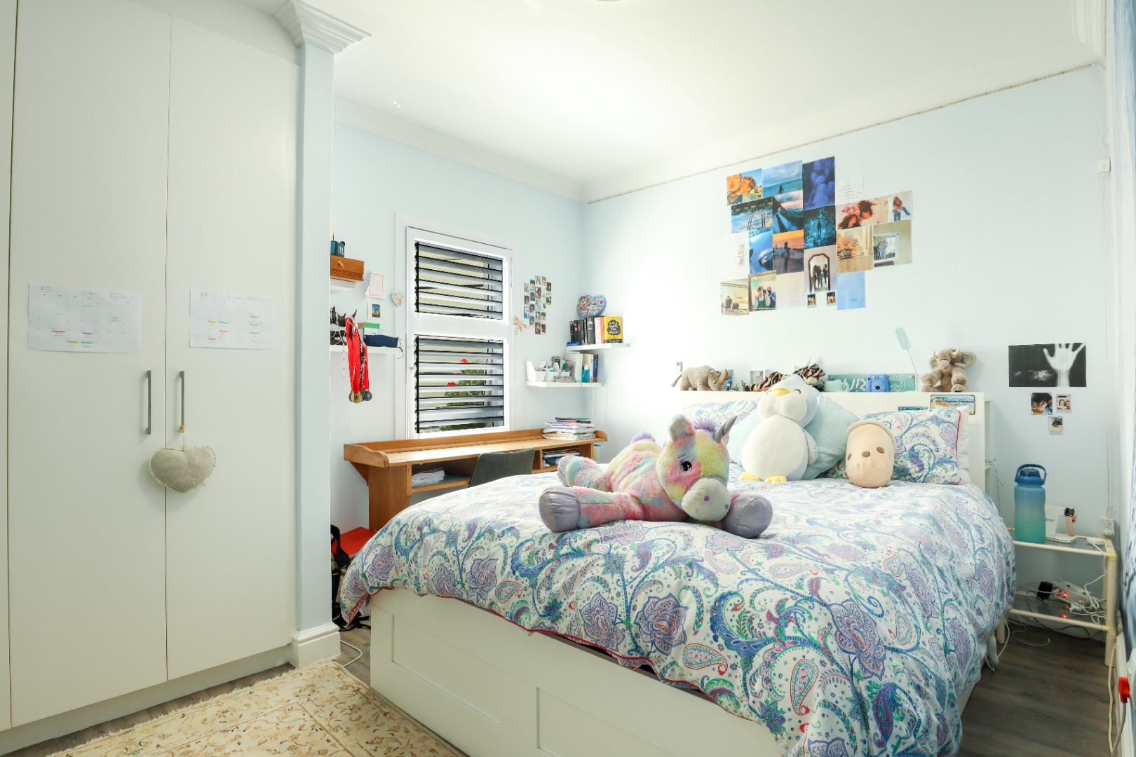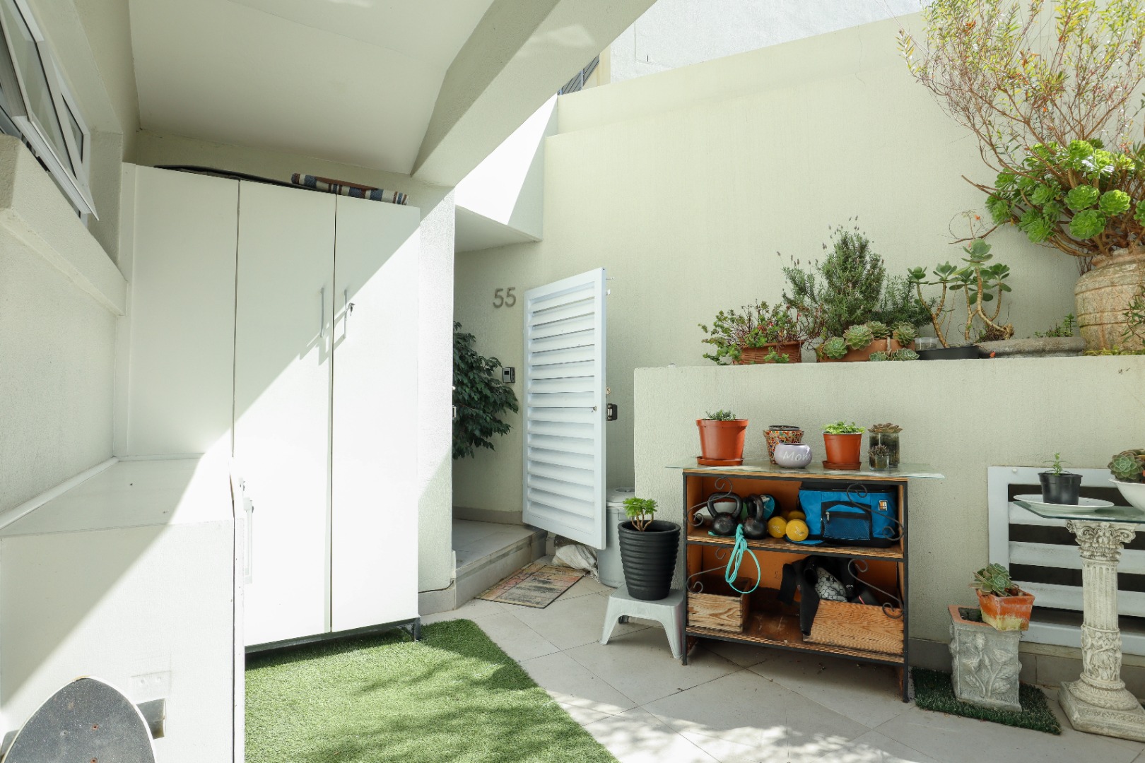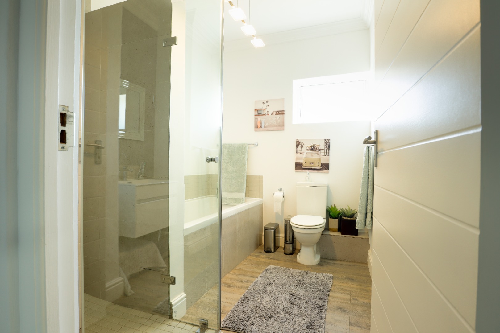 The bathrooms offer a modern, refined, spa-like vibe. We love the bonus of having exquisite laminate wood flooring throughout the apartment and workspace with inspiring views and soft early morning light - sheltered from the harsh western sun. The absolute prize is the walled garden space - corner gardens are simply the best, perfect for intimate gatherings or morning tea. The double dedicated parking space, along with allocated visitor parking, the 24hour guarded entrance and lovely neighbours truly sets this beauty in a well-deserved class of its own.