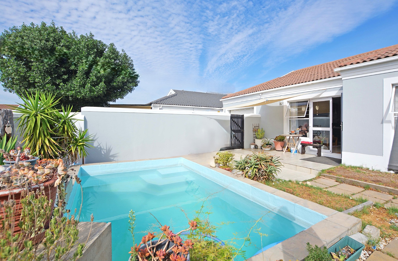 The property features a spacious lounge and dining area with stylish tiled flooring and doors that open directly onto a charming patio and your very own private pool, perfect for entertaining or enjoying a peaceful afternoon in the sun*