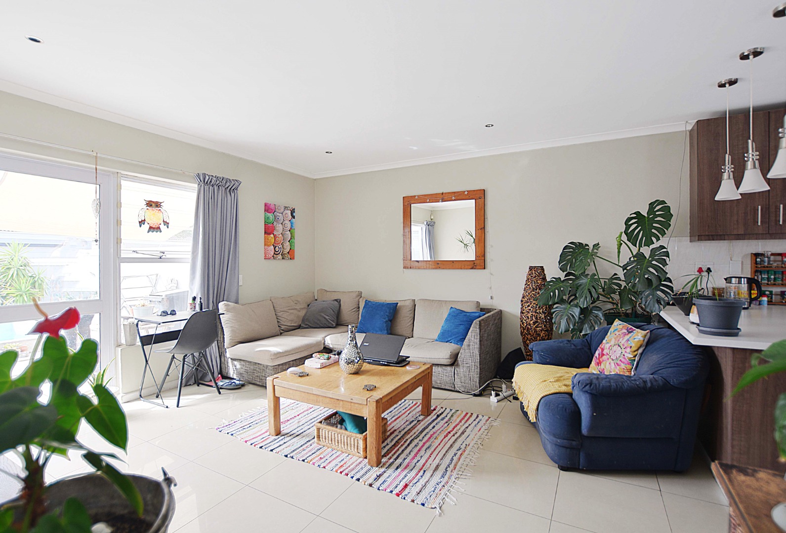 - Living Room/lounge 1 Tiled Floors, Curtain Rails, Internet Port, TV Port, Open Plan Doors to garden and pool