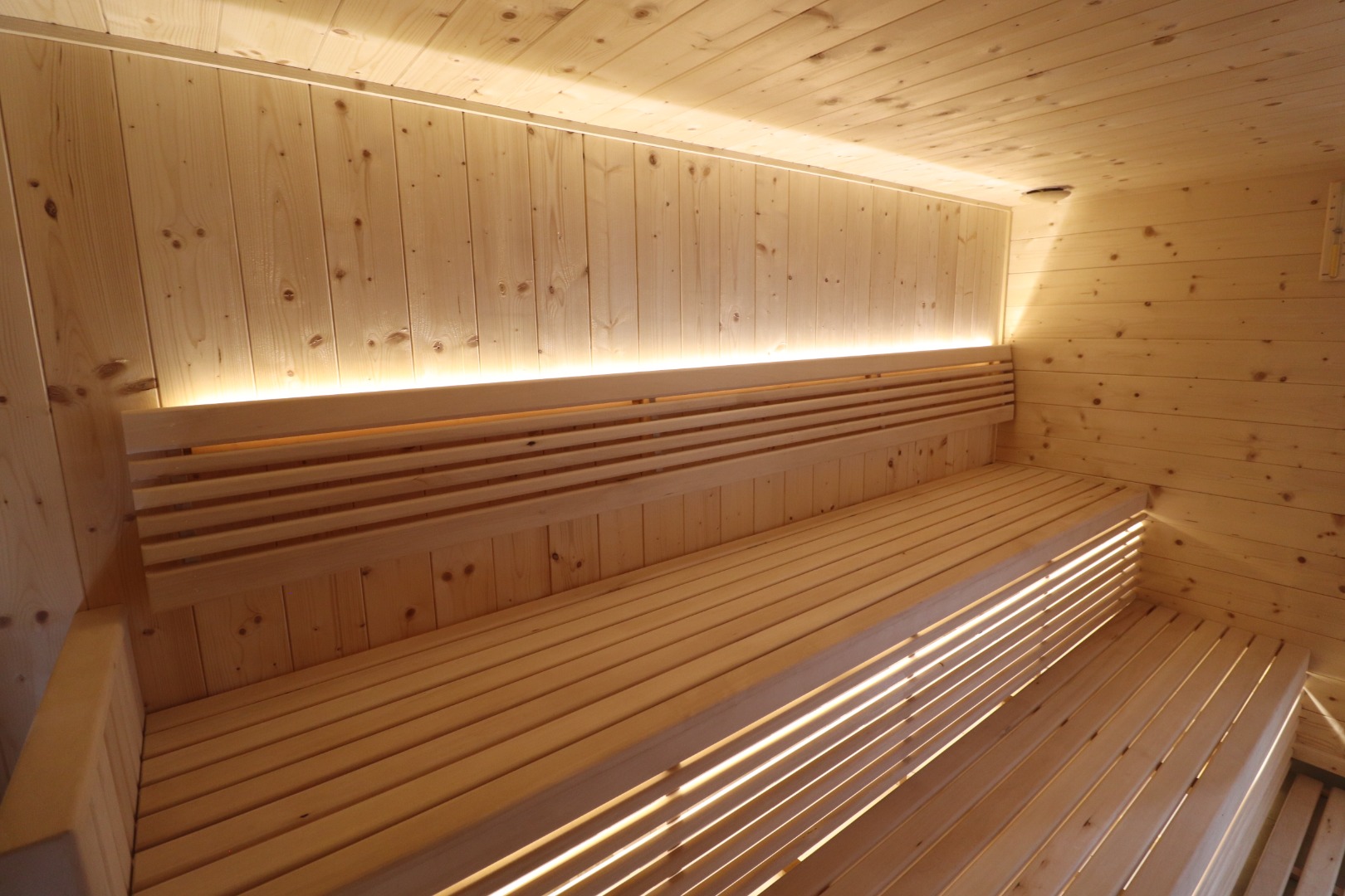 Der derzeitige Grundriss bietet drei Schlafzimmer und zwei moderne Badezimmer sowie ein Homeoffice und einen Fitnessraum, der auch als zusätzlicher Wohnbereich genutzt werden kann. Ergänzt wird das Angebot durch eine hochwertige Sauna, die kaum benutzt wurde. Das flexible Design ermöglicht eine einfache Umgestaltung in ein Zwei-Wohneinheiten-Konzept – ideal für Großfamilien oder für Arbeiten von zu Hause aus.