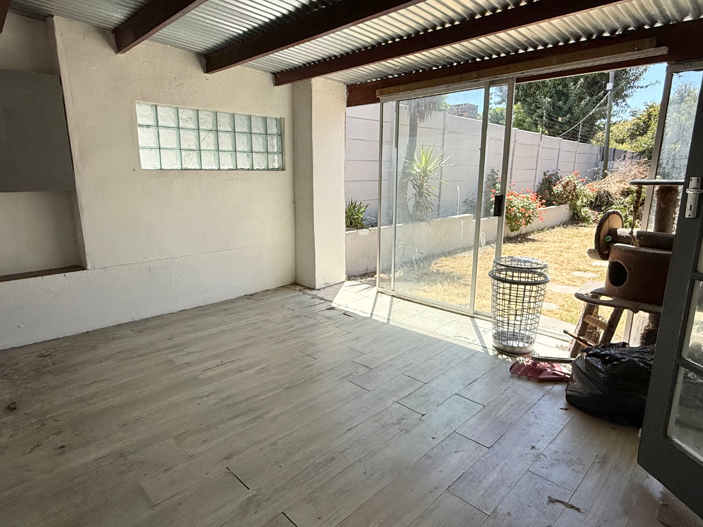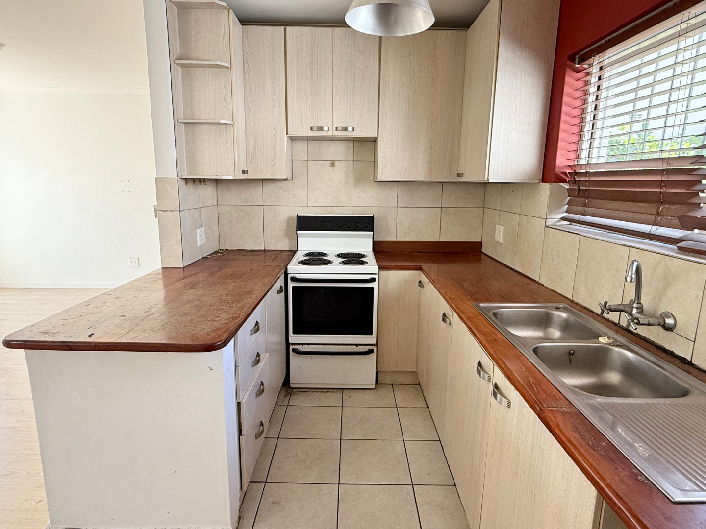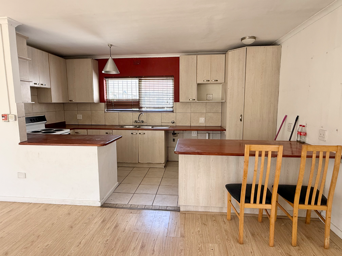 This inviting property, situated within a secure complex in Bloubergrant, presents a neat exterior with white buildings, terracotta tiled roofs, and a paved driveway, offering a welcoming first impression. The gated entry and totally walled perimeter enhance security, providing peace of mind for residents.