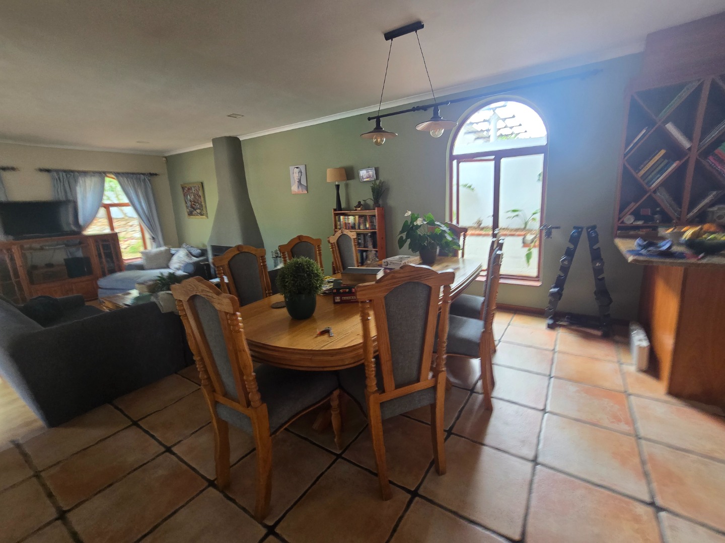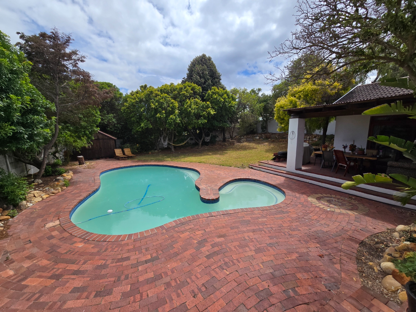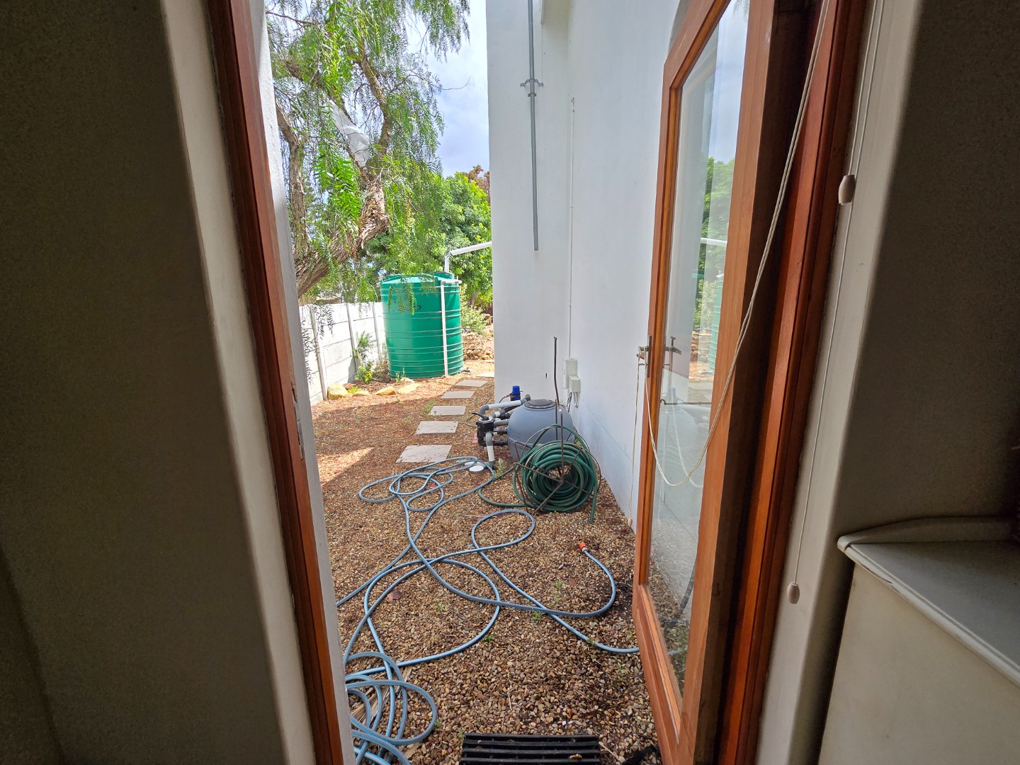Massive (80m²) flat – completely separate from the house. This great space is light and bright and consists of a very spacious tiled open plan living room with double doors opening up onto private courtyard with fish pond and water feature. The separate bedroom is also tiled and offers double doors opening up onto the same courtyard as well as door leading to the back garden. This bedroom room is en-suite and consists of a shower, basin and toilet. This could very easily be a large home office with boardroom!