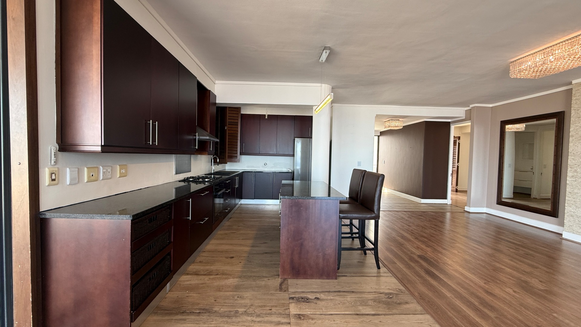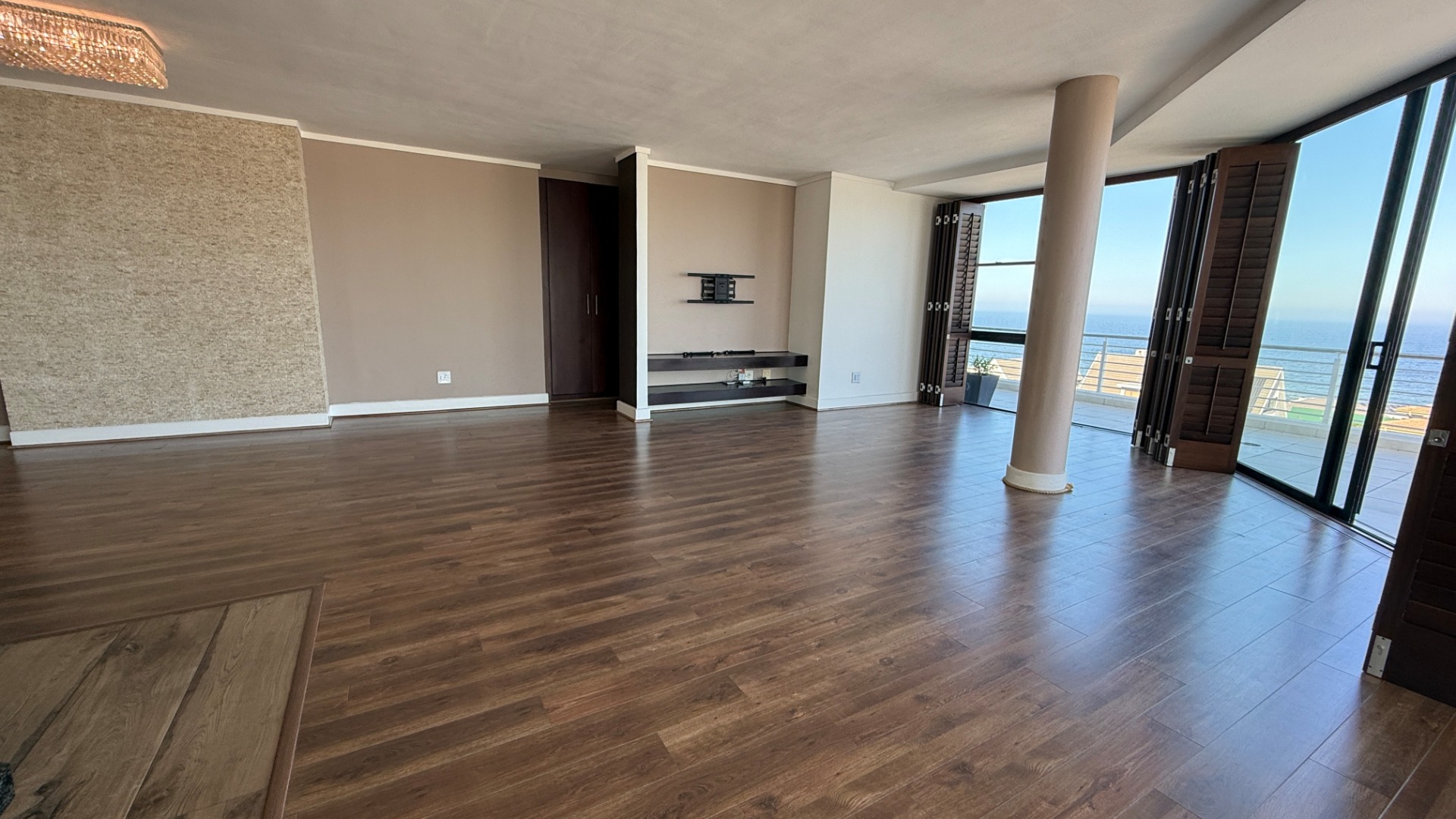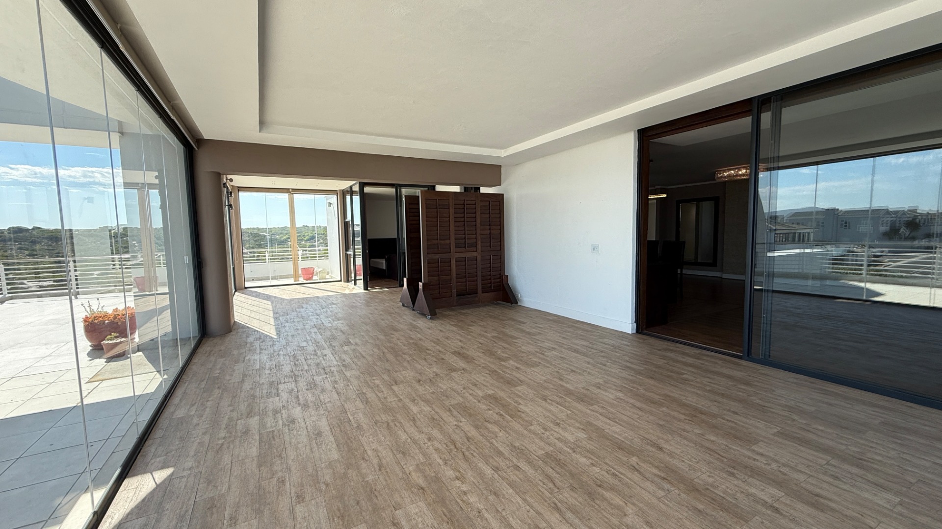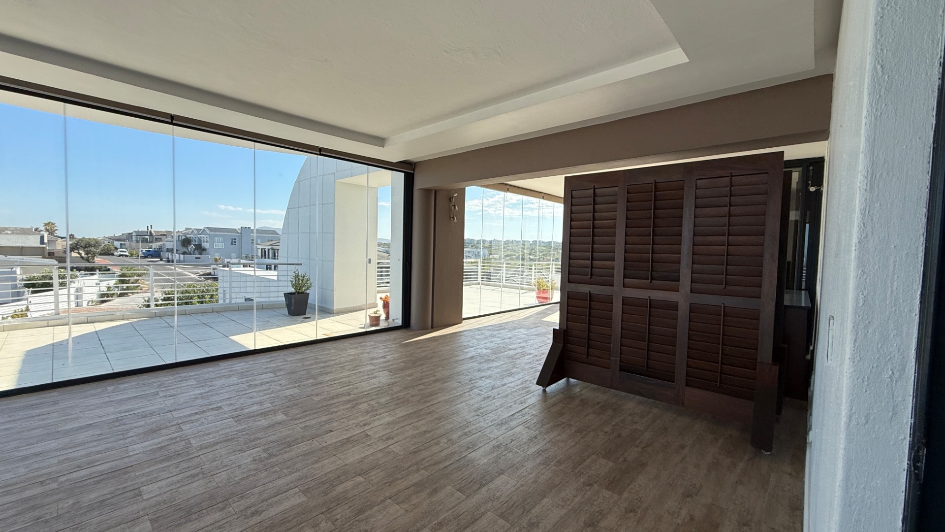 Located in a highly desirable apartment complex in bloubergstrand Village is this unique north side top floor apartment * Move in ready condition and renovated in warm, romantic and inviting tones * Boasting generously sized living areas leading onto north facing wrap around 216sqm balcony, over 60sqm has been fully covered and enclosed with fold back doors allowing all year enjoyment which soaks up scenic Table Mountain, Atlantic Ocean and Robben Island views * The stack doors also have automated blinds to close up when needed * The kitchen is fitted with Black granite and mahogany solid spray doors and centrally located for easy entertaining – who wouldn’t want to cook with a view * Master suite is located on the seaside offering walk through dressing area and en-suite bathroom * Two additional bedrooms each have their own en-suite bathroom and there is a separate guest cloakroom for visitors at the front foyer * The apartment has been fitted with dark wood shutters throughout allowing for adaptable sun control * Three under building parking bays & 1 storeroom * This boutique sized apartment complex of 27 is known for its superb location, security accessed foyer with lift and excellent overall security * Apartment complex also supports our 24hr dedicated Blouberg Patrol community initiative