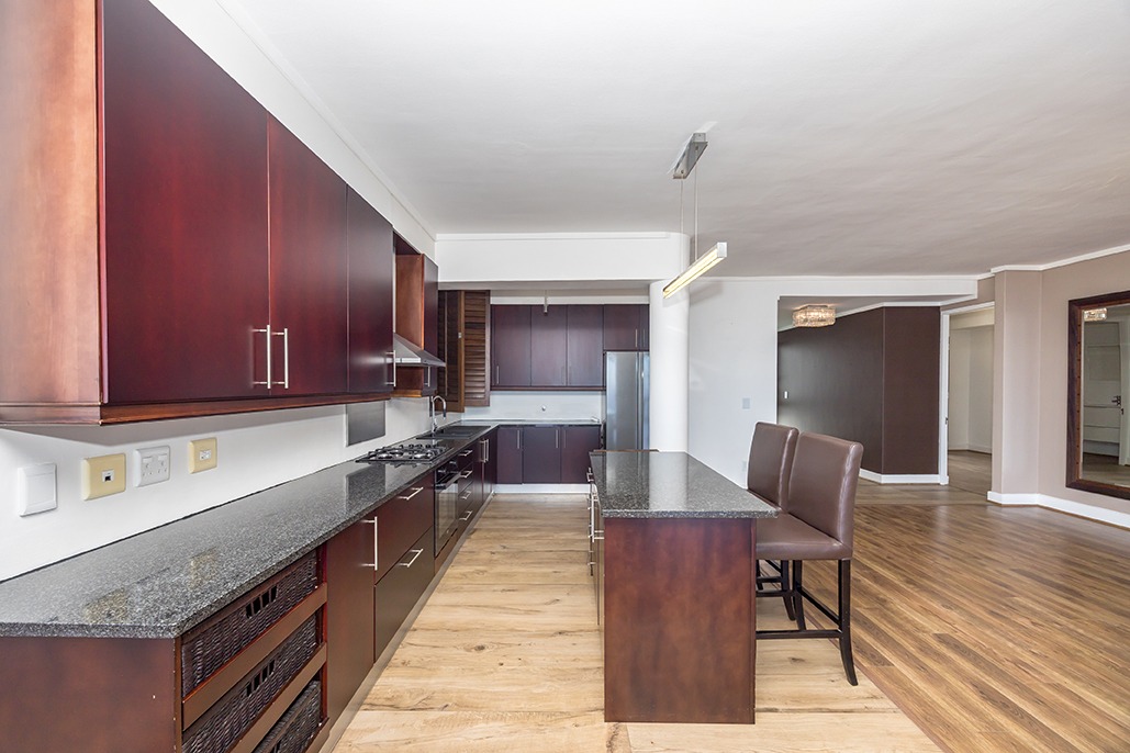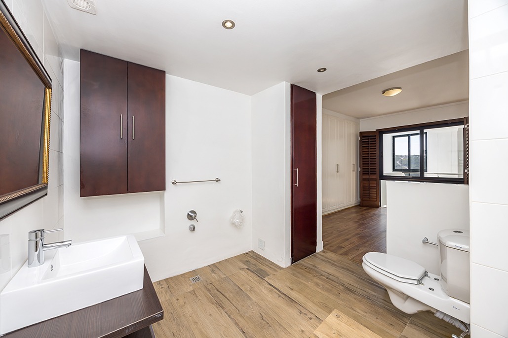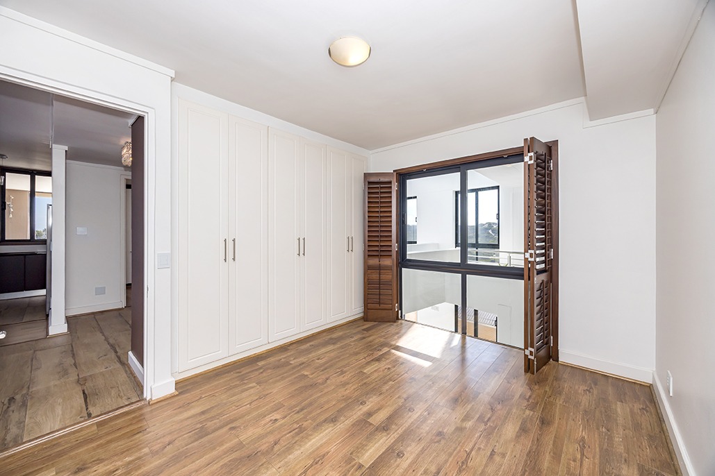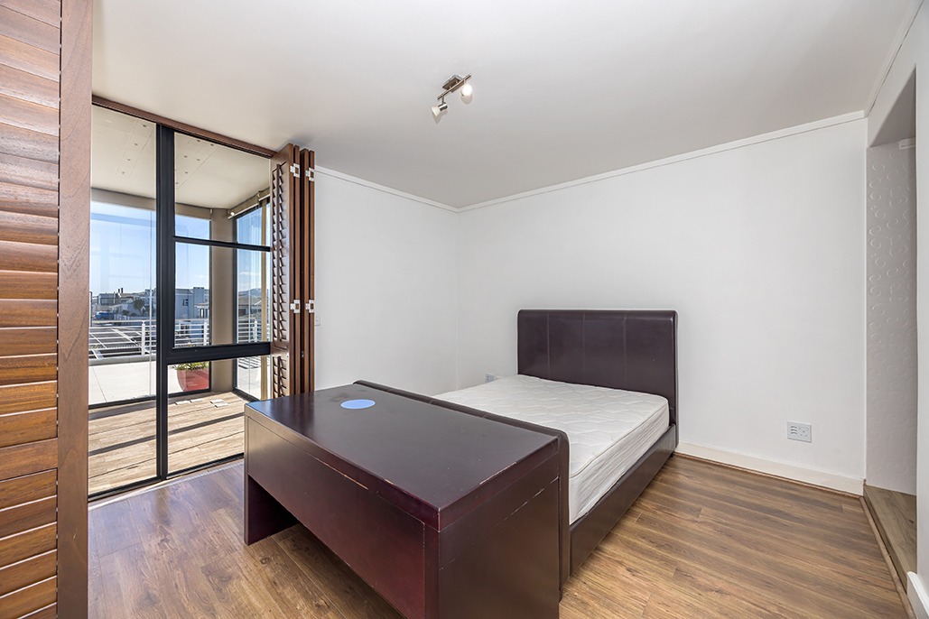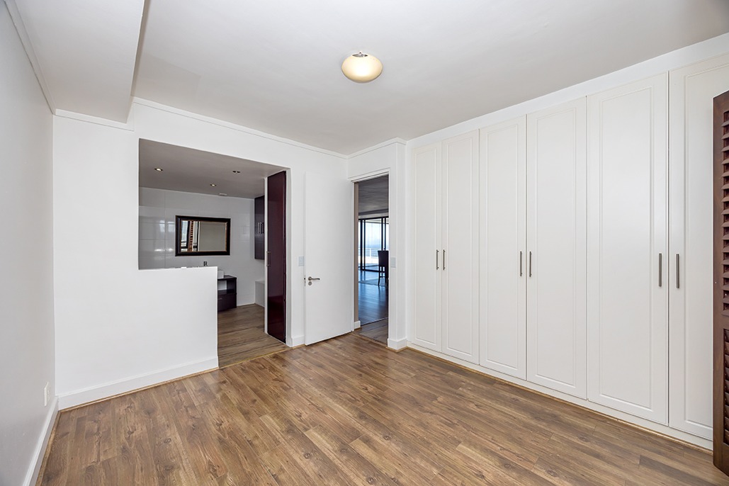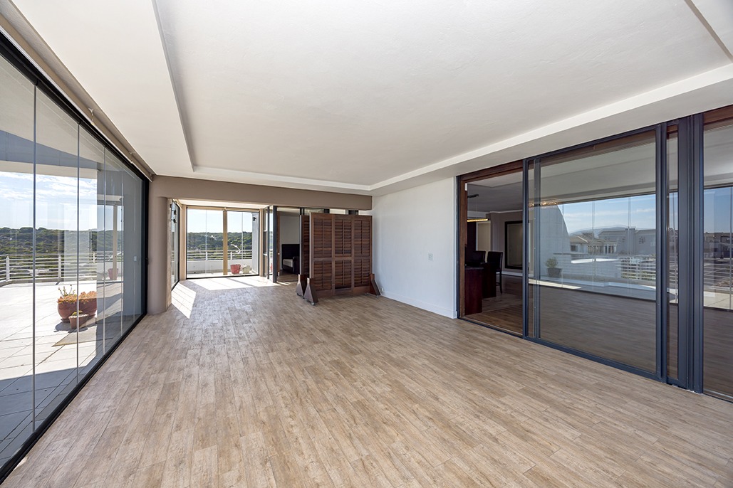 Located in a highly desirable apartment complex in bloubergstrand Village is this unique north side top floor apartment * Move in ready condition and renovated in warm, romantic and inviting tones * Boasting generously sized living areas leading onto north facing wrap around 216sqm balcony, over 60sqm has been fully covered and enclosed with fold back doors allowing all year enjoyment which soaks up scenic Table Mountain, Atlantic Ocean and Robben Island views * The stack doors also have automated blinds to close up when needed * The kitchen is fitted with Black granite and mahogany solid spray doors and centrally located for easy entertaining – who wouldn’t want to cook with a view * Master suite is located on the seaside offering walk through dressing area and en-suite bathroom * Two additional bedrooms each have their own en-suite bathroom and there is a separate guest cloakroom for visitors at the front foyer * The apartment has been fitted with dark wood shutters throughout allowing for adaptable sun control * Three under building parking bays & 1 storeroom * This boutique sized apartment complex of 27 is known for its superb location, security accessed foyer with lift and excellent overall security * Apartment complex also supports our 24hr dedicated Blouberg Patrol community initiative