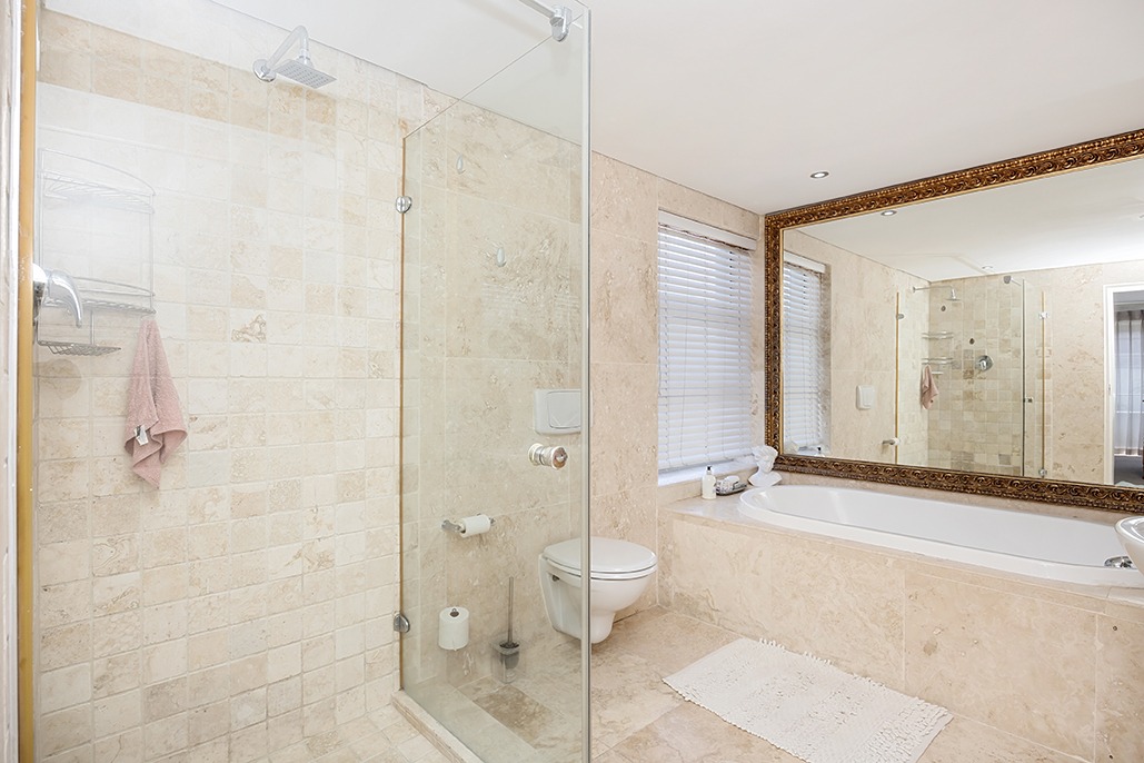2nd floor, again with a seamless flow to 2nd Lounge and double dining area with Library corner. The sleek, well equipped, gourmet, Stainless steel kitchen, with fitted double door fridge/freezer, coffee machine and microwave, two fitted ovens, and hob, plus a steam oven. Part Gas and part Electric Hob integrates seamlessly with this open plan area. The kitchen area also leads out to a gorgeous, private, sundrenched drying area with a fitted outside laundry basin. This floor also accommodates the 2nd and 3rd bedroom, both with full Ensuite bathrooms.