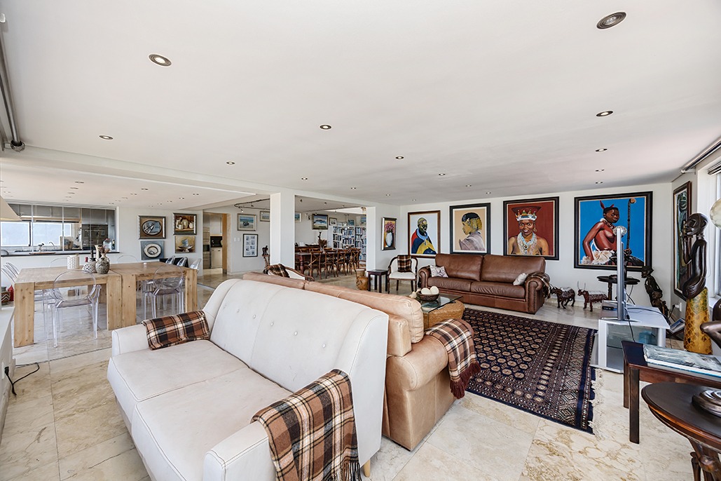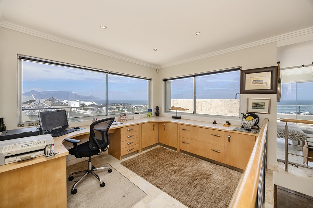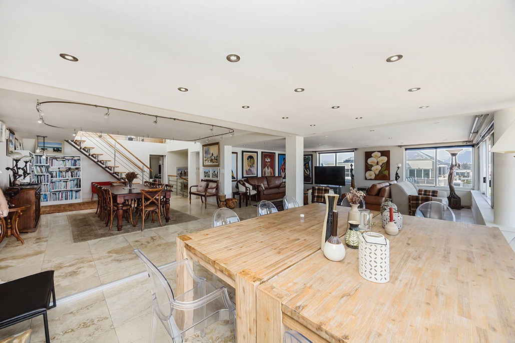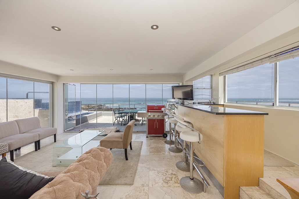 This one of a kind, Beachfront home offers Unparalleled views of the Mountain, sea and Robben Island, from every level of the home.