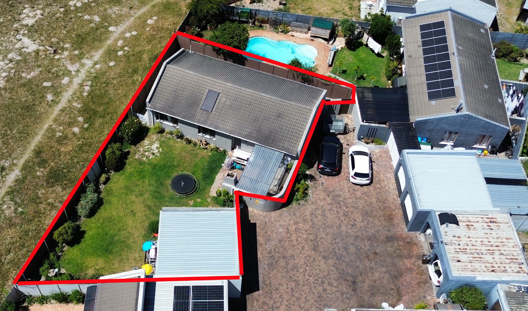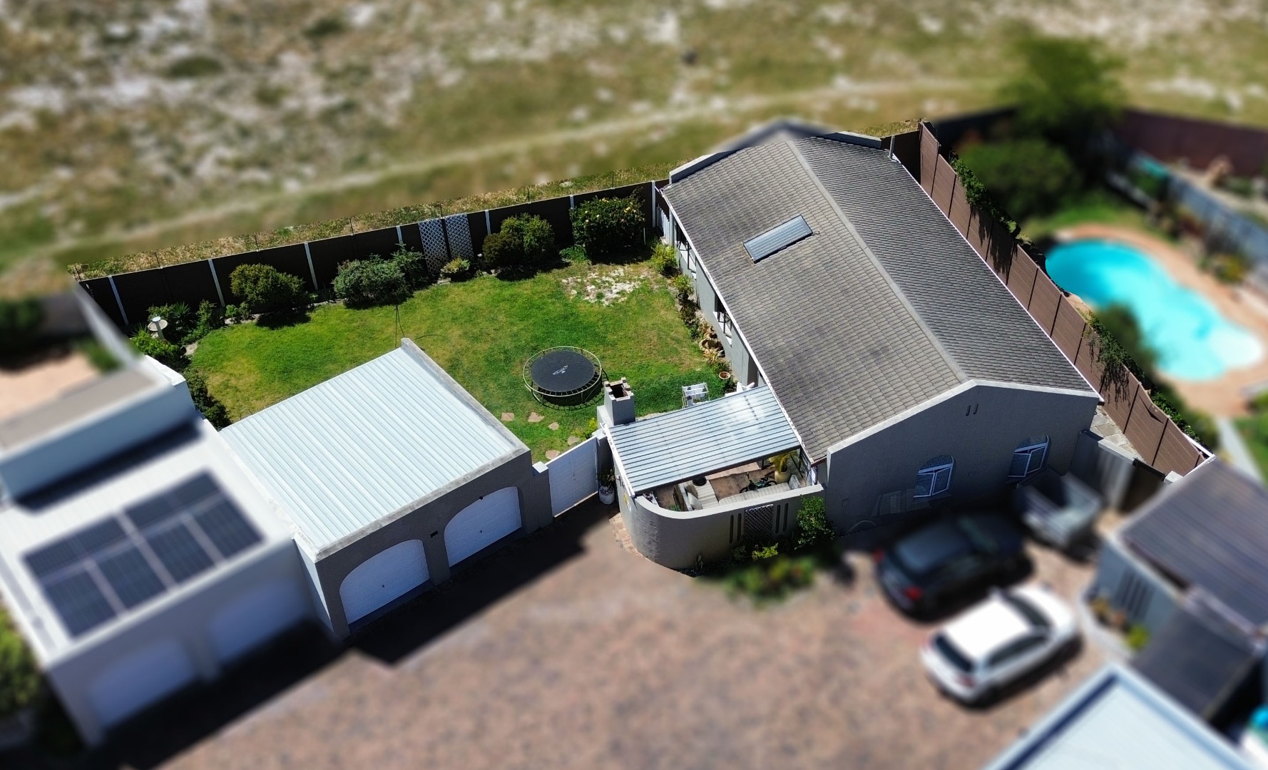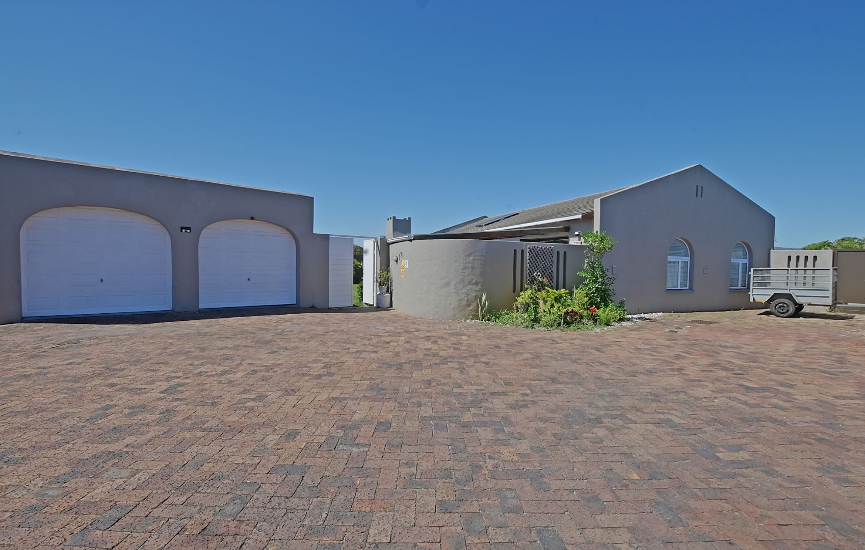 The property also benefits from a double garage with manual doors and enhanced security with electric fencing along the perimeter walls.