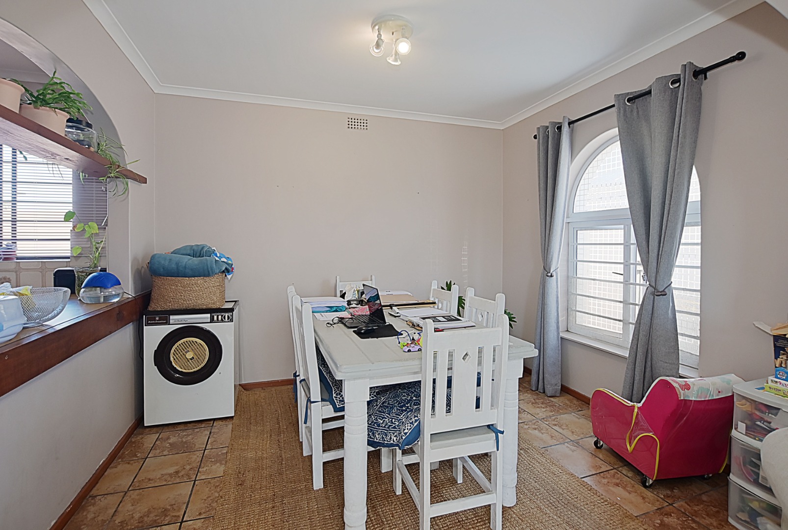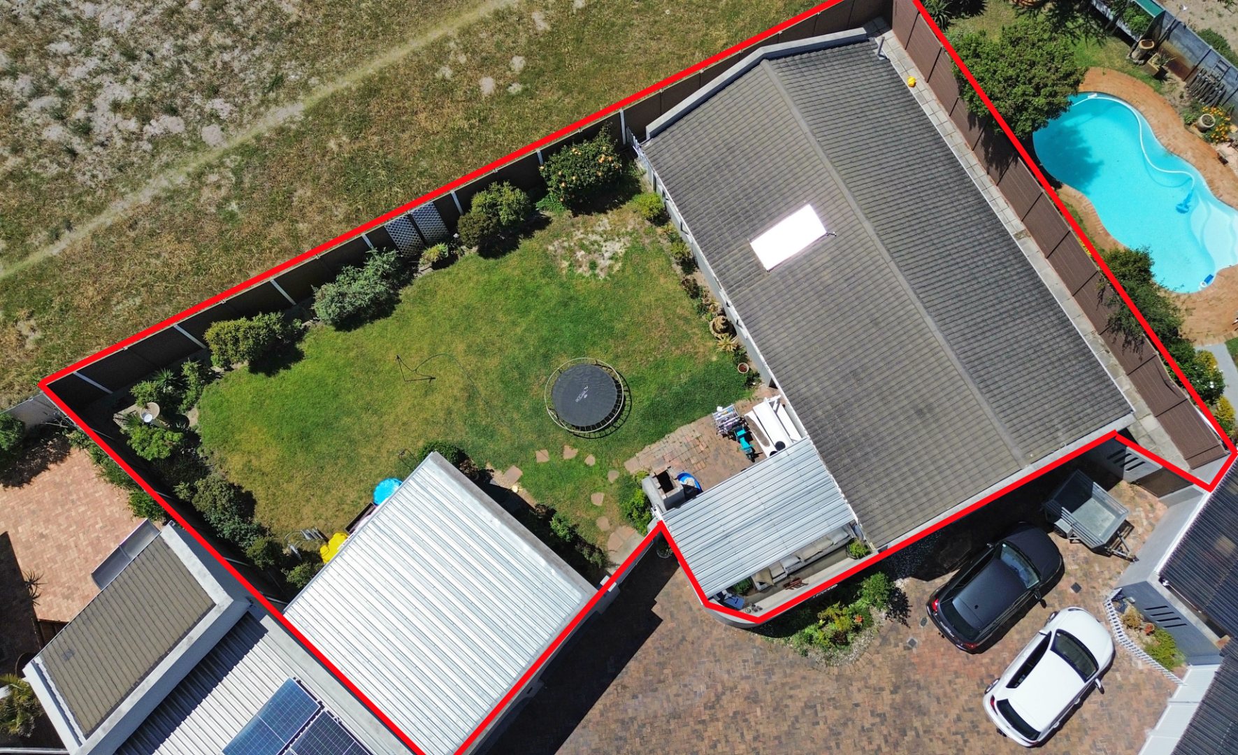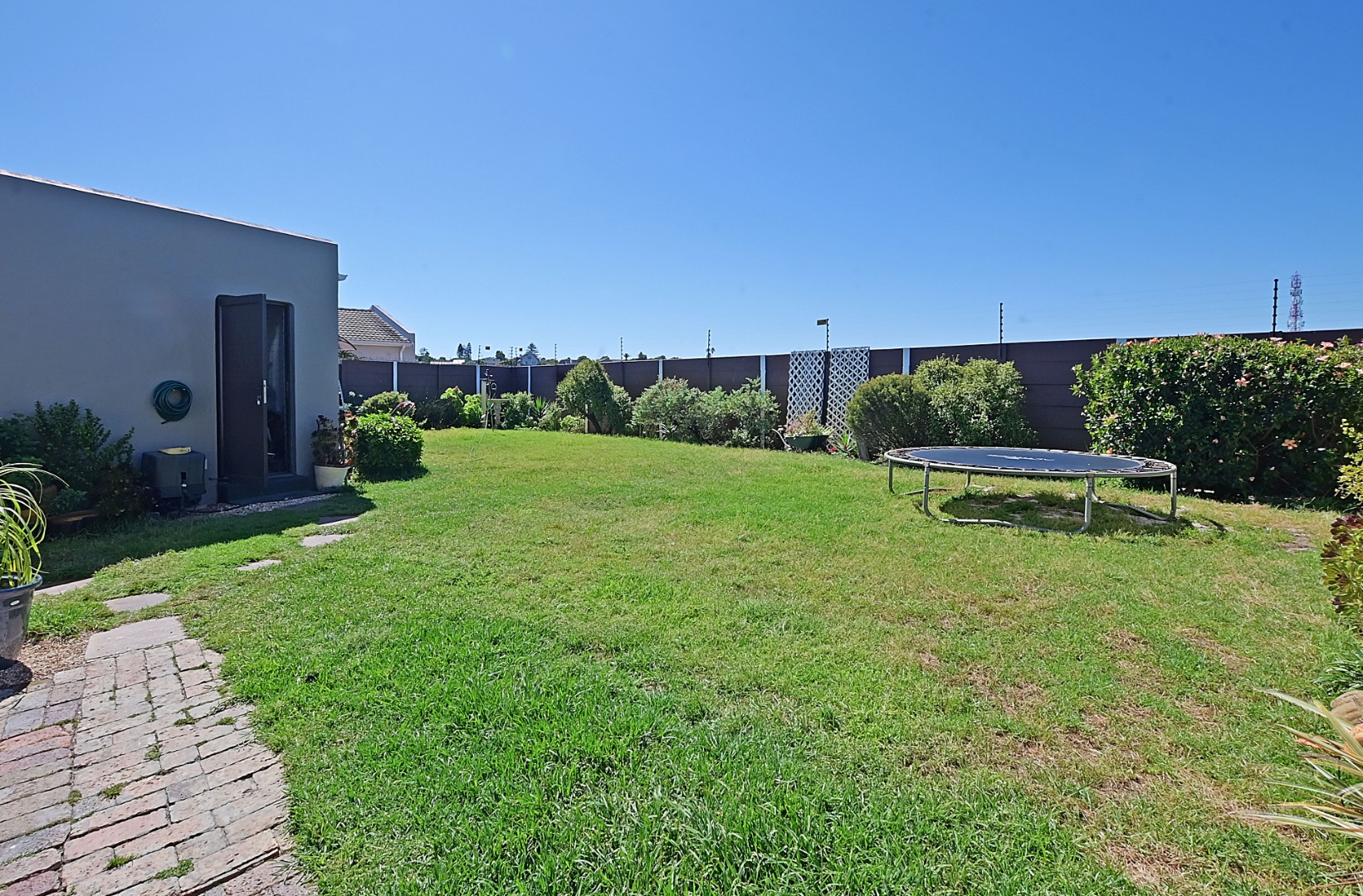 Outside, the lovely patio with its pergola and built-in braai area offers a perfect space for outdoor living and relaxation. The garden is established and lush and offers loads of space for kids or pets to play. There is also a borehole, which ensures a lush beautiful garden all year round.
