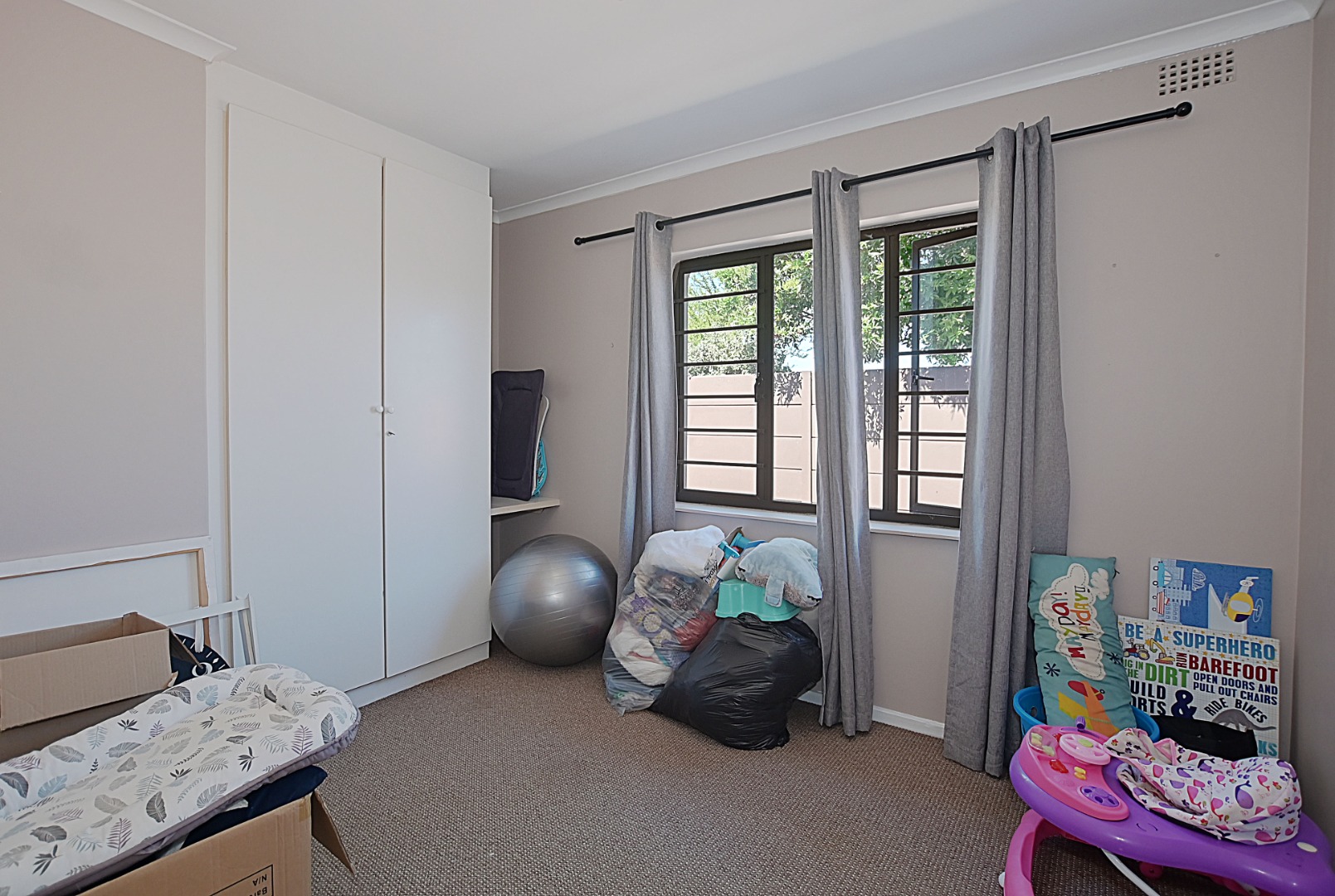 The passage leads to the three generously sized carpeted bedrooms, each fitted with built-in cupboards.