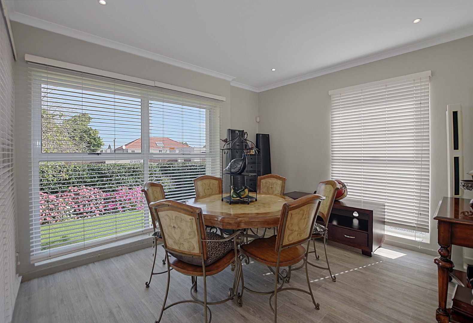 Spacious sun soaked diningroom – fitted with blinds.