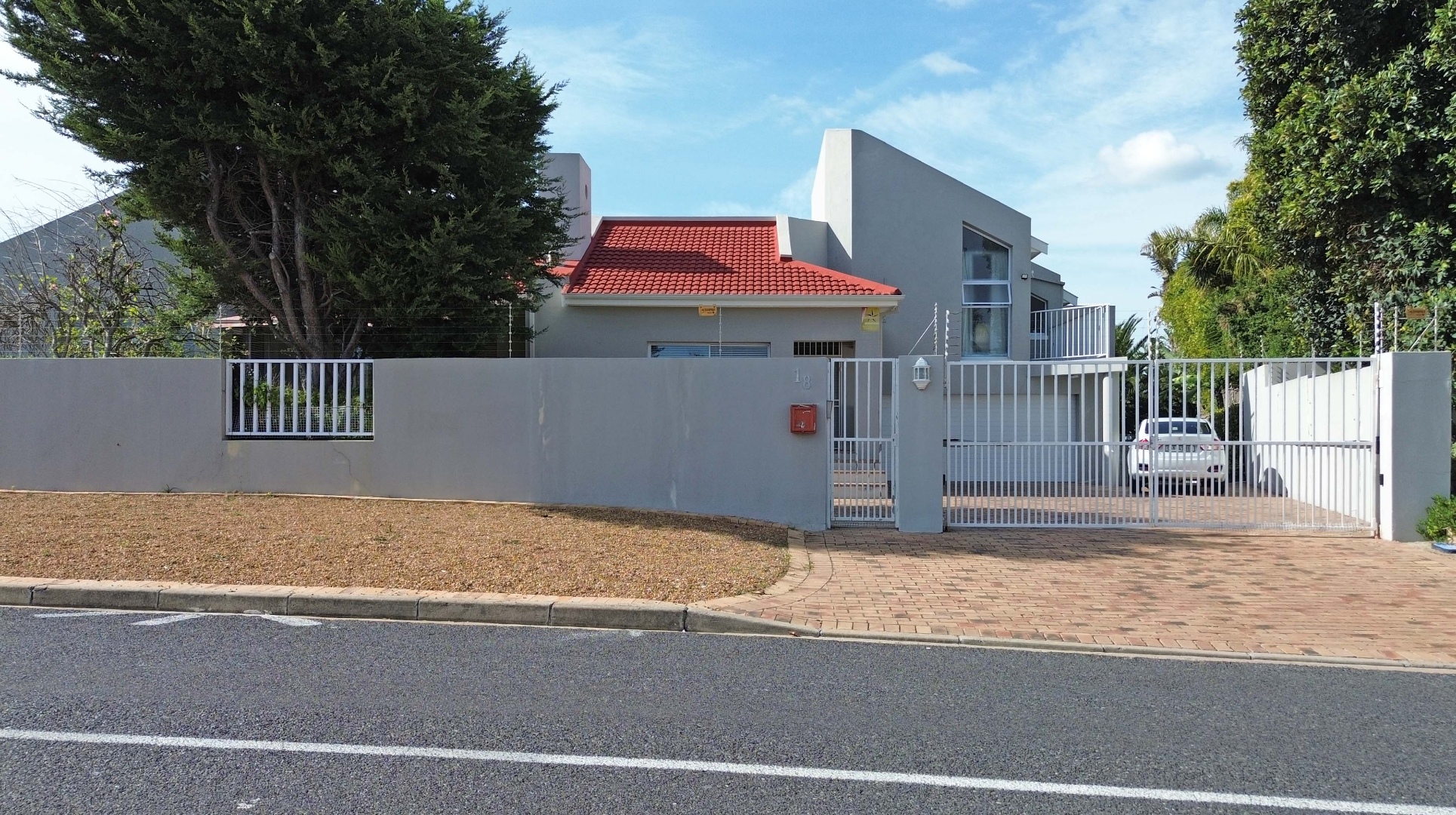 Large paved driveway with ample off street parking for approximately 6 cars behind automated gates.