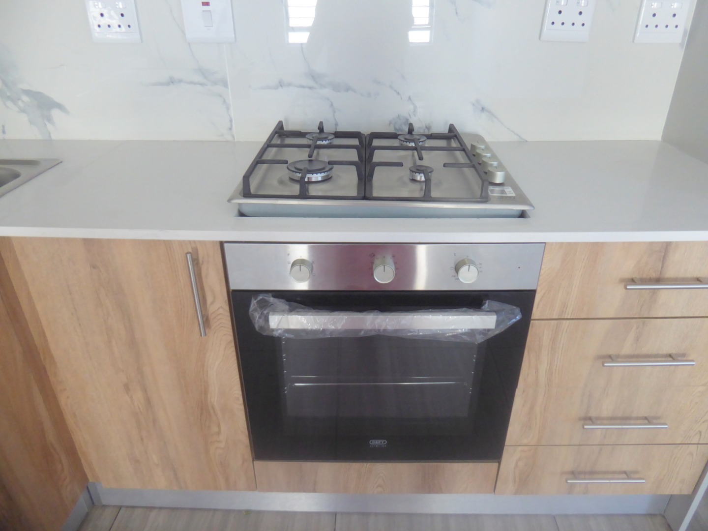 An open plan living and dining area flows to the balcony . The brand new kitchen has a gas hob and new oven, tiles and cupboards, in a trendy two tone colour palatte. The master bedroom is spacious with an en-suite bathroom. There is a family bathroom, and the entrance hall has a storage cupboard. The third bedroom has an en-suite bathroom as well.
