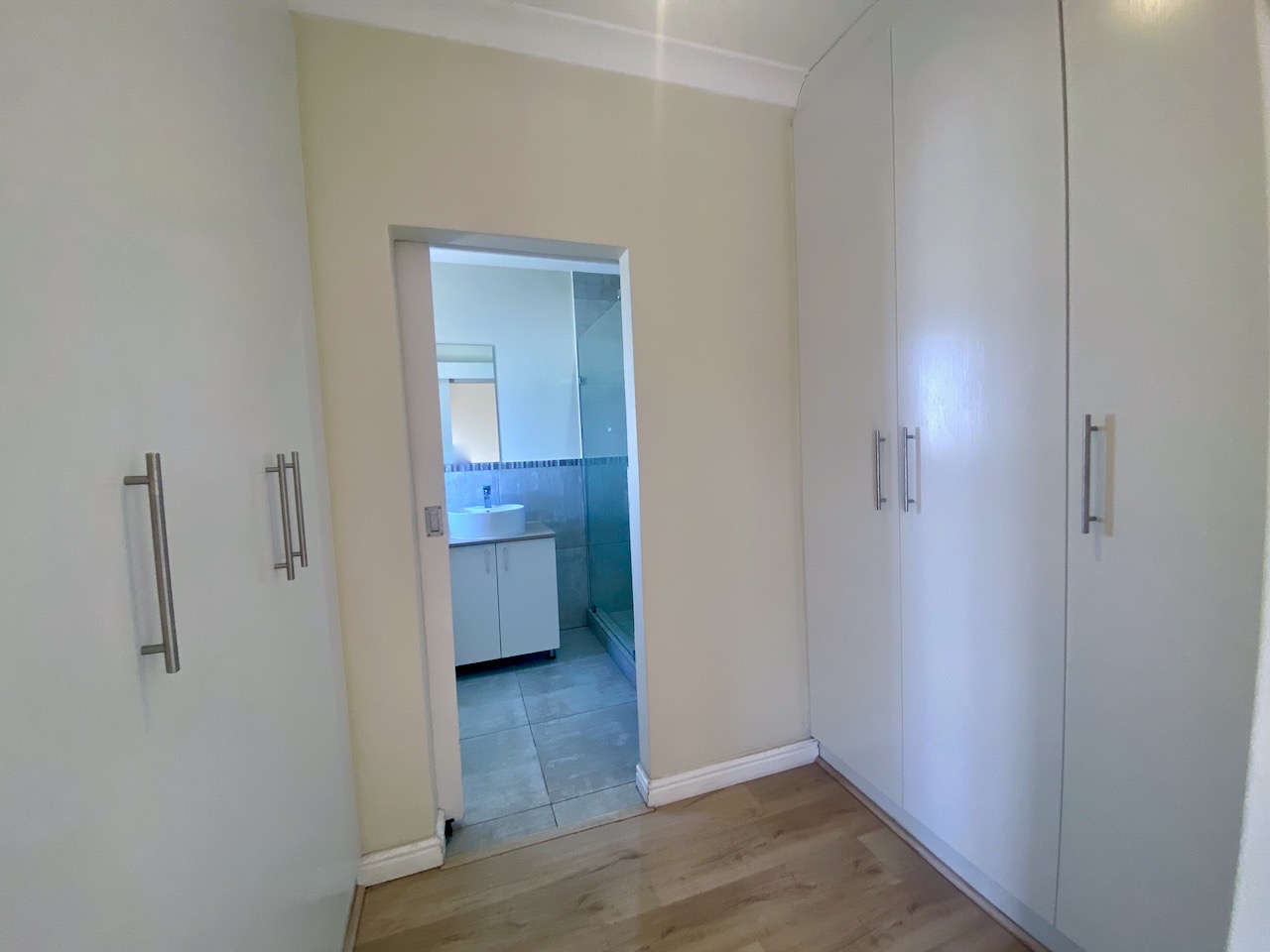 Three bedrooms with laminated flooring and built-in-cupboards.
