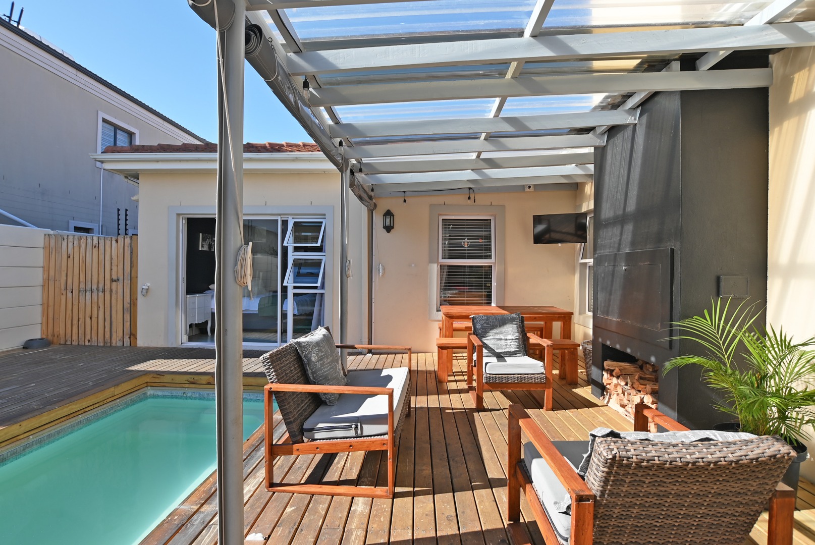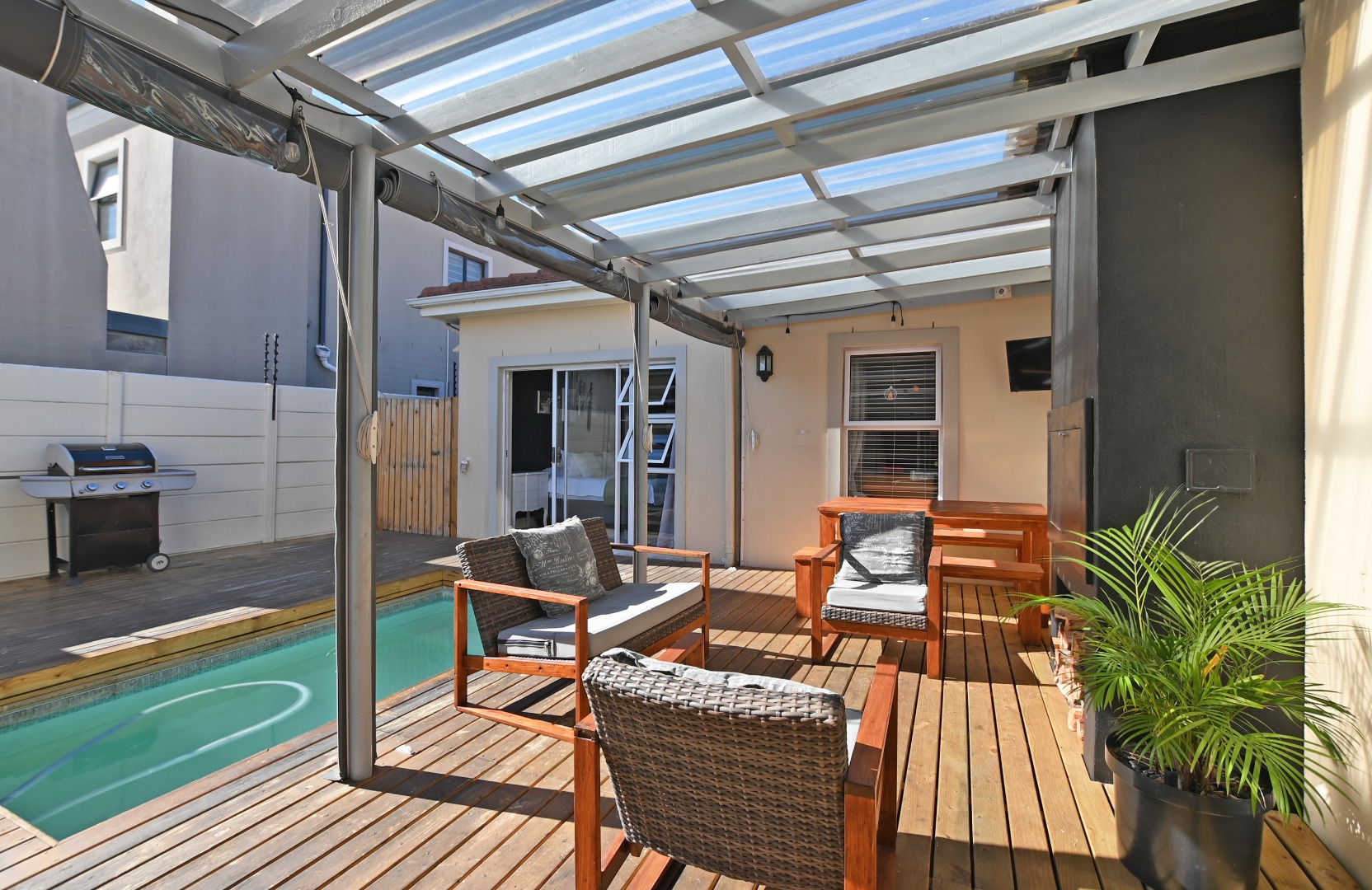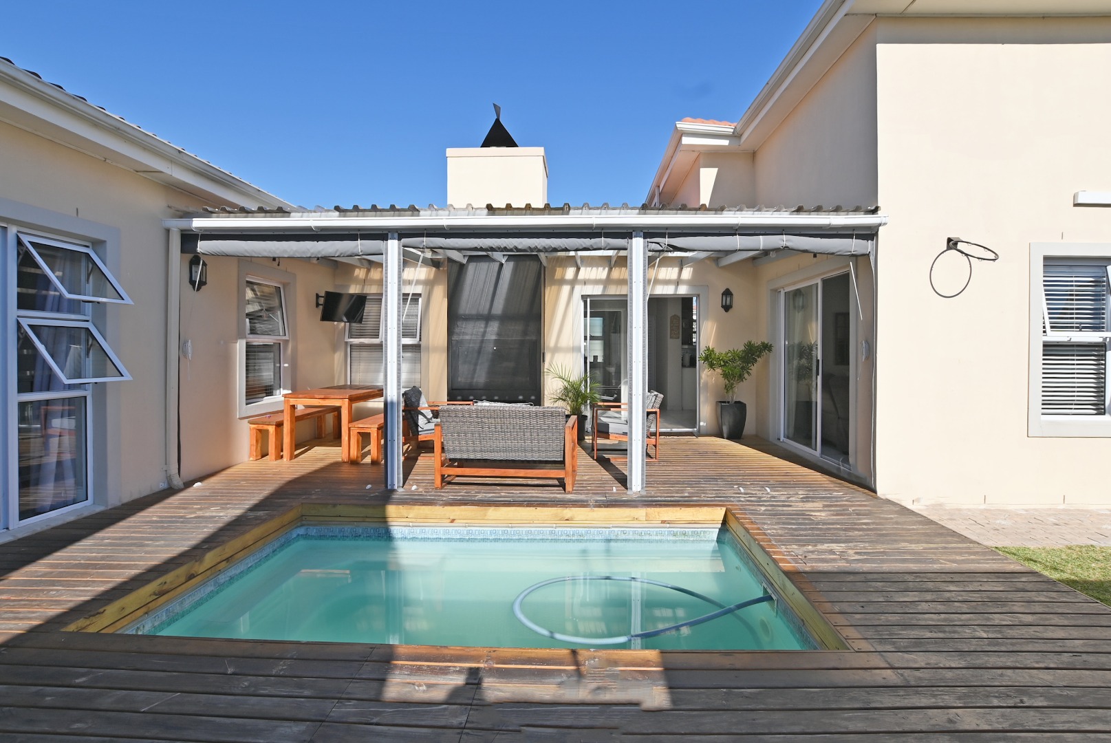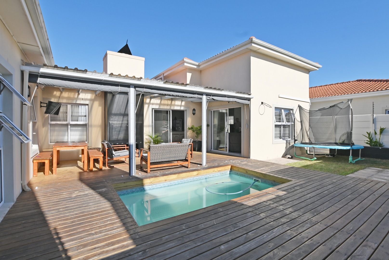 North facing entertainment area – covered patio with built-in braai.