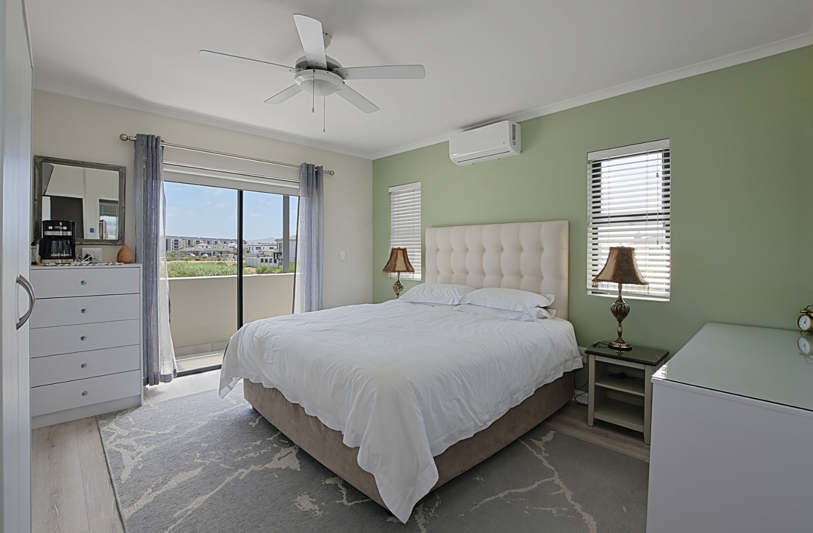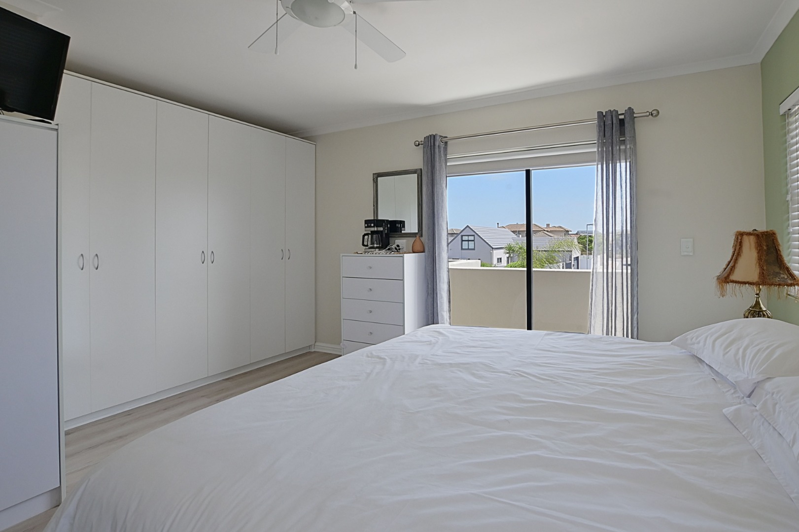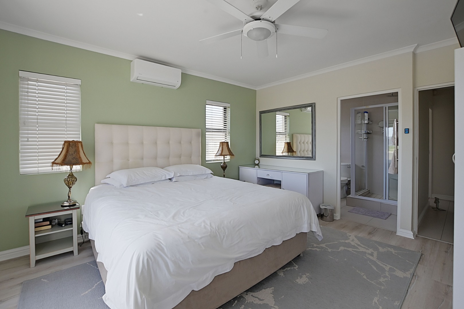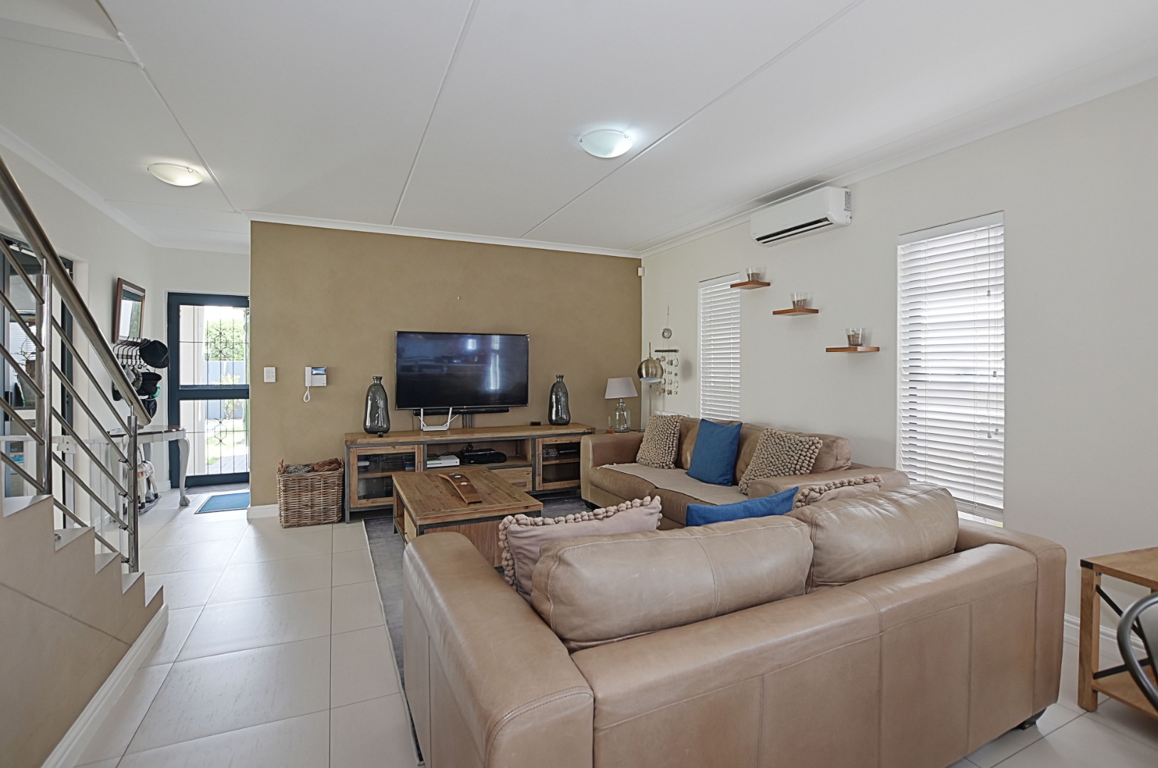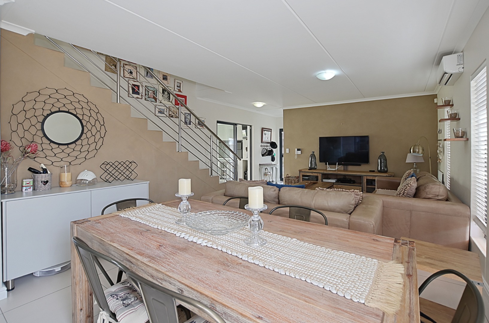 The expansive braai room is a standout feature — perfect for entertaining year-round — and opens onto a sunny, private garden complete with a swimming pool and ample space for children and pets to play. The open-plan kitchen is complemented by a separate scullery with direct access to the back garden, while additional garden storage adds to the home’s practicality. A staff quarters with bathroom is positioned at the rear of the property.