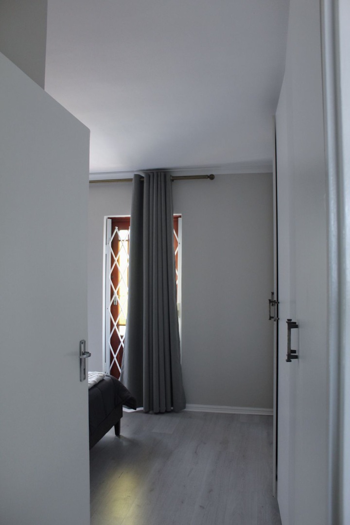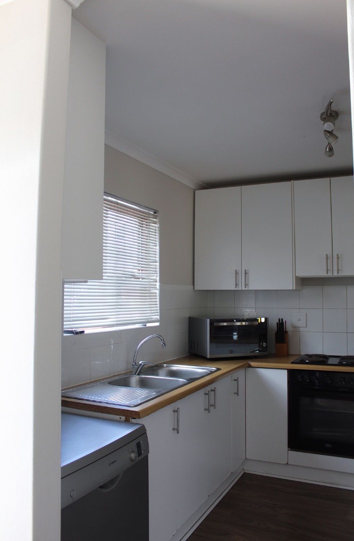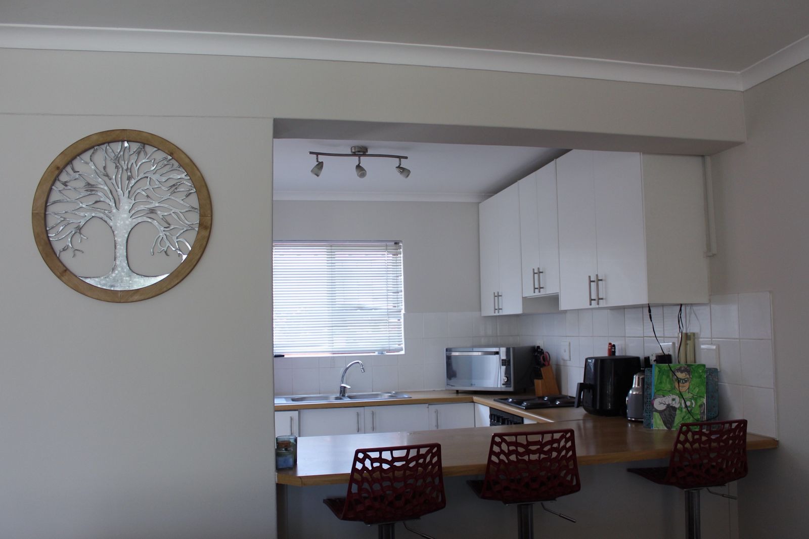 This beautiful 2-bedroom duplex is in pristine condition. Located in a well managed secure complex. It is the ideal choice for buyers seeking a well-kept, move-in-ready home. The property boasts elegant laminated flooring throughout. Two spacious bedrooms, the main bedroom opens onto a balcony. A bathroom plus a guest loo downstairs . The open-plan kitchen is fitted with an oven and hob and provides ample cupboard space. The lounge sliding doors opens onto a manageable size garden with a fitted braai where you can entertain your family or friends. Additional features include a single garage and secure parking for an extra vehicle.