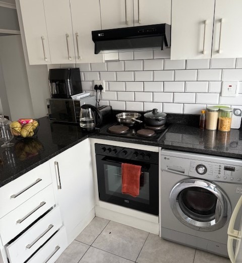- Kitchen 1 Open Plan, Stove (Oven & Hob), Extractor Fan, Washing Machine Connection