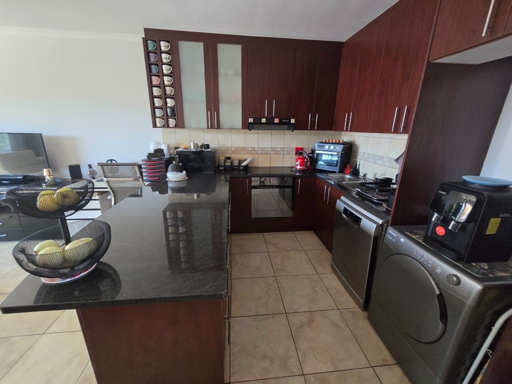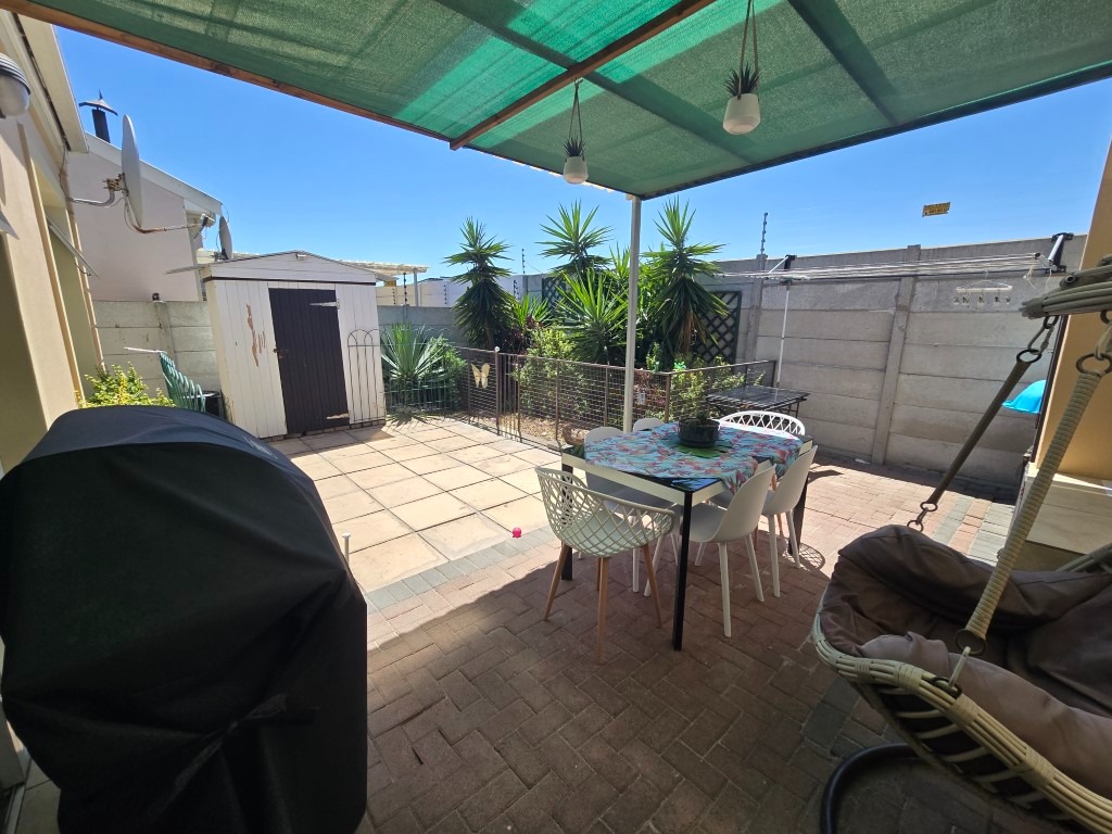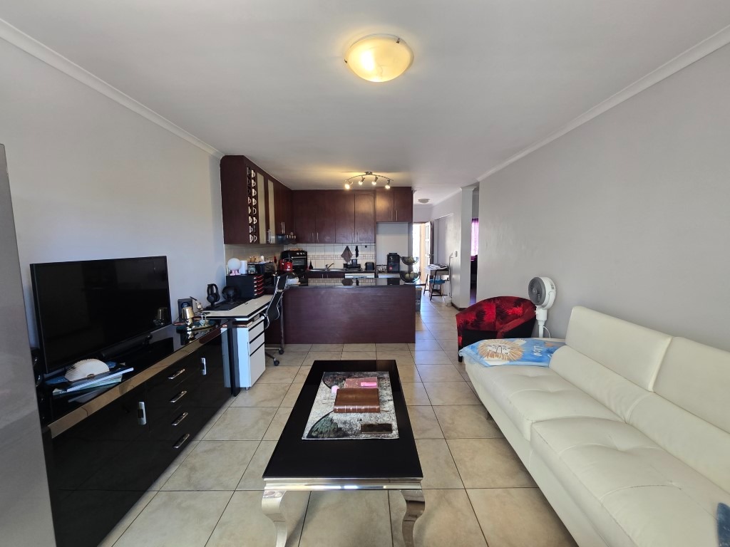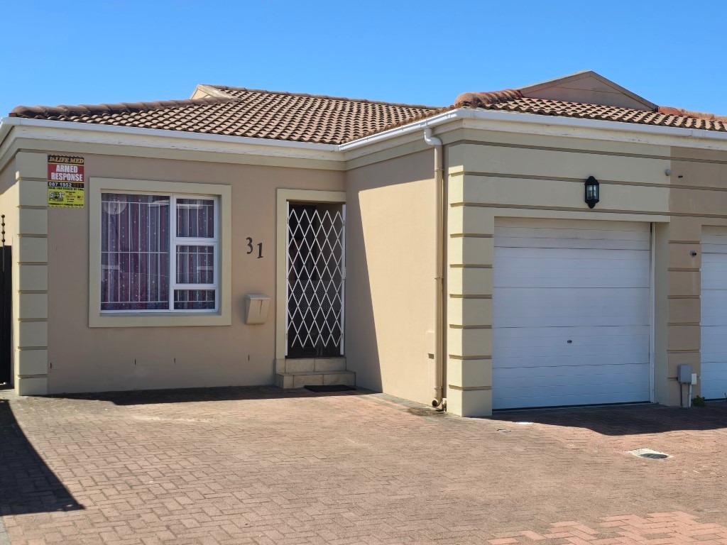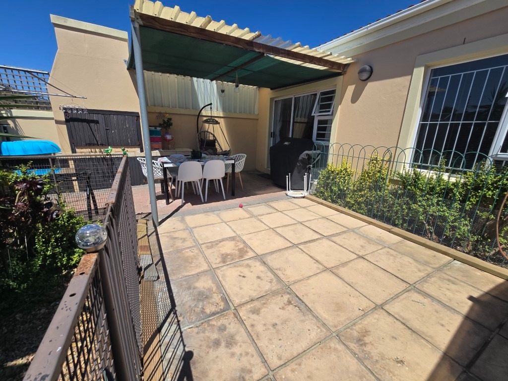 The living area opens onto an undercover patio with built in braai and low maintenance garden