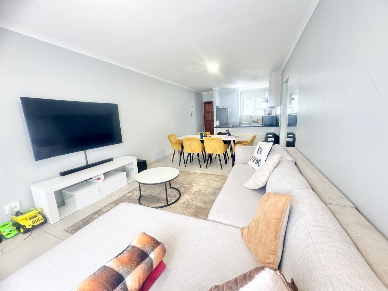 The unit features three well-sized bedrooms with built-in cupboards and one full bathroom. The open-plan living area flows easily into the kitchen, creating a practical and welcoming space for everyday living. Being on the top floor, the apartment enjoys added privacy, natural light, and reduced noise from neighbours.