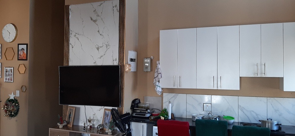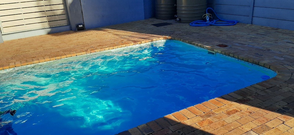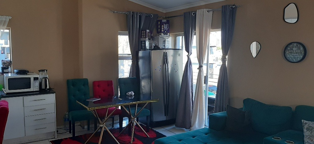 3 large bedrooms are serviced by 2 bathrooms, main-en-suite. The spacious kitchen, lounge and dining room has double volume ceilings. There are 2 balconies. The single garage gives direct access into the flat. On site well maintained communal pool. Secure complex. On MyCity Bus route and close to shopping centers.