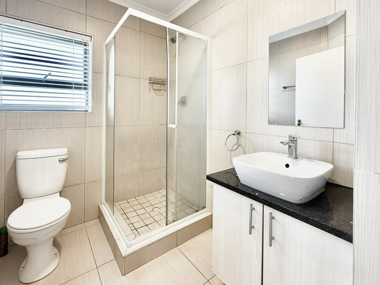 This three-bedroom apartment is set within a secure, access-controlled complex in Parklands. The main bedroom includes a full en-suite bathroom with both a bath and a shower, while the second bathroom has a shower.