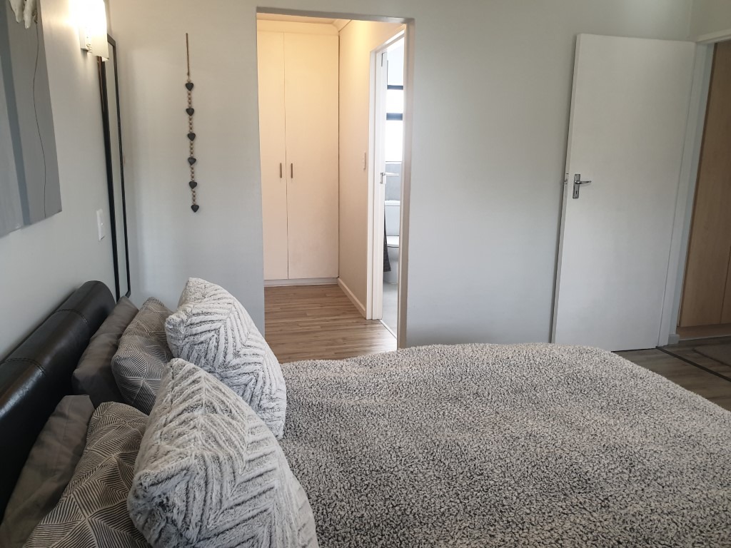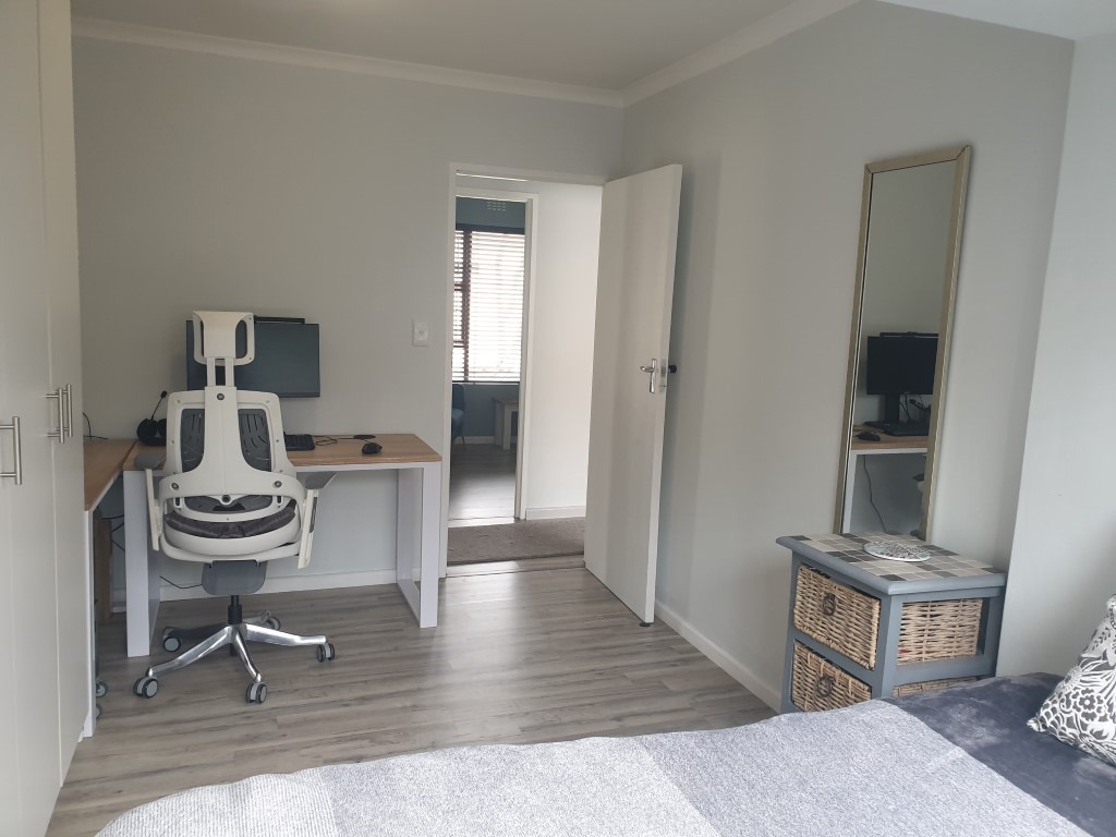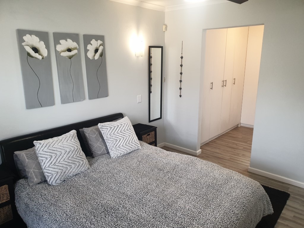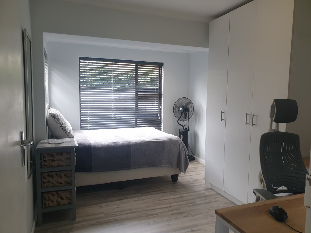 The inviting open-plan layout seamlessly integrates the Kitchen, Dining Room, Lounge and the Braai Room, with the latter flowing through fold-away glass stacking doors to the north-facing garden.