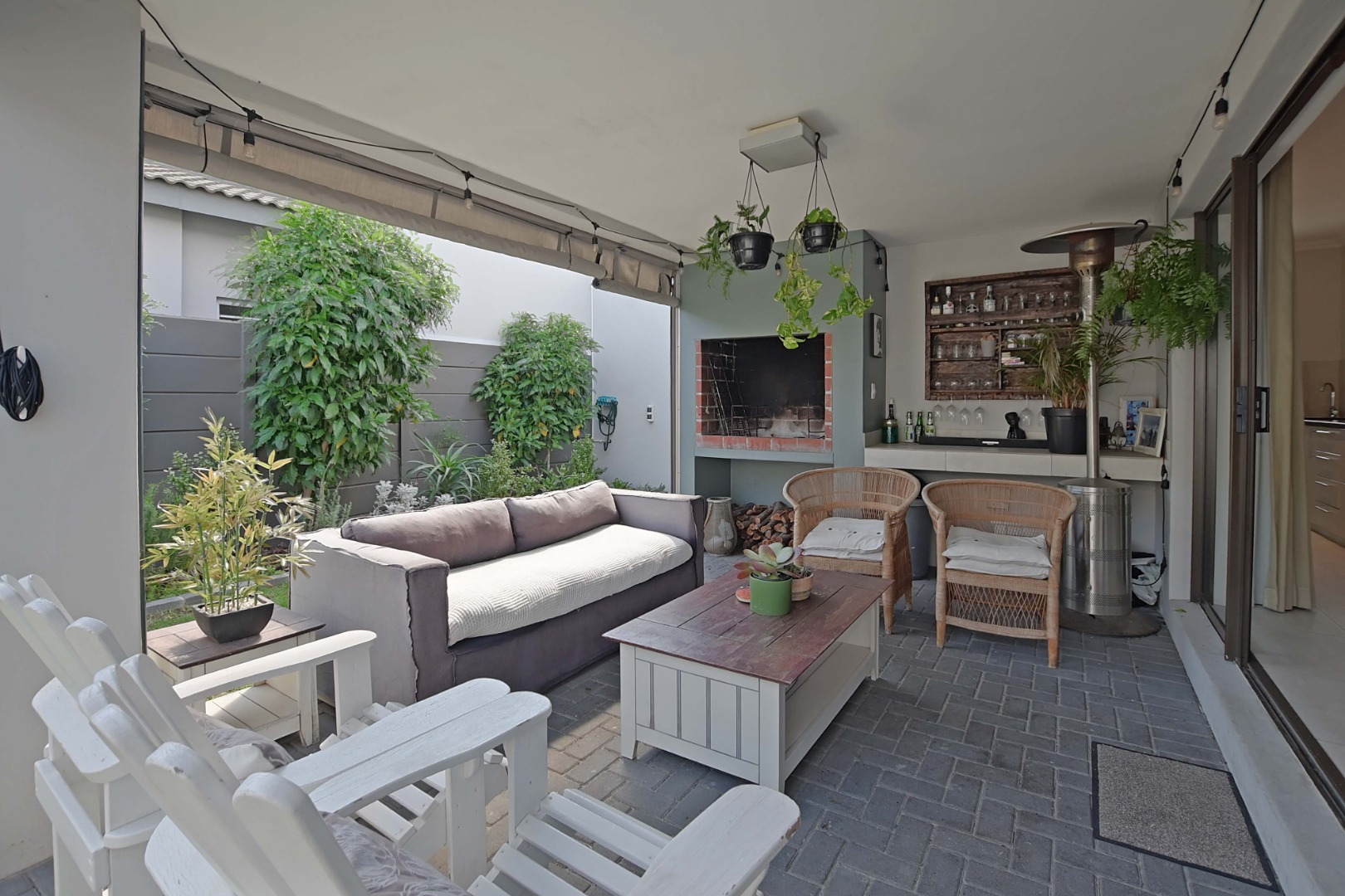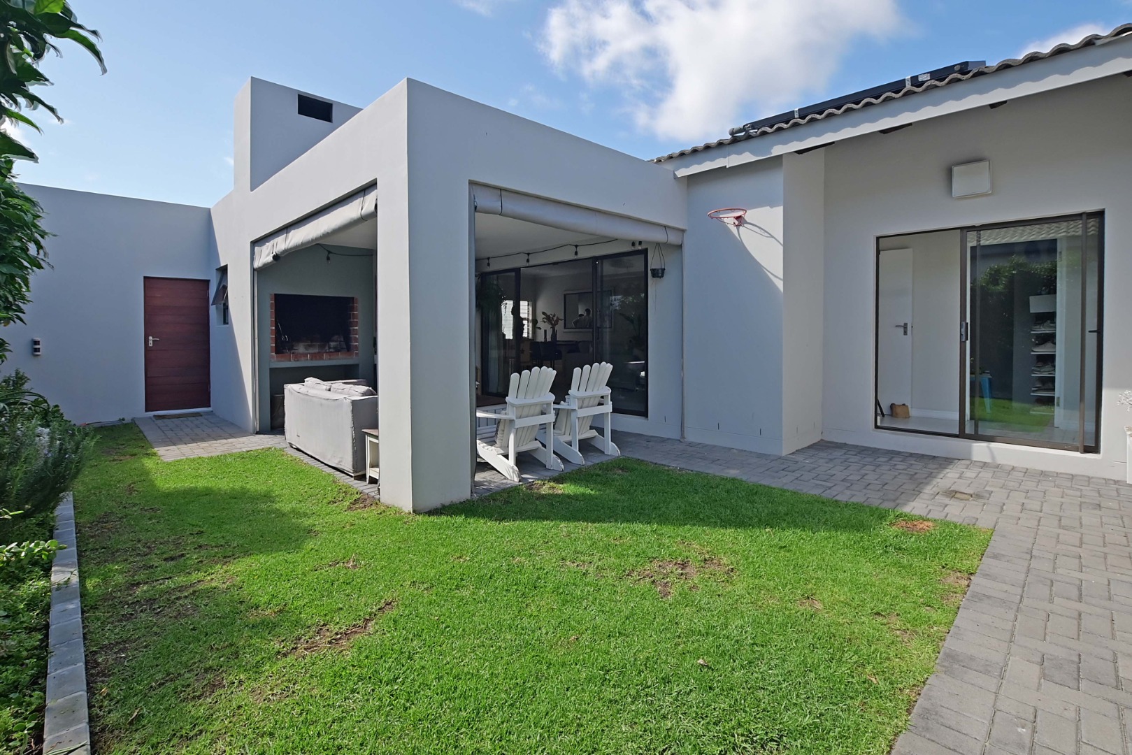 The main bedroom opens directly onto a lush, manicured garden and a covered entertainment area – ideal for relaxing or hosting guests.