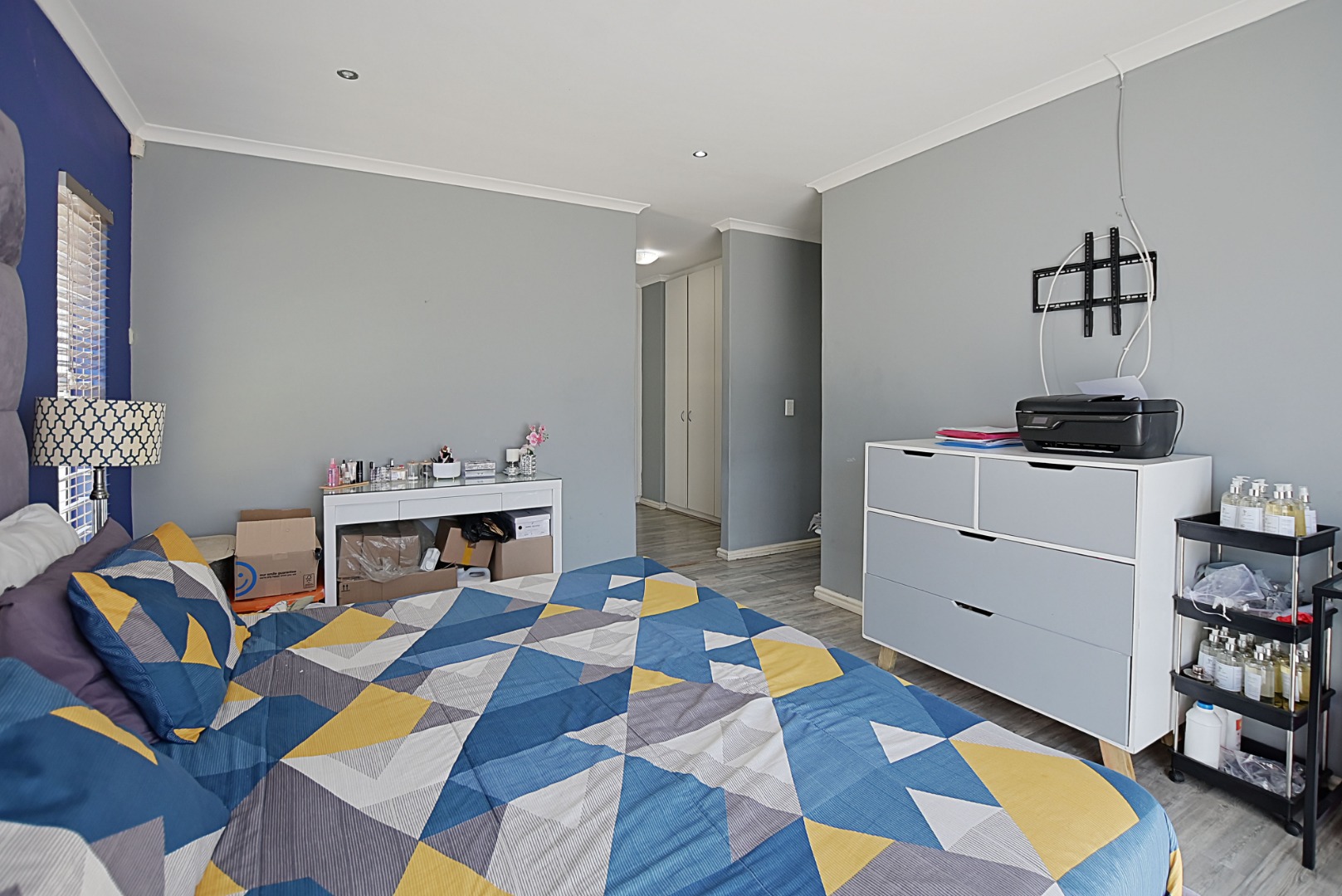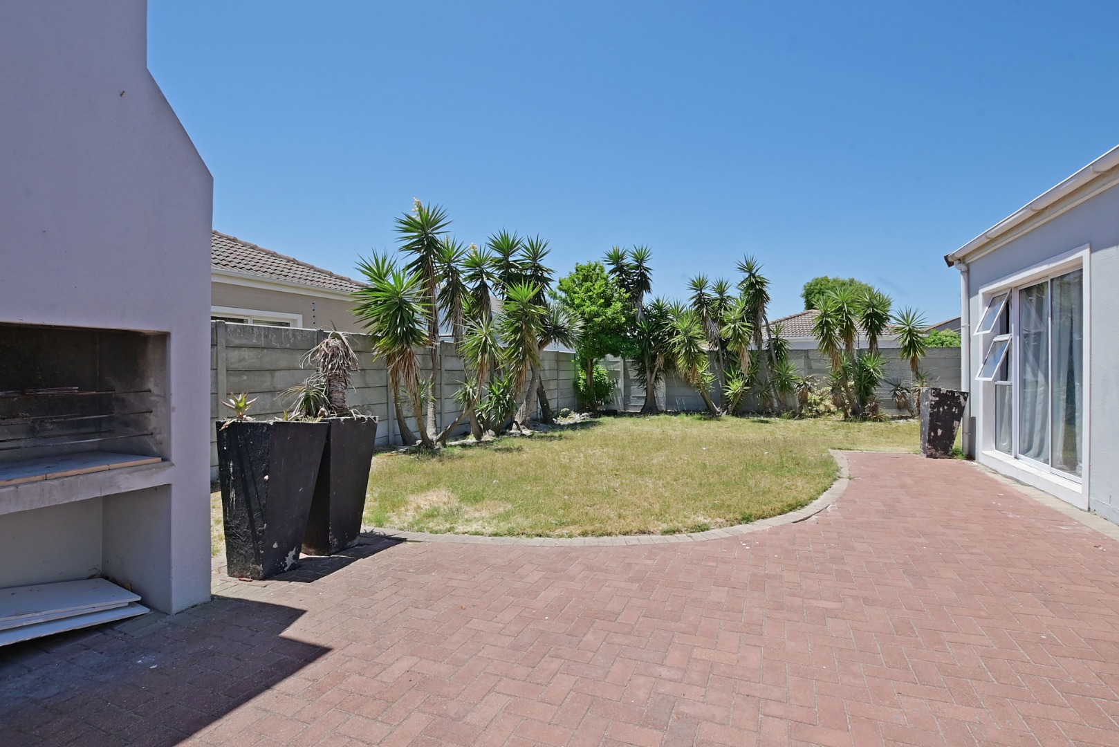 All three bedrooms have wood-effect laminate flooring and both the master bedroom and bedroom no. 2 have sliding doors leading out on the extensive back garden. The lounge dining/area also has sliding doors leading out onto a big, paved patio (that includes a built-in braai) and beyond that, to the garden itself.