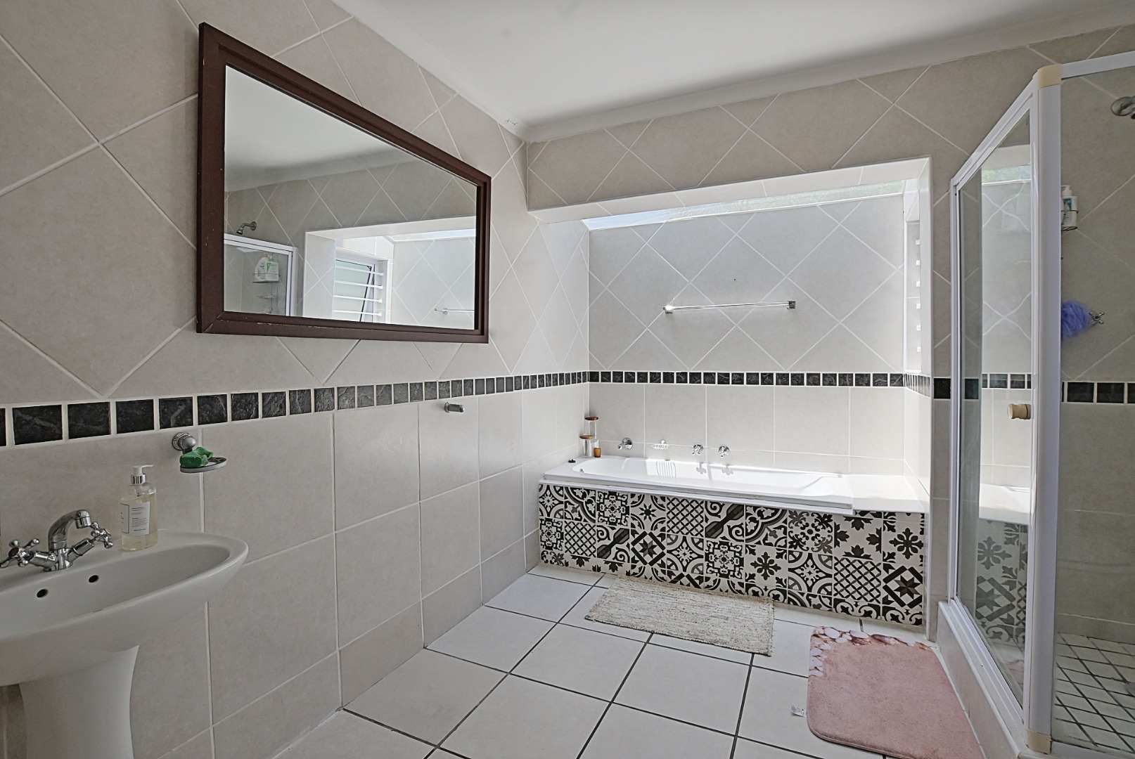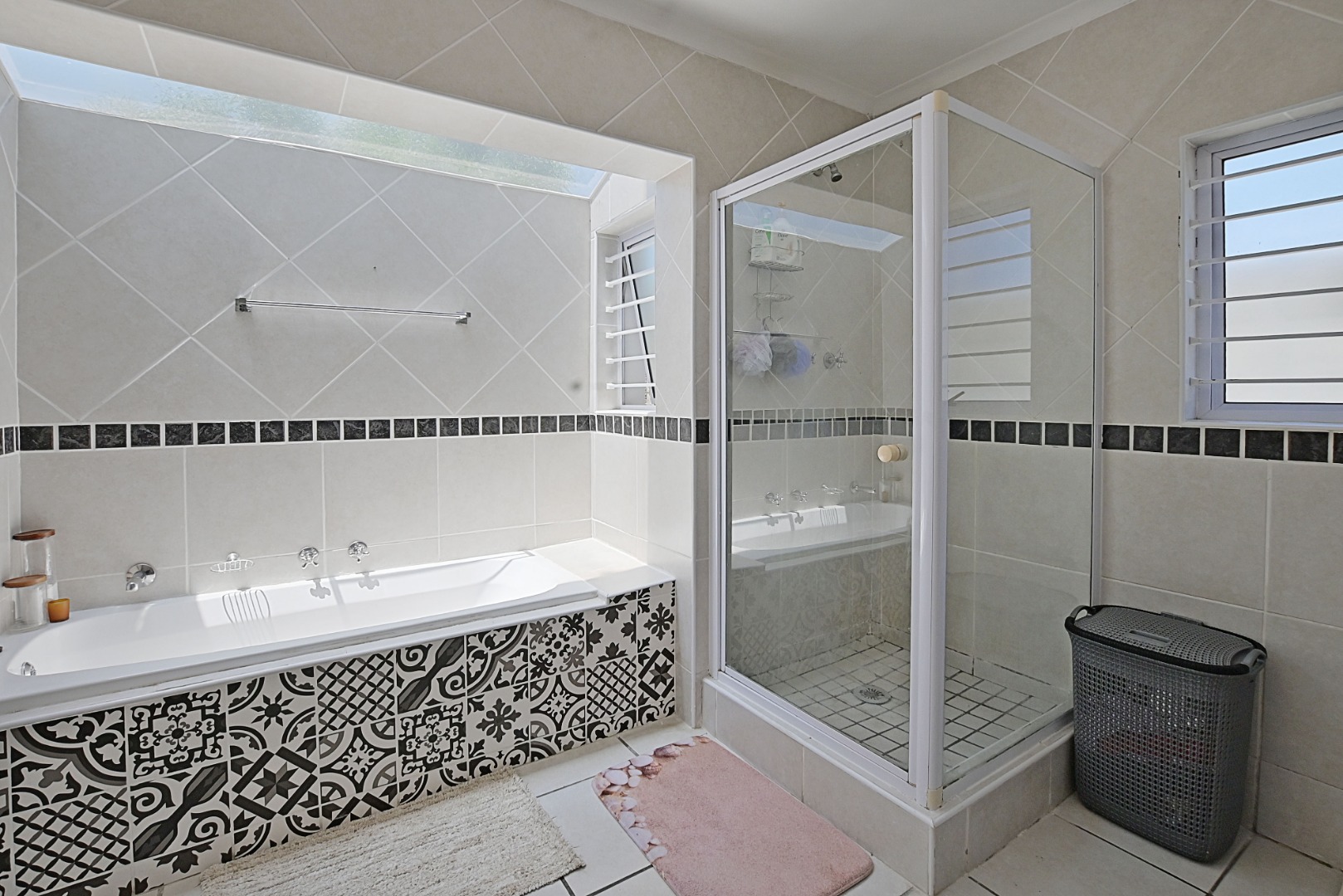 But if you thought the bedrooms were big – wait ‘til you see the bathrooms! Both are full bathrooms with bath, shower, loo and basin and they’re vast! No chance of ever feeling cramped in either of these! There’s the one family bathroom servicing bedrooms 2 and 3 and then the master bedroom has a walk-in closet with tons of cupboards, drawers and hanging space; which in turn leads to the main en-suite, which I have to say, is probably the biggest en-suite bathroom I have ever come across in any Parklands home! And there’s a lovely touch in that the bath has a wonderful sky-light type window above it, making one feel very special as you enjoy that luxuriating soak!