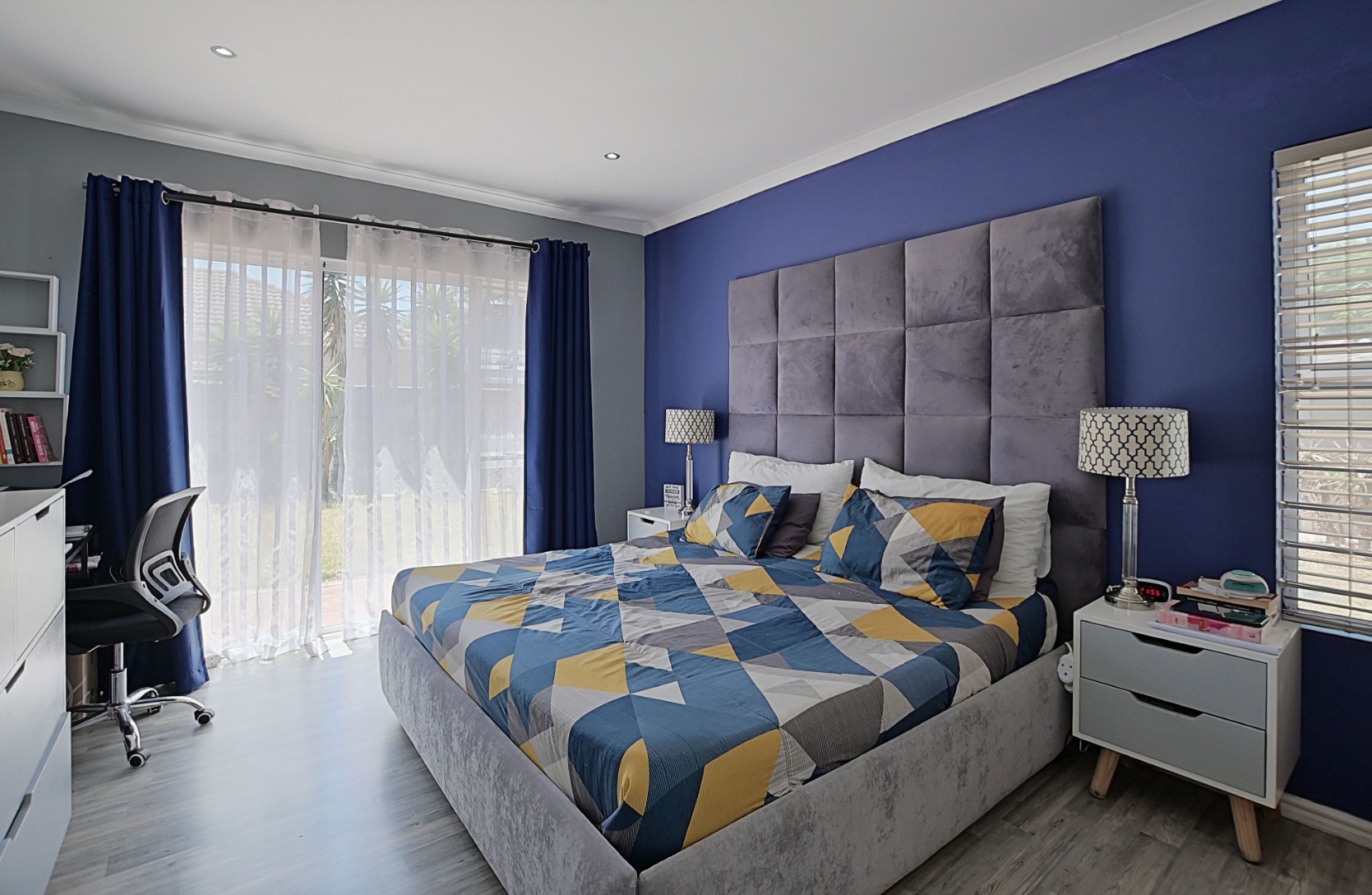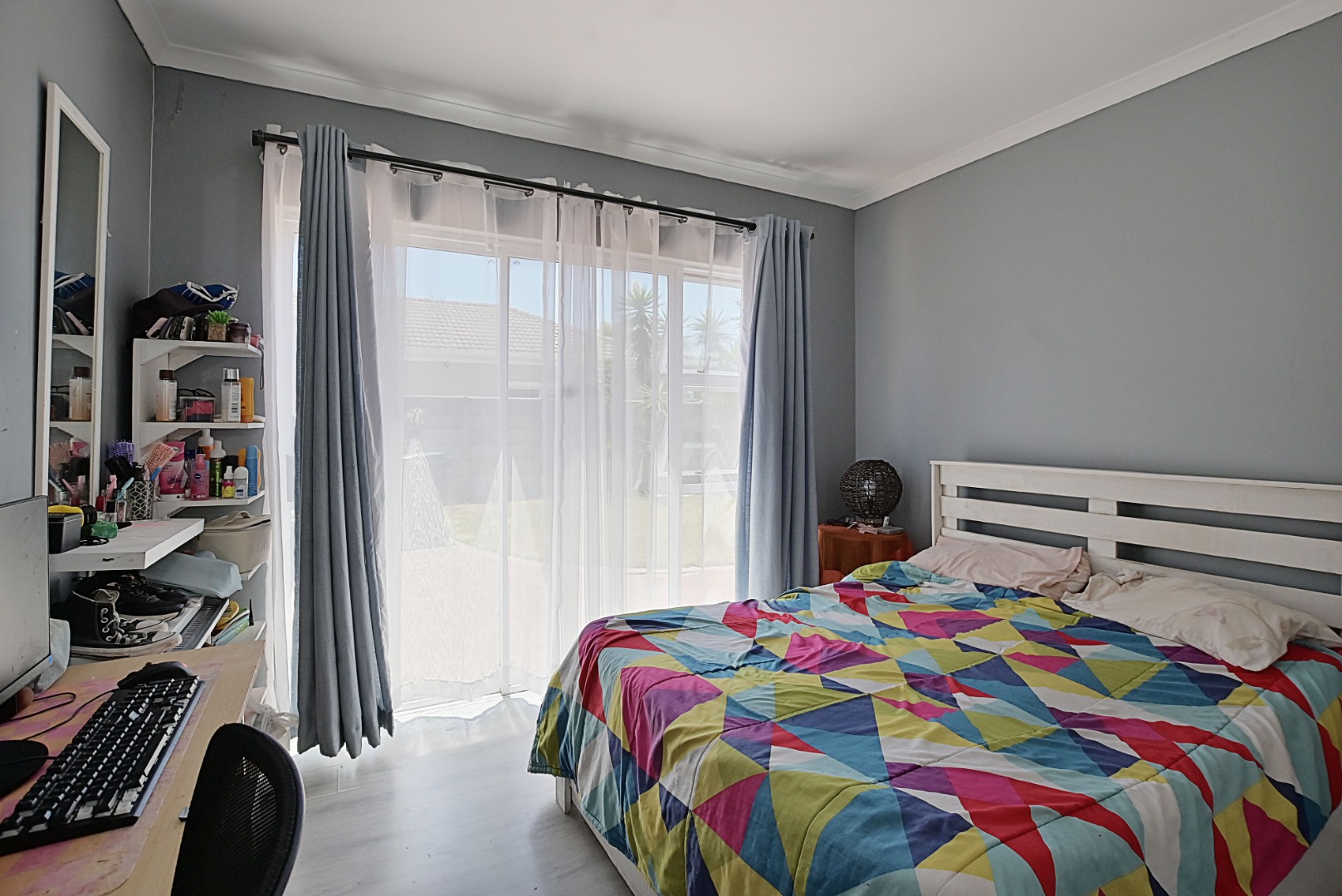 All three bedrooms have wood-effect laminate flooring and both the master bedroom and bedroom no. 2 have sliding doors leading out on the extensive back garden. The lounge dining/area also has sliding doors leading out onto a big, paved patio (that includes a built-in braai) and beyond that, to the garden itself.