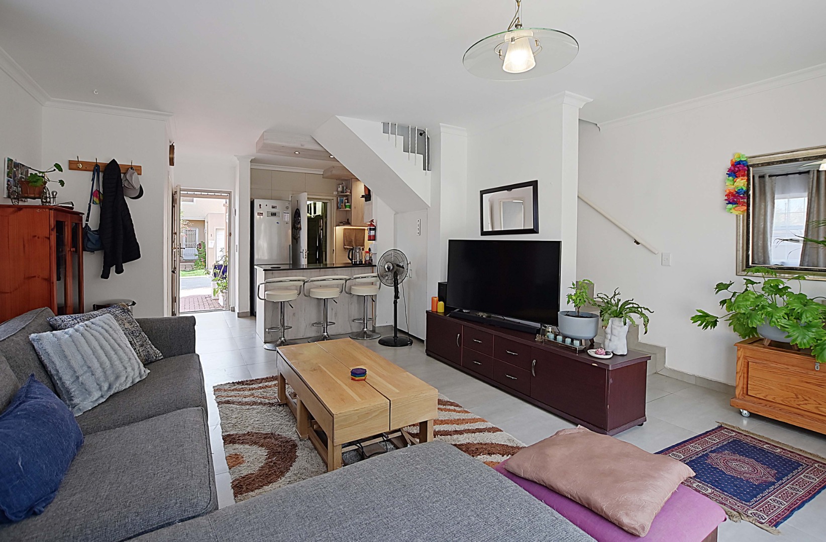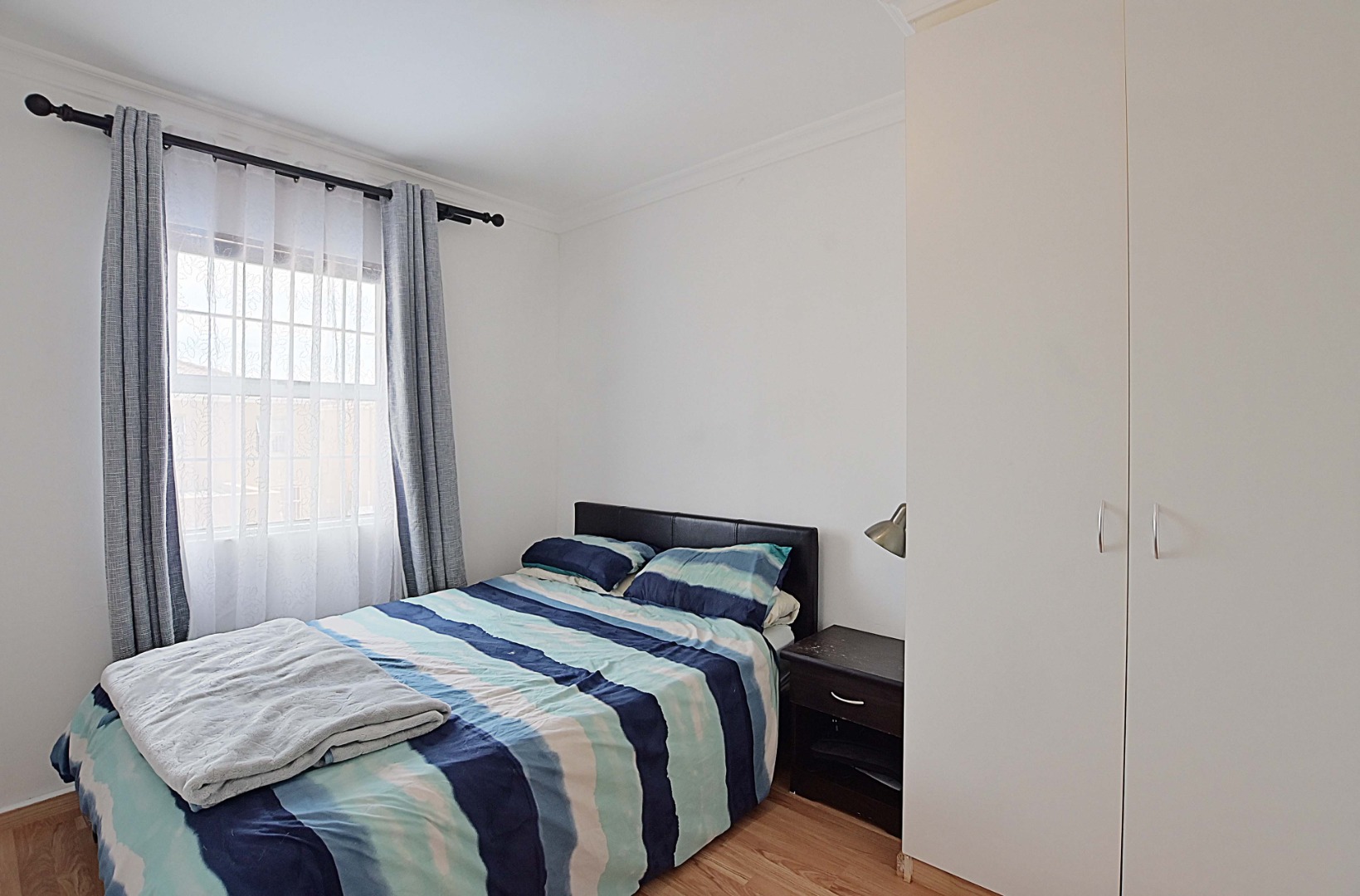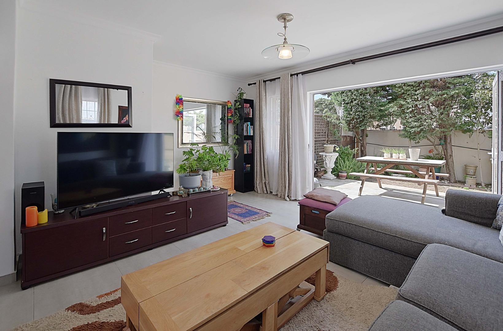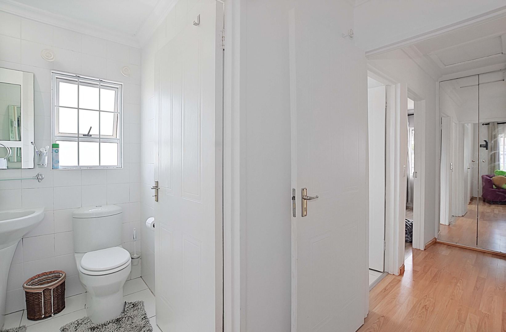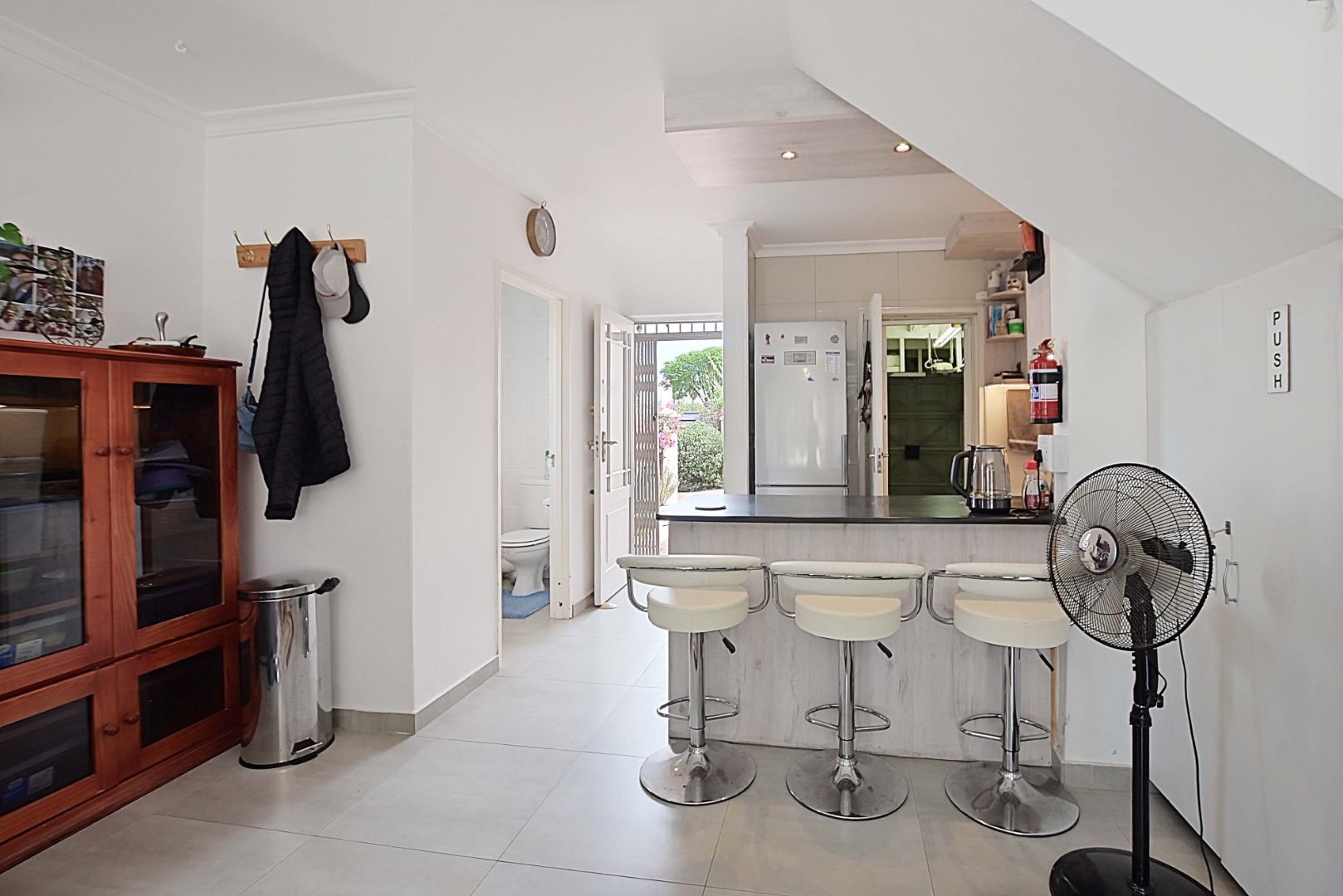 The 3 bedrooms with 2 bathrooms are upstairs, and the 3rd bedroom is already converted into an office, but office cupboards can be easily removed if this is not what you need presently.