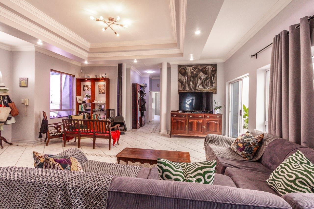 Located in one of the most affluent Closes, this large, newly painted, ultra- luxury Home is wrapped in a large manicured Garden and flaunts with Ambassadorial street appeal. It flaunts with huge, pulse-racing Reception areas with dramatic Sculptured ceilings and Recessed lighting, flowing to a covered wind-free Entertainment and Braai Patio.