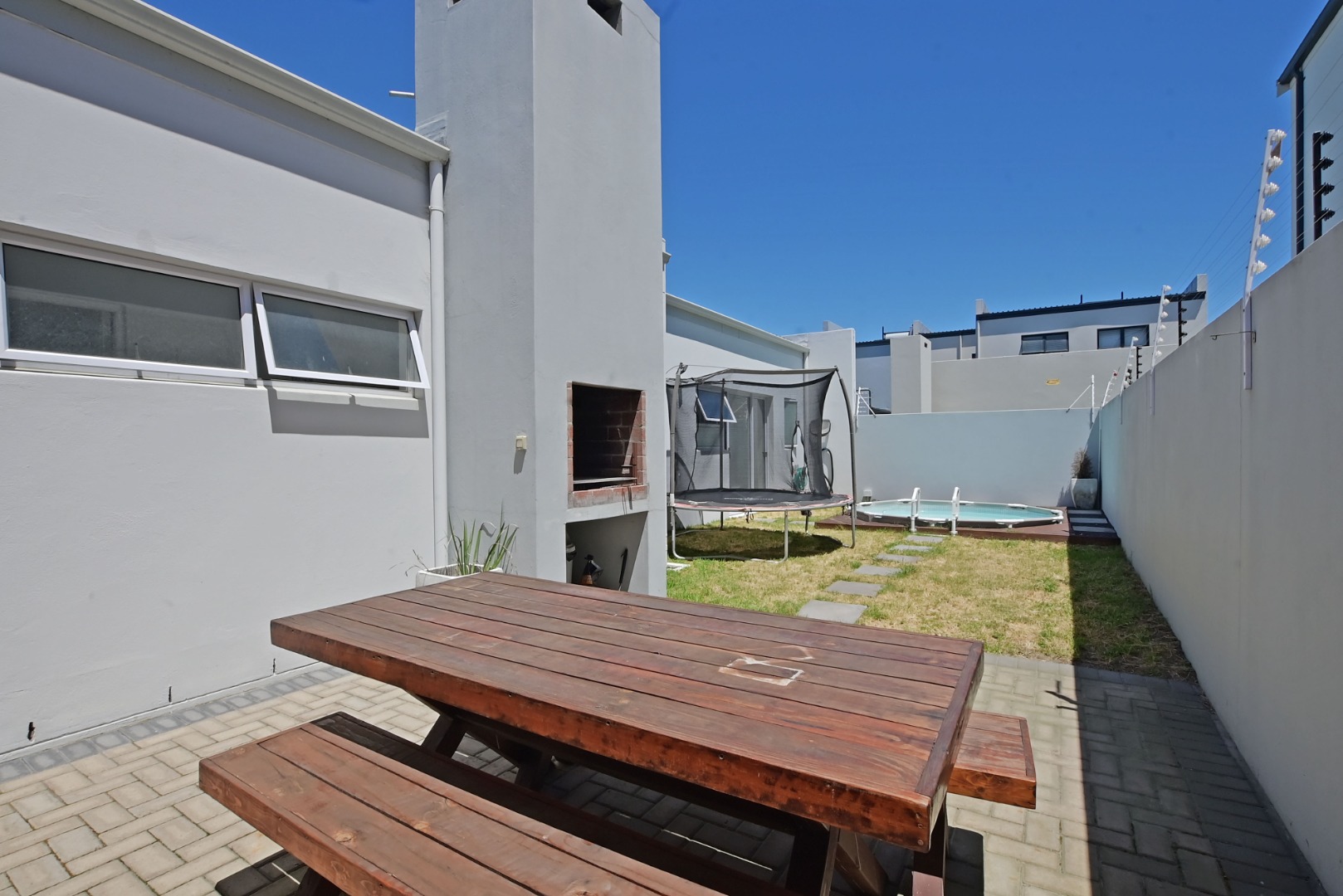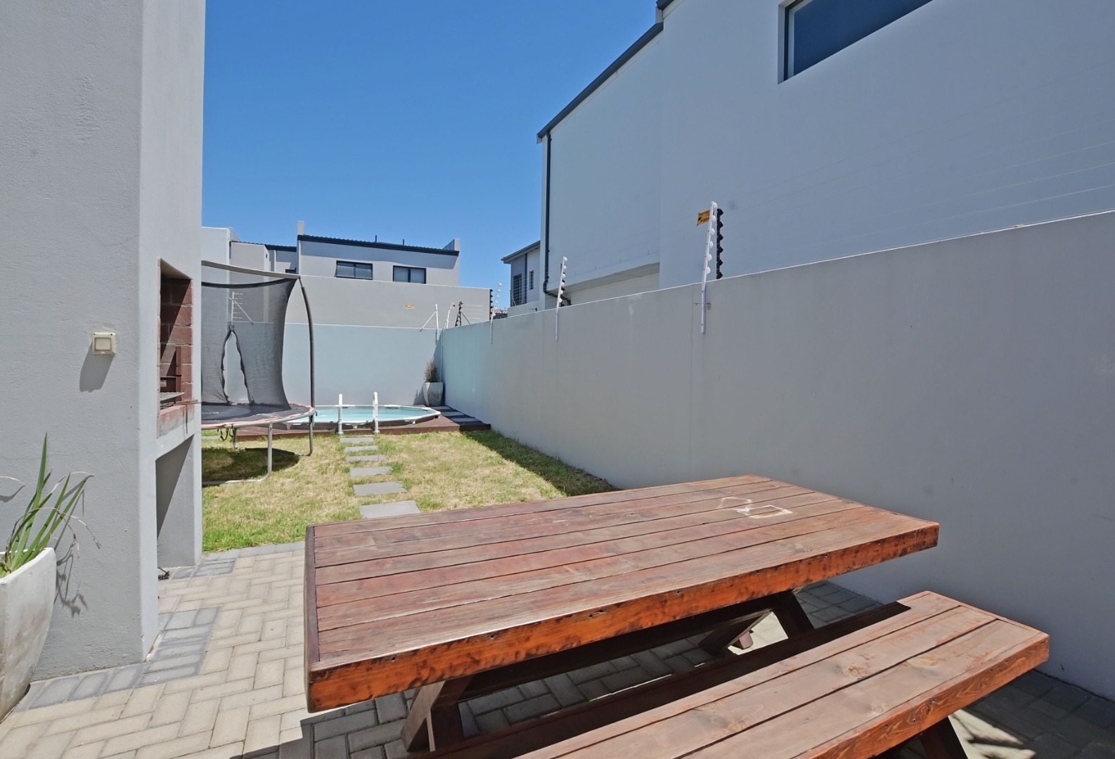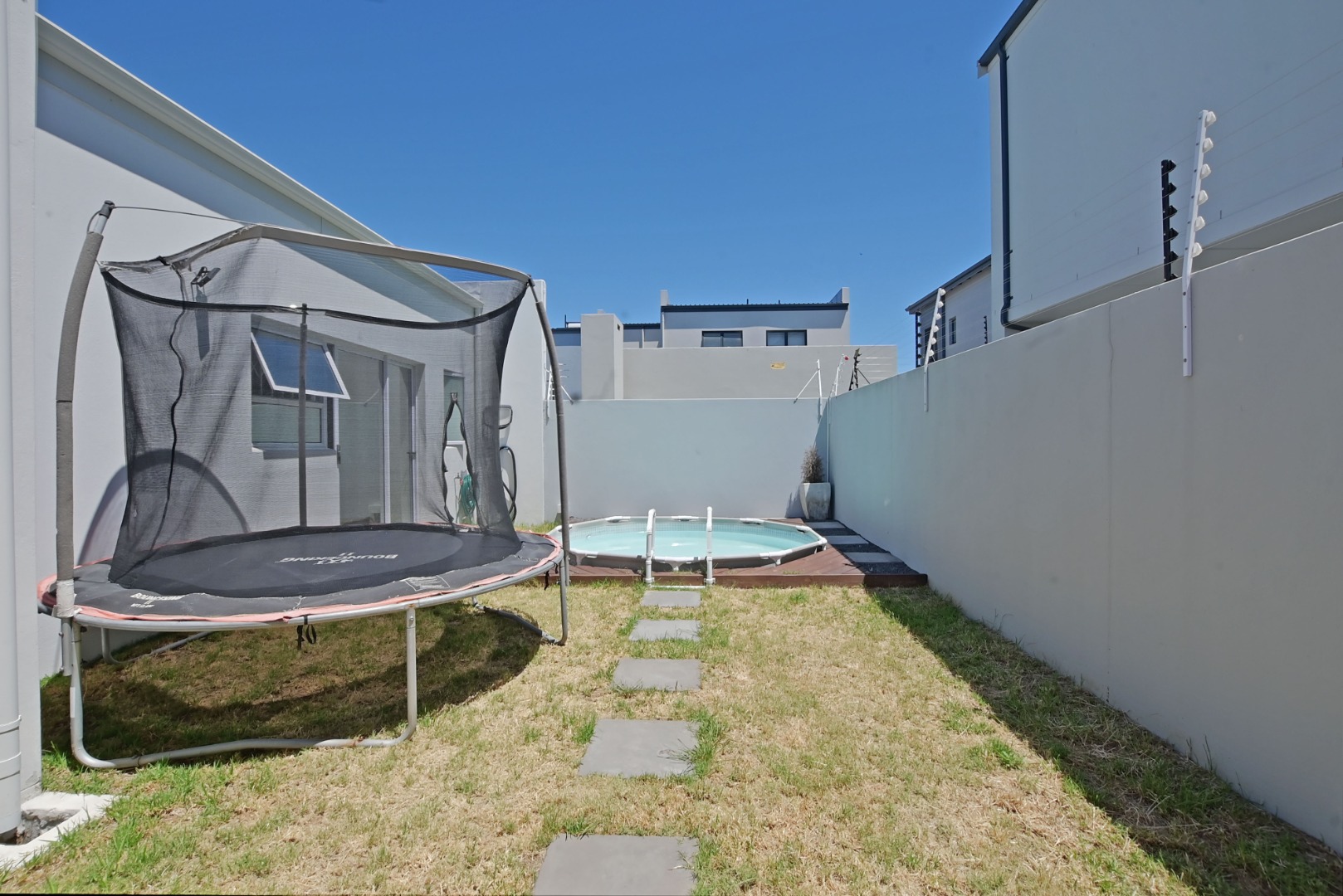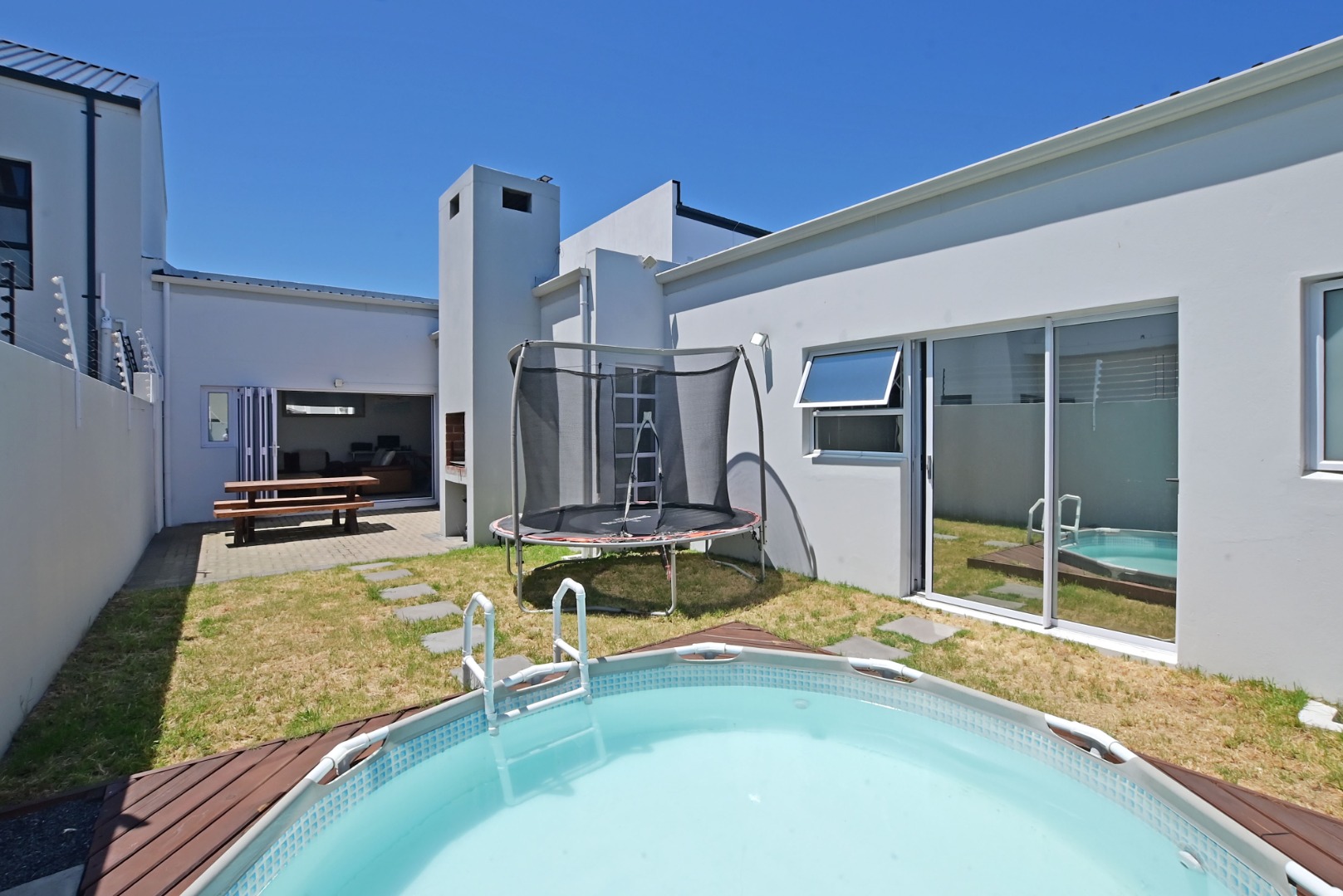 - Portable pool with deck on a decent size yard, ideal for relaxation and recreation