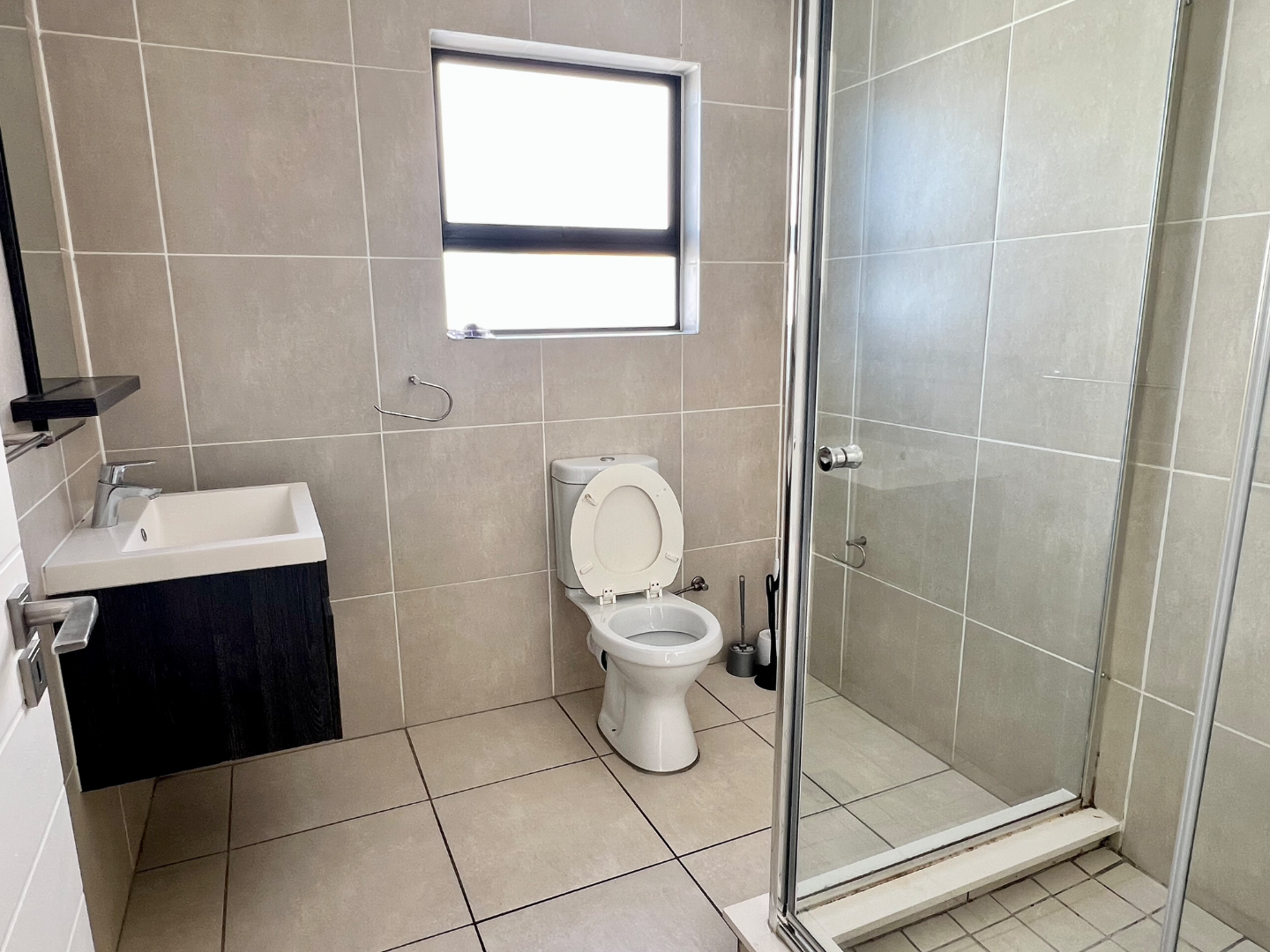 The bedroom has large north facing windows which allows plenty of natural sunlight, is tiled and fits a king sized bed with the greatest of ease. The bedroom is also fitted with plenty of built in cupboards and leads into a ensuite type bathroom.