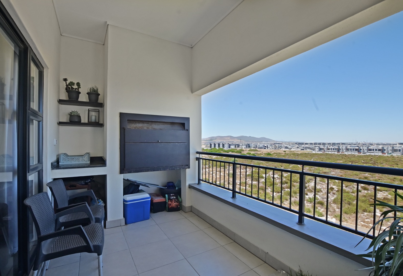Large balcony with built-in braai and views across the Fynbos Corridor towards Table Mountain.