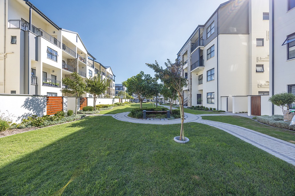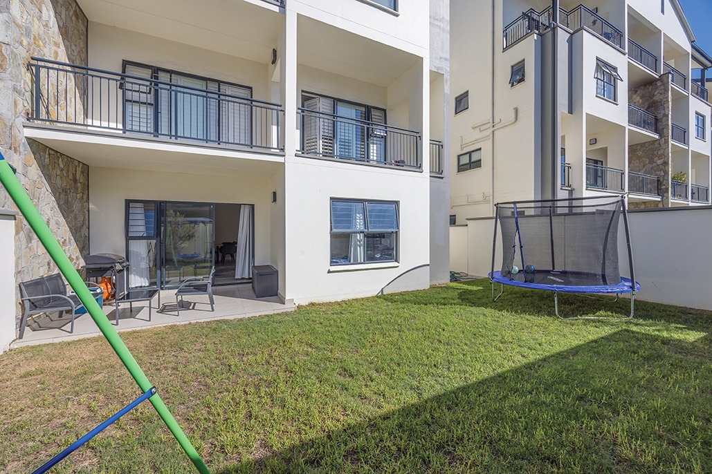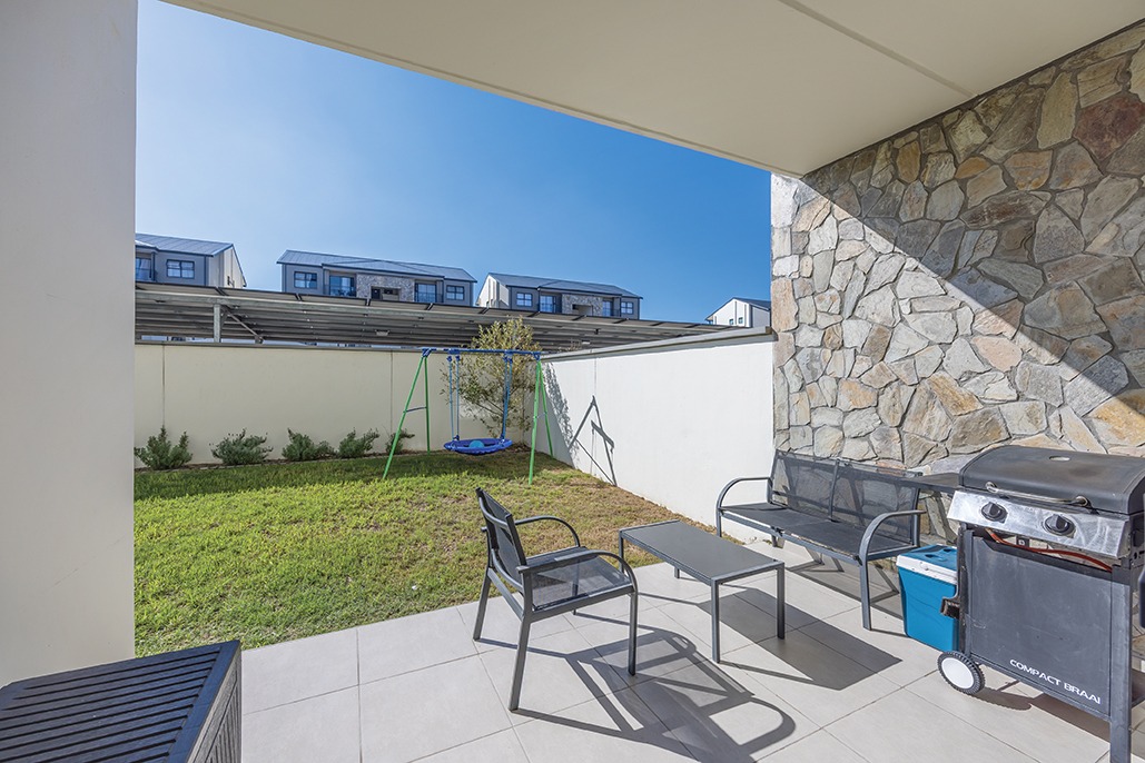 * Located in this sought after Balwin development complex of Fynbos is this superb ground floor north facing apartment * Spacious open plan living with modern kitchen offers high end finishes including glass topped hob and tiled splash backs with blend of all white and wood finishes * The living area leads out to a covered tiled patio and into the private garden * Master bedroom offers a spacious layout with walk in en-suite bathroom (shower) and is fitted with cupboards * A further two bedrooms also complete with cupboards partners up with a family bathroom with both a shower and bath * Double shaded parking bays right near the unit is provided * Fynbos is well known for its excellent security and lifestyle facilities which include a Montessori toddlers school, full training length swimming pool, Padel & soccer courts, squash court, gym, salon & spa, café & restaurant and kids outdoor play areas