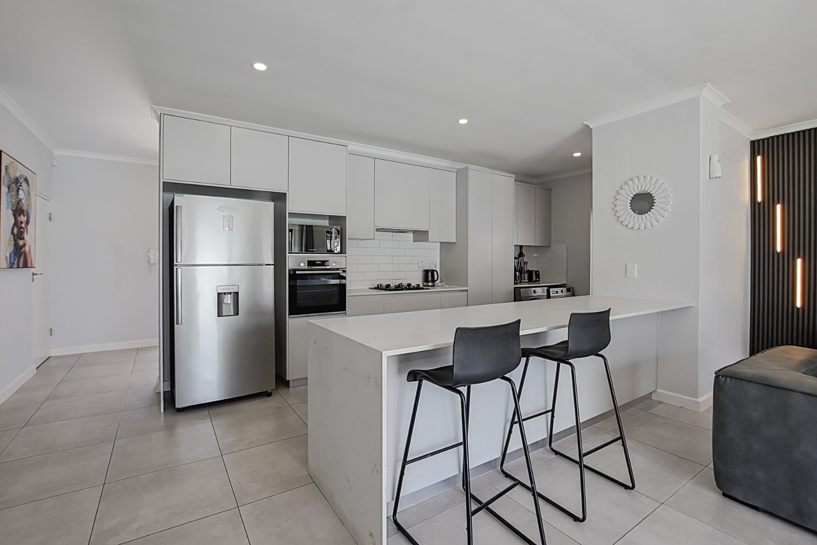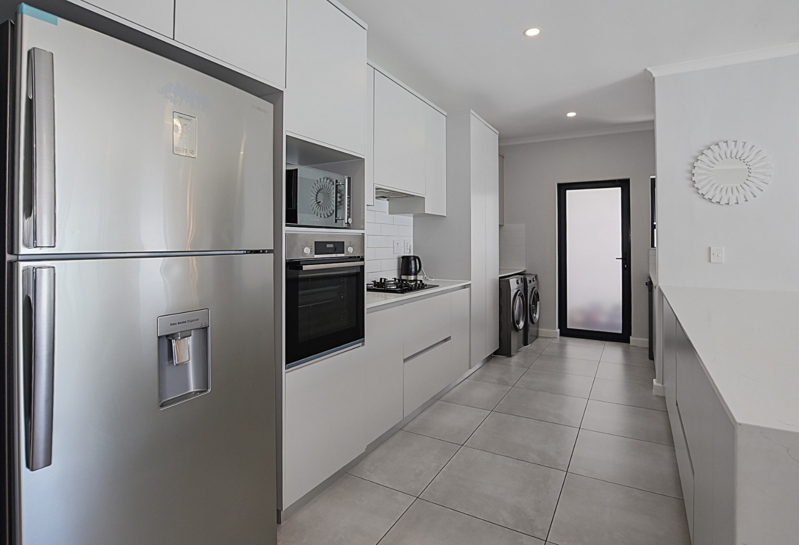 - Kitchen 1 Breakfast Nook, Scullery, Eye Level Oven, Dishwasher Connection, Washing Machine Connection, Tiled Floors, Gas Hob,